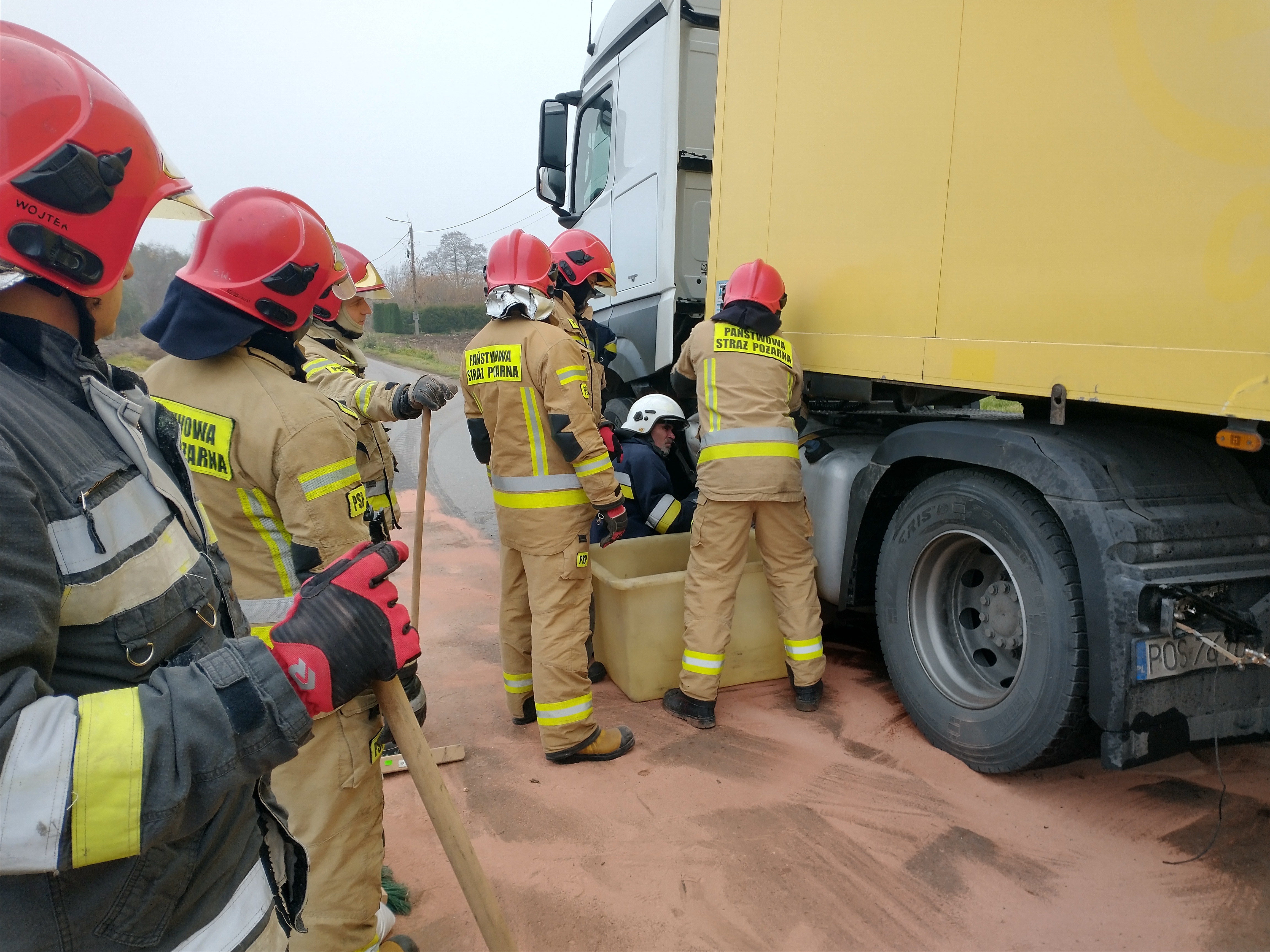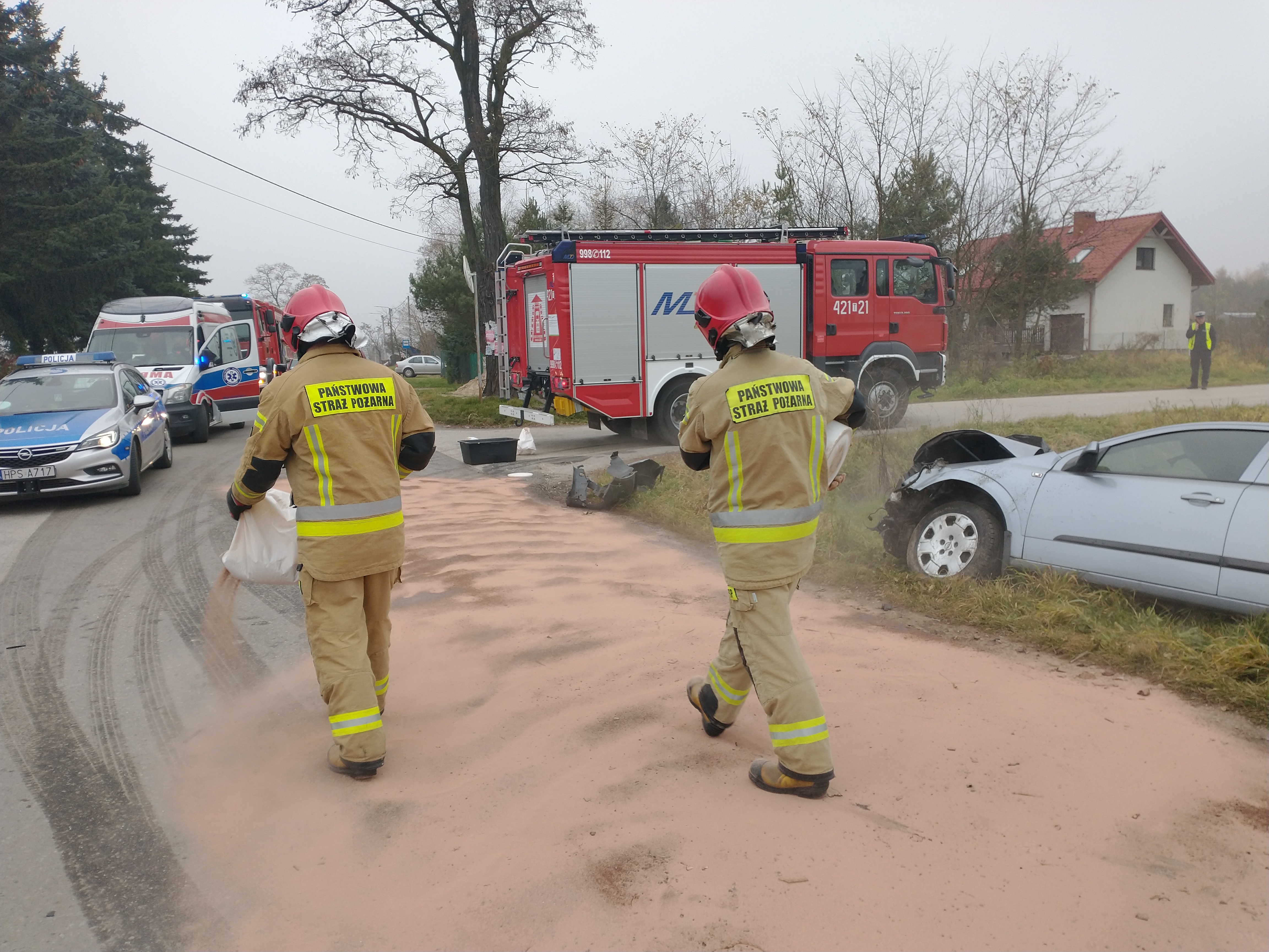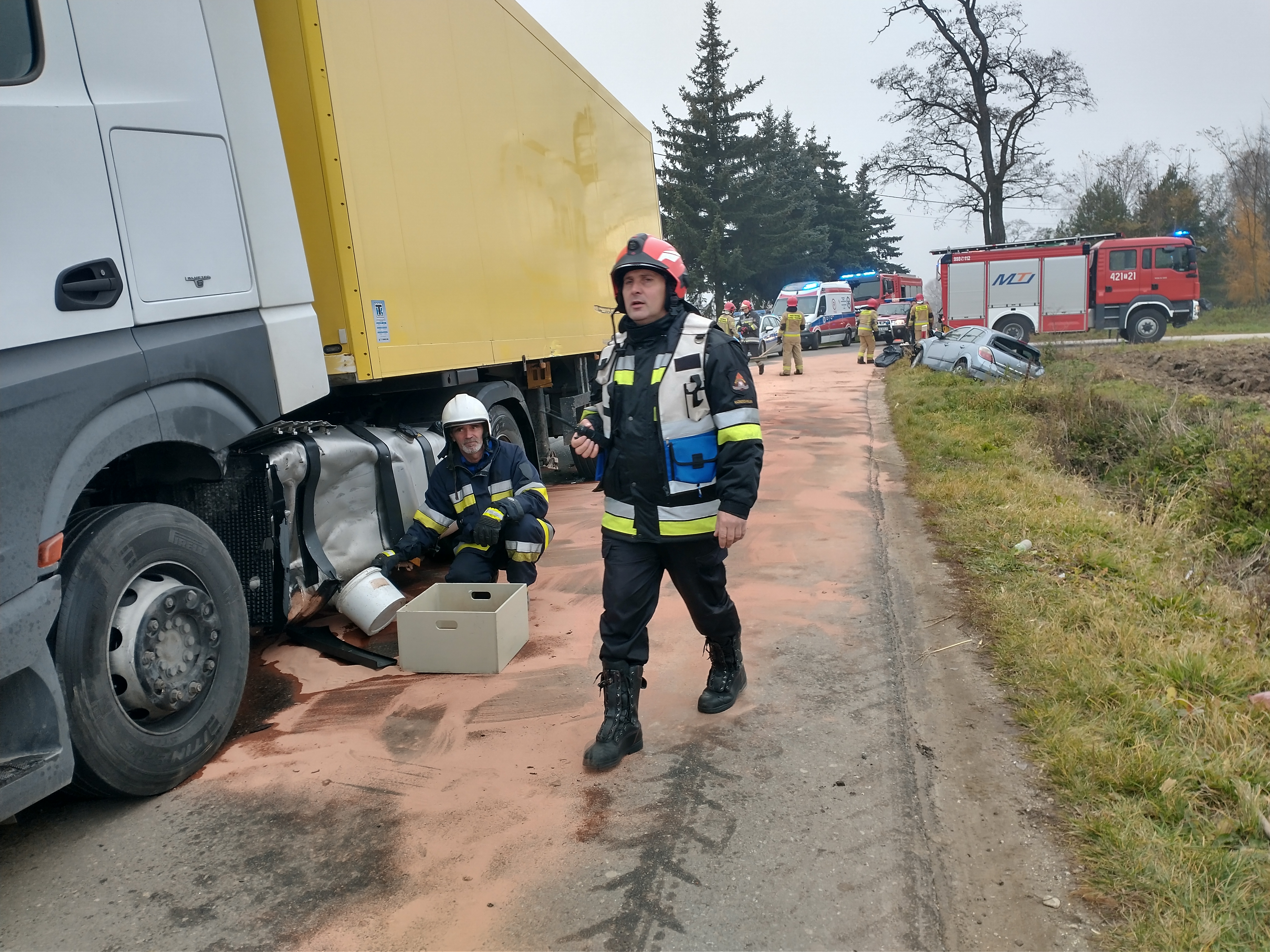W działaniach trwających ponad 3 godziny wzięło udział 5 zastępów straży pożarnej, w tym 13 strażaków oraz 1 radiowóz Policji i 1 karetka ZRM oraz przedstawiciel Powiatowego Zarządu Dróg.