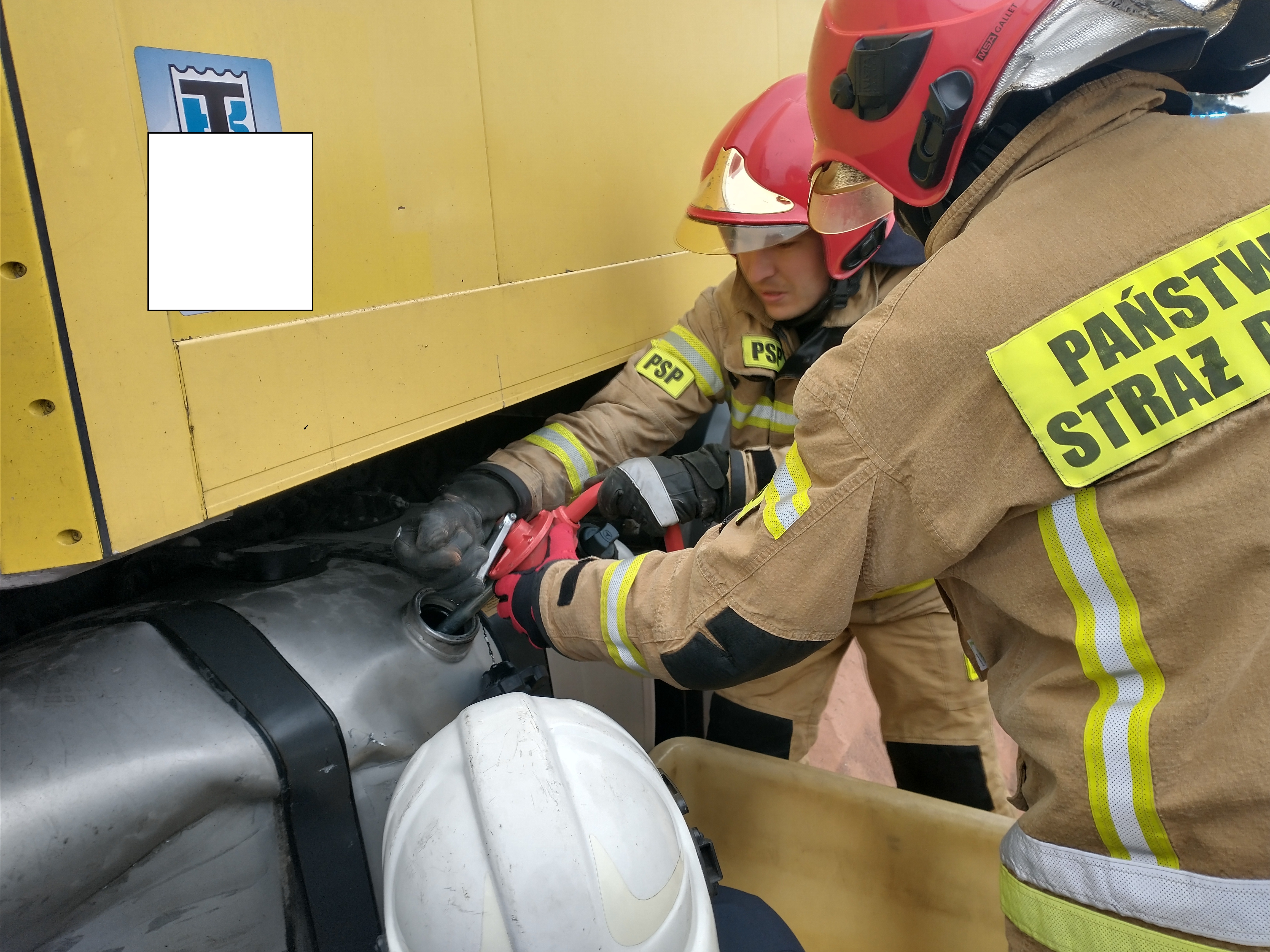 Działania Jednostki Ochrony Przeciwpożarowej polegały na zabezpieczeniu miejsca zdarzenia, odłączeniu źródeł zasilania w energię elektryczną w obu pojazdach, zebraniu przy użyciu sorbentu rozlanego oleju napędowego z uszkodzonego zbiornika paliwa samochodu ciężarowego. Pozostałą część paliwa w ilości ok. 120 litrów wypompowano ze zbiornika paliwa i przekazano kierowcy. Po wykonanych czynnościach dochodzeniowych przeprowadzonych przez funkcjonariuszy Policji, pojazdy zostały usunięte w bezpieczne miejsce i przekazane właścicielom. Pozostałości powypadkowe zostały uprzątnięte i zebrane z drogi.