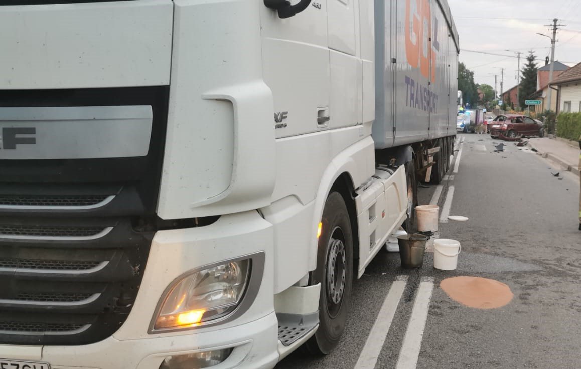 Zderzenie samochodu osobowego z tirem w miejscowości Topola - powiat kazimierski