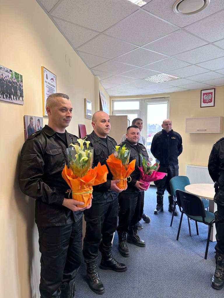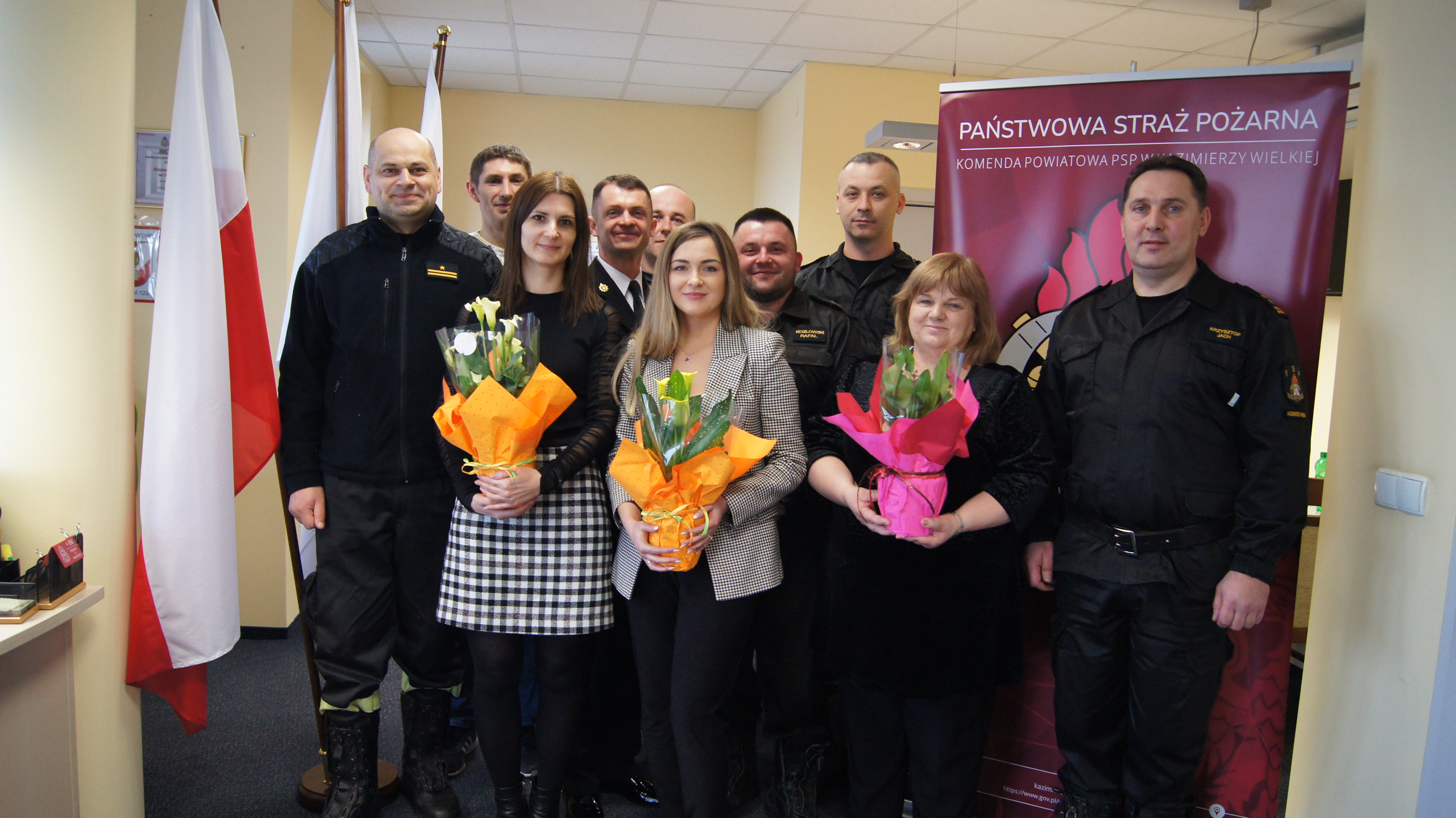 8 marca 2023 r. o godz. 10:30 z okazji Międzynarodowego Dnia Kobiet Komendant Powiatowy PSP st. kpt. Marcin Oziębło wraz ze swoim zastępcą bryg. Krzysztofem Jachem, Przewodniczącymi Związków Zawodowych działających w naszej komendzie: mł. bryg. Piotrem Szotem, mł. kpt. Rafałem Kozłowskim, oraz ze strażakami złożyli najserdeczniejsze życzenia Paniom pracującym w naszej komendzie: wszelkiej pomyślności, dużo zdrowia, spełnienia najskrytszych marzeń, aby każdy kolejny dzień wypełniony był radością, szczęściem zarówno w życiu prywatnym jak i zawodowym.