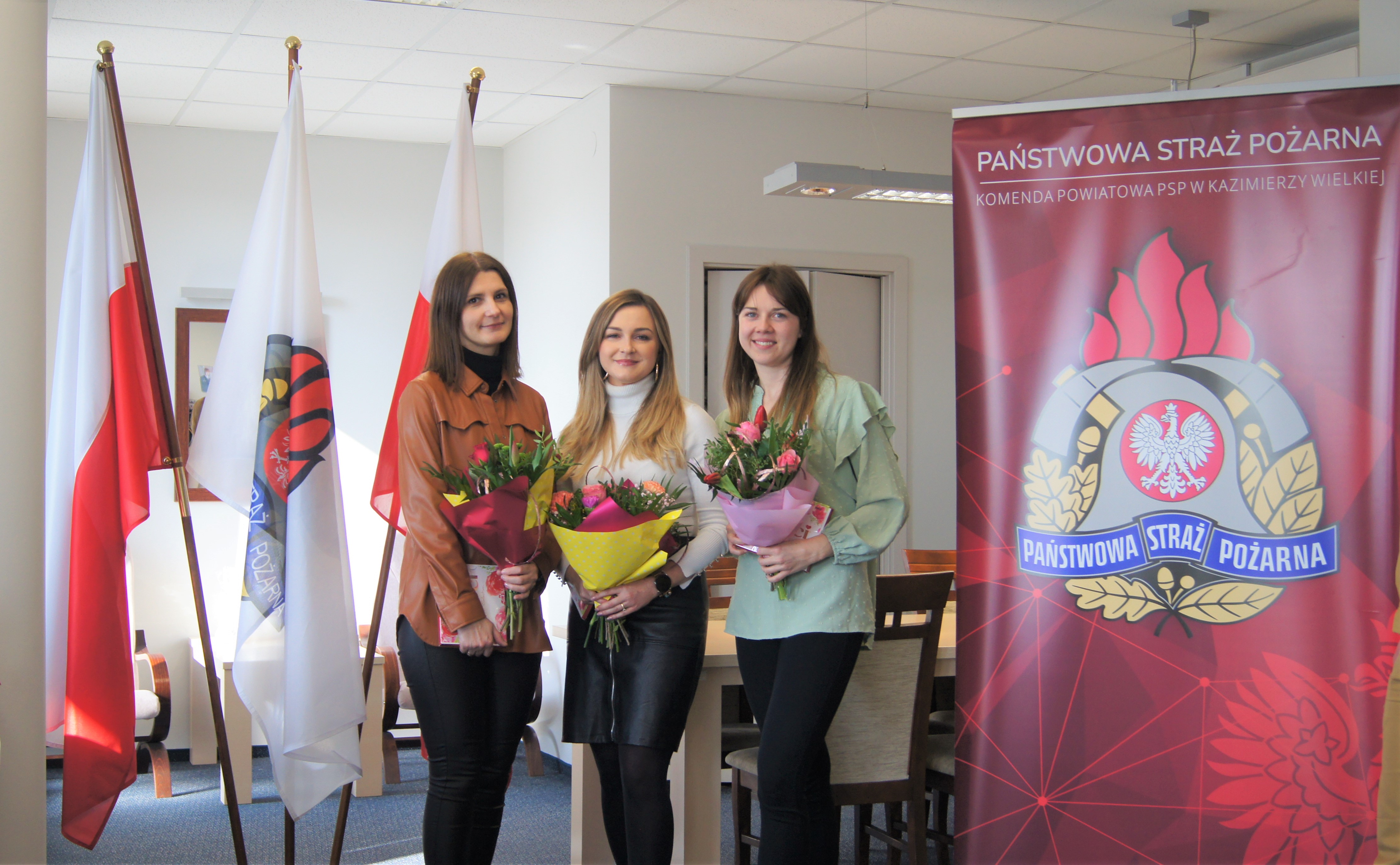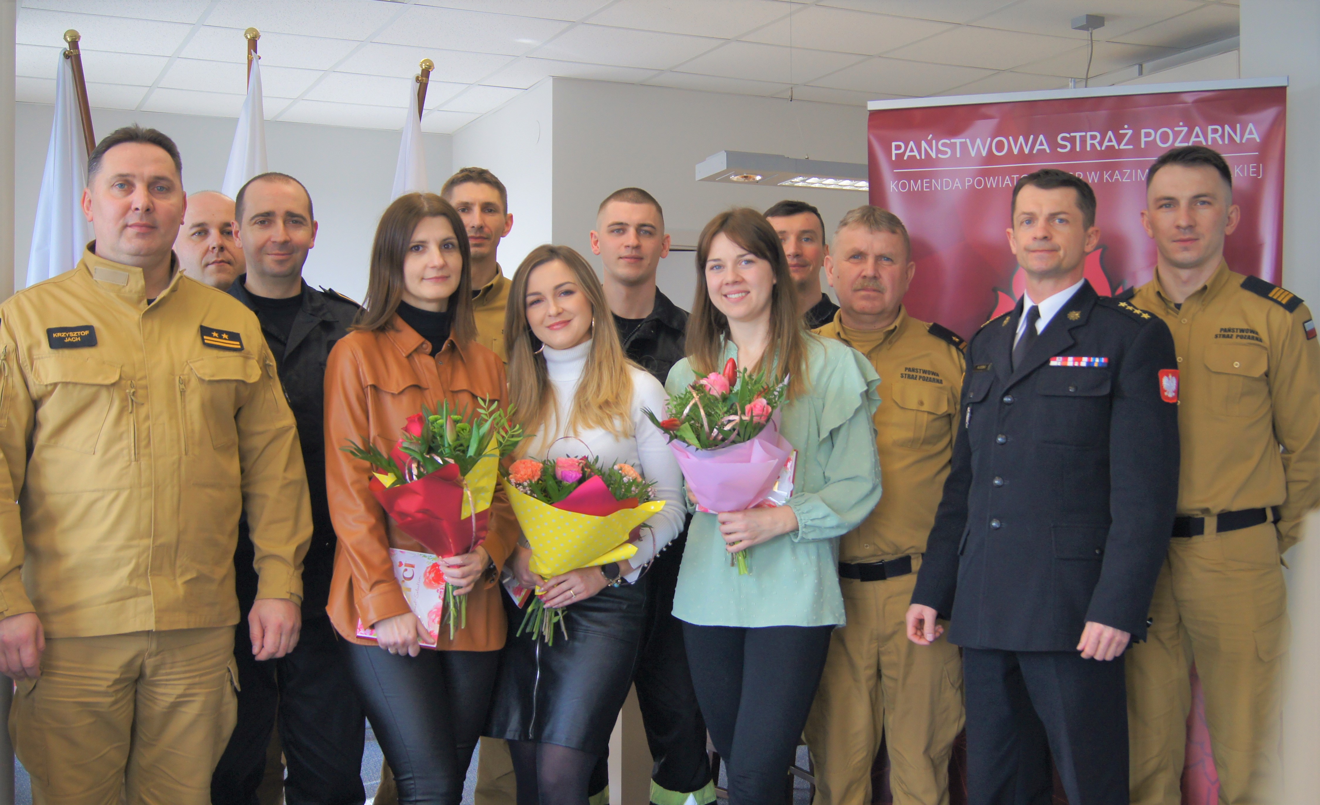 8 marca 2024 r. o godz. 13:45 z okazji Międzynarodowego Dnia Kobiet Komendant Powiatowy PSP st. kpt. Marcin Oziębło wraz ze swoim zastępcą bryg. Krzysztofem Jachem oraz ze strażakami złożyli najserdeczniejsze życzenia Paniom pracującym w naszej komendzie: wszelkiej pomyślności, dużo zdrowia, spełnienia najskrytszych marzeń, aby każdy kolejny dzień wypełniony był radością, szczęściem zarówno w życiu prywatnym jak i zawodowym.