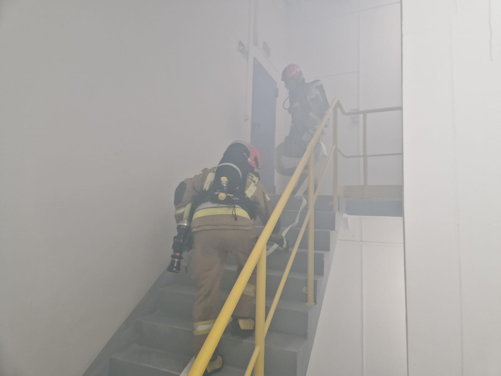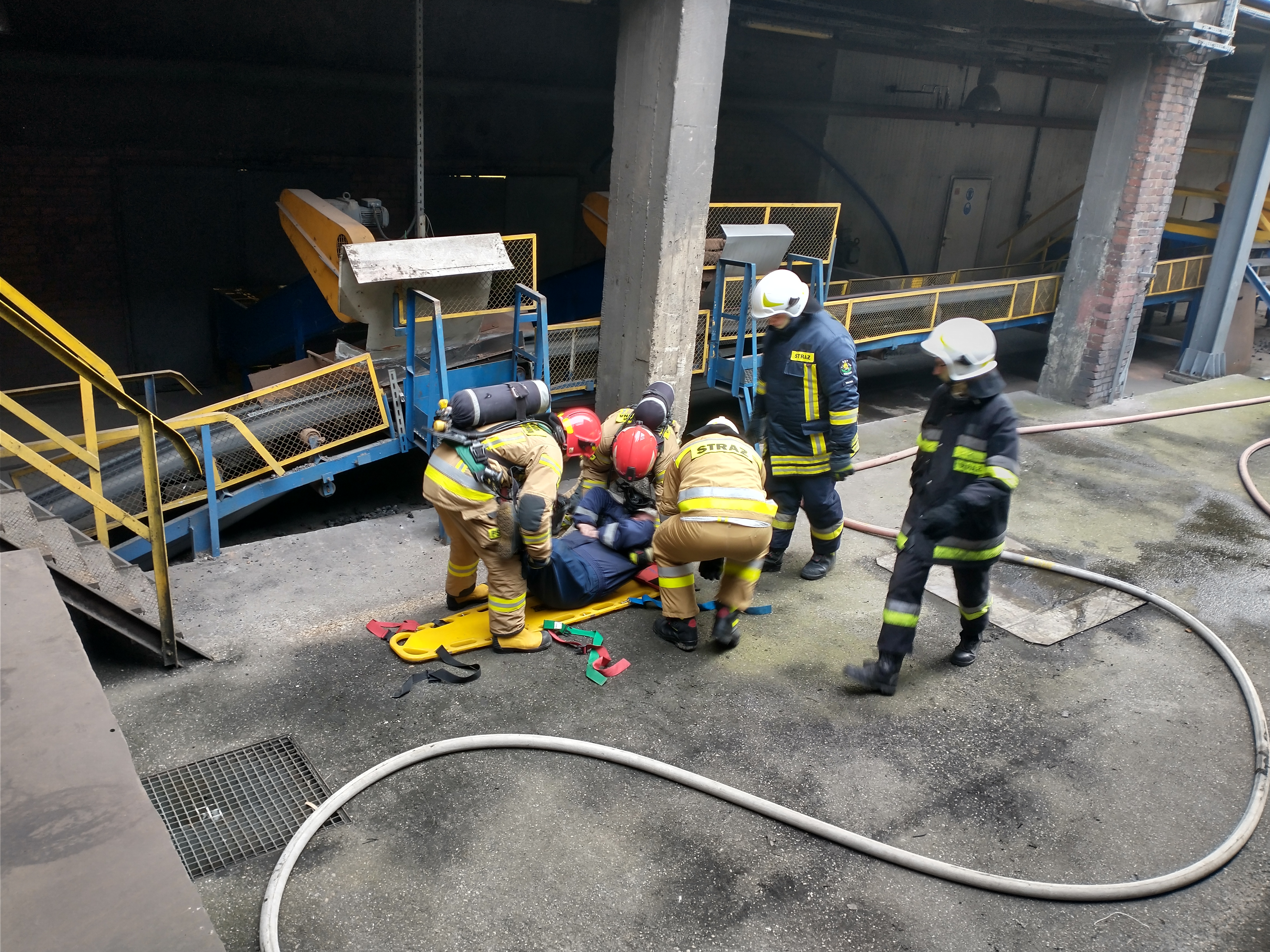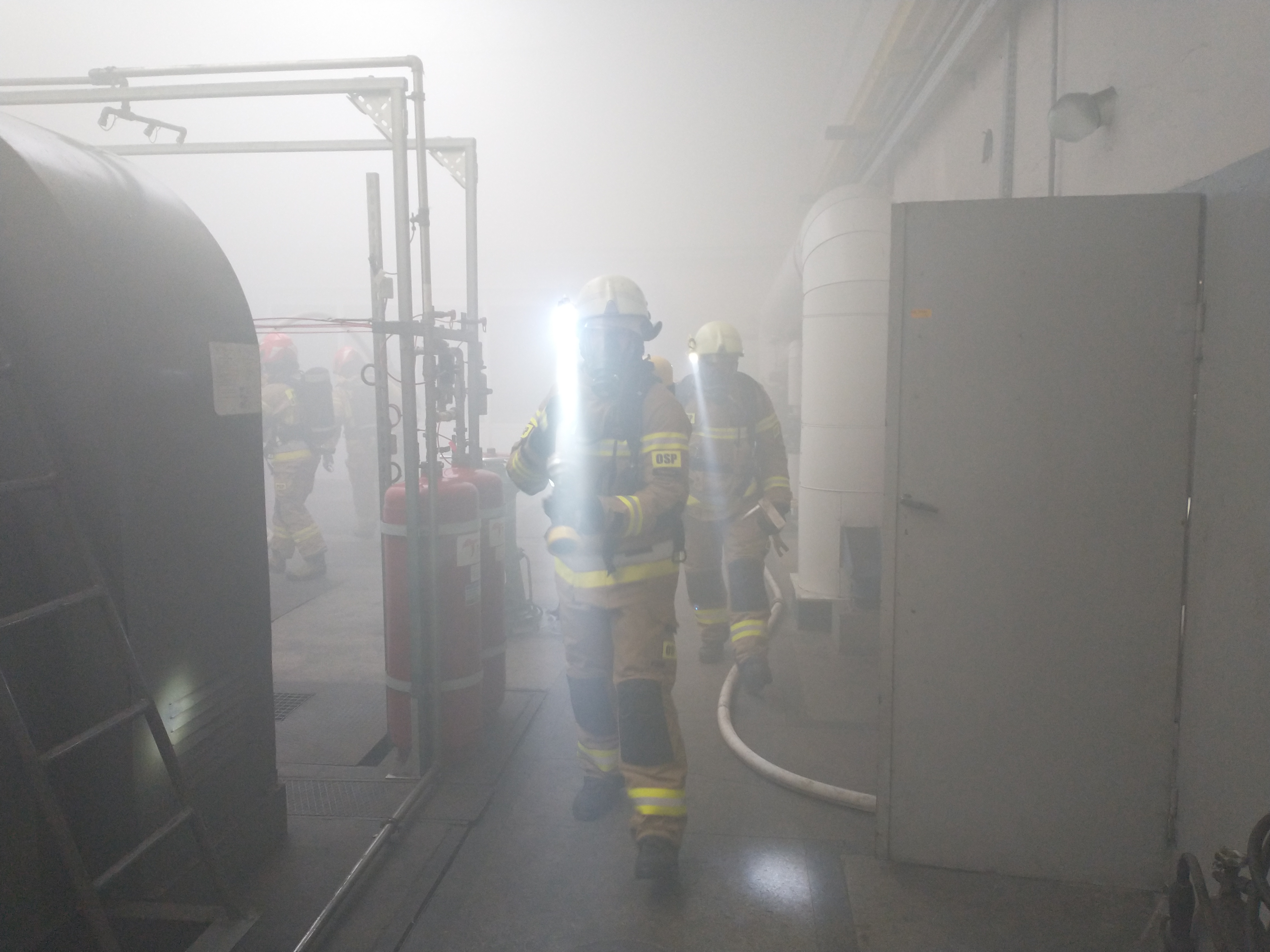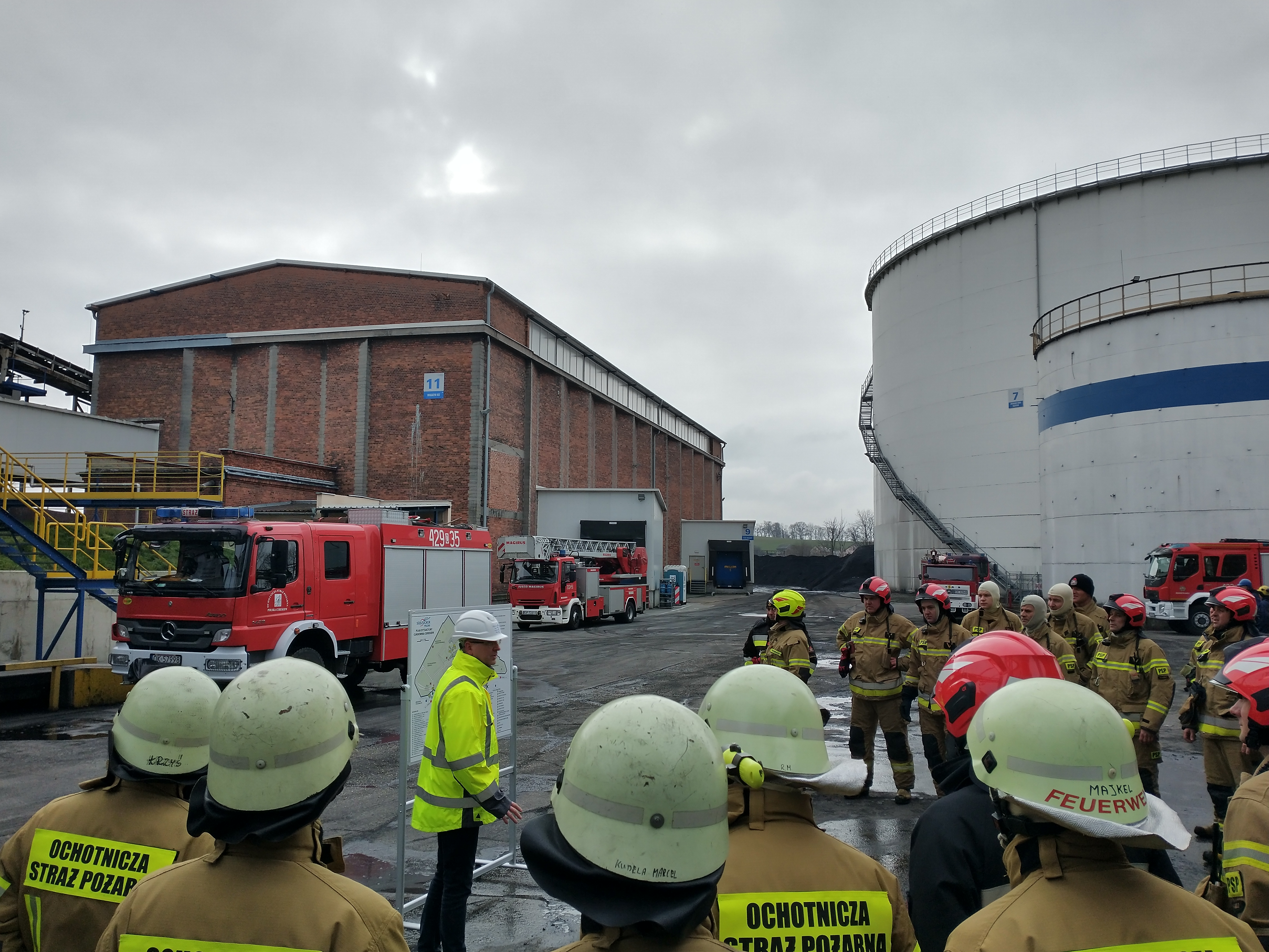 W trakcie ćwiczeń zastępy JRG przeprowadziły również rozpoznanie zakładu pod kątem zaopatrzenia w wodę do celów przeciwpożarowych do zewnętrznego gaszenia pożaru oraz dróg pożarowych.