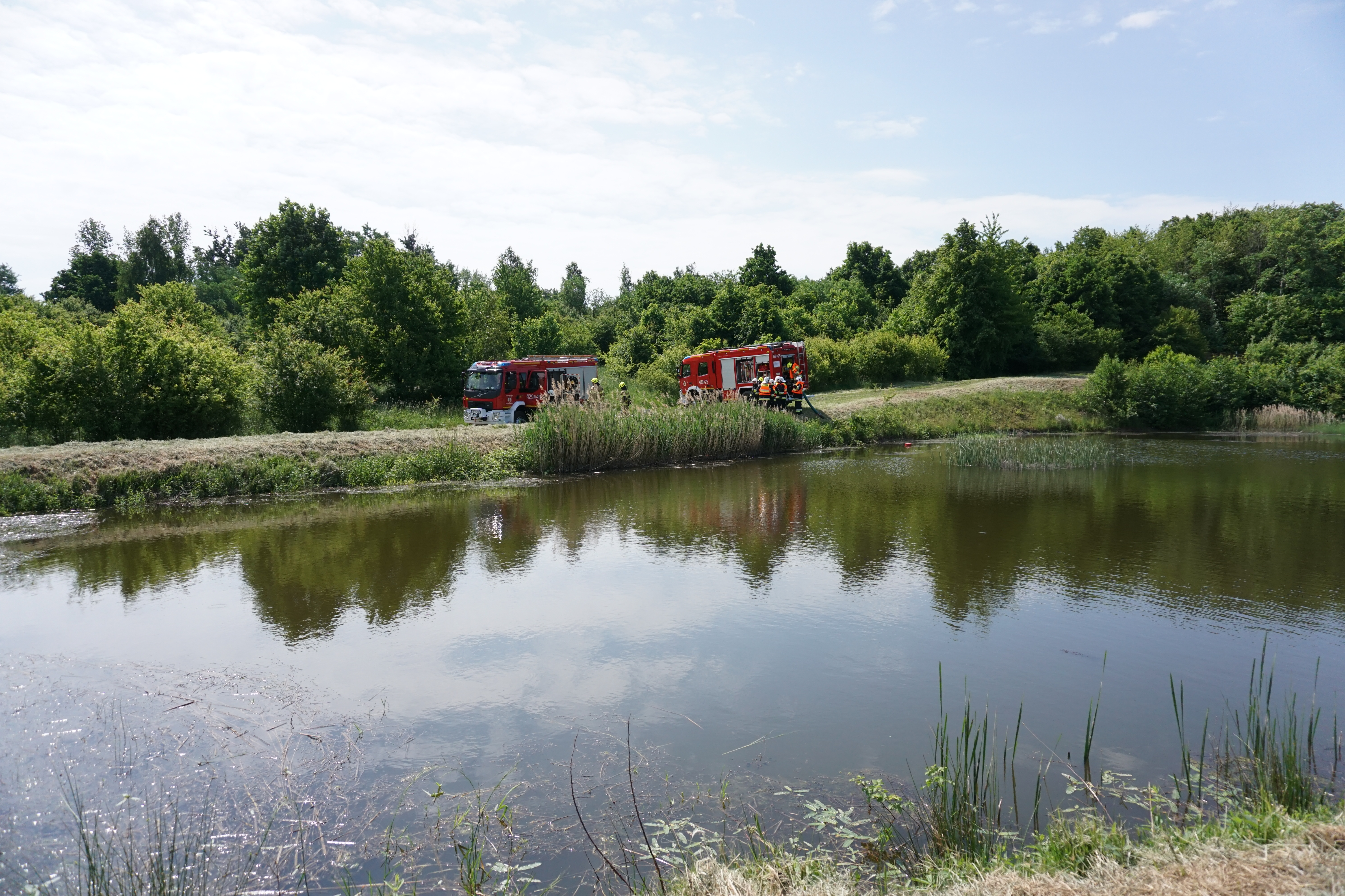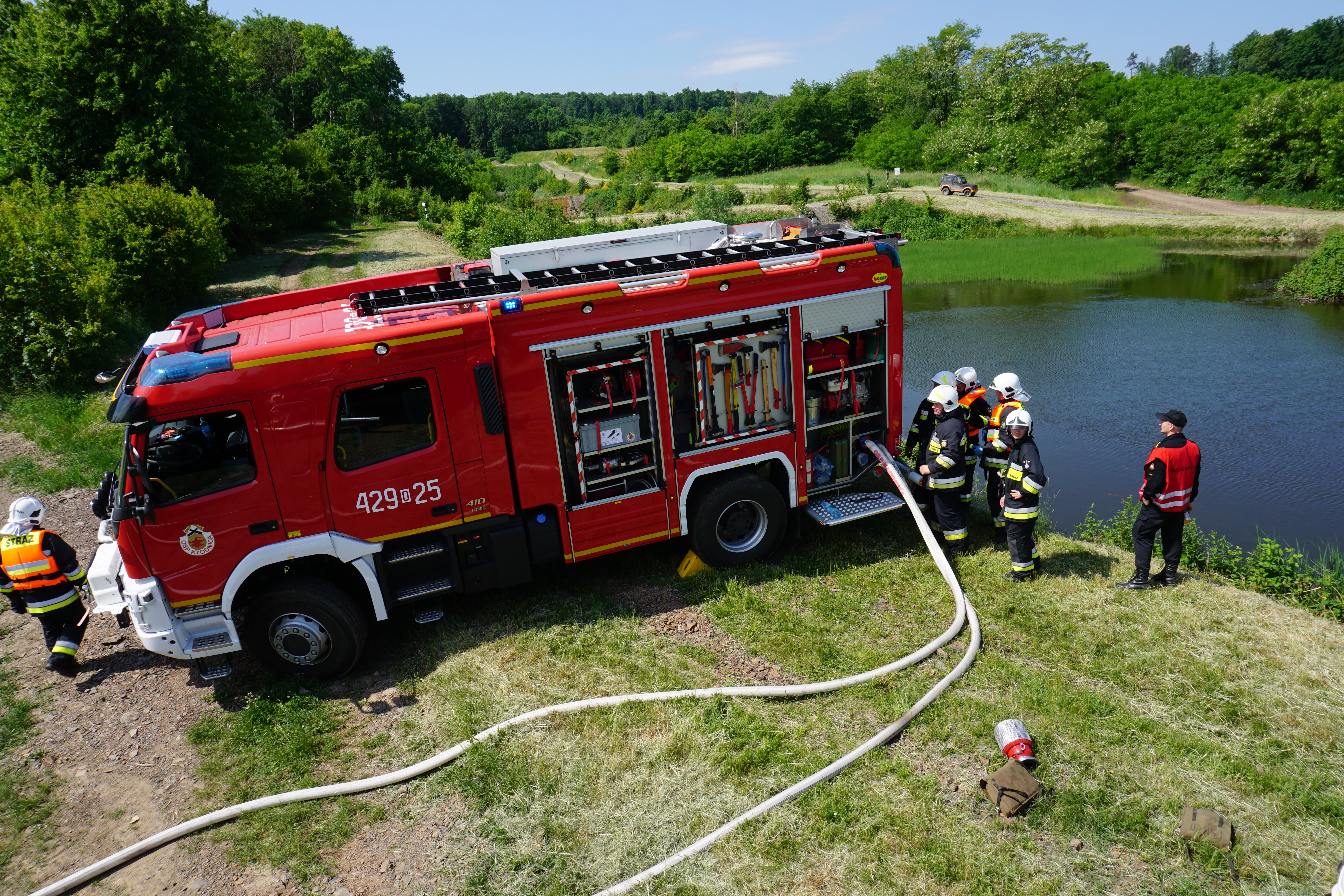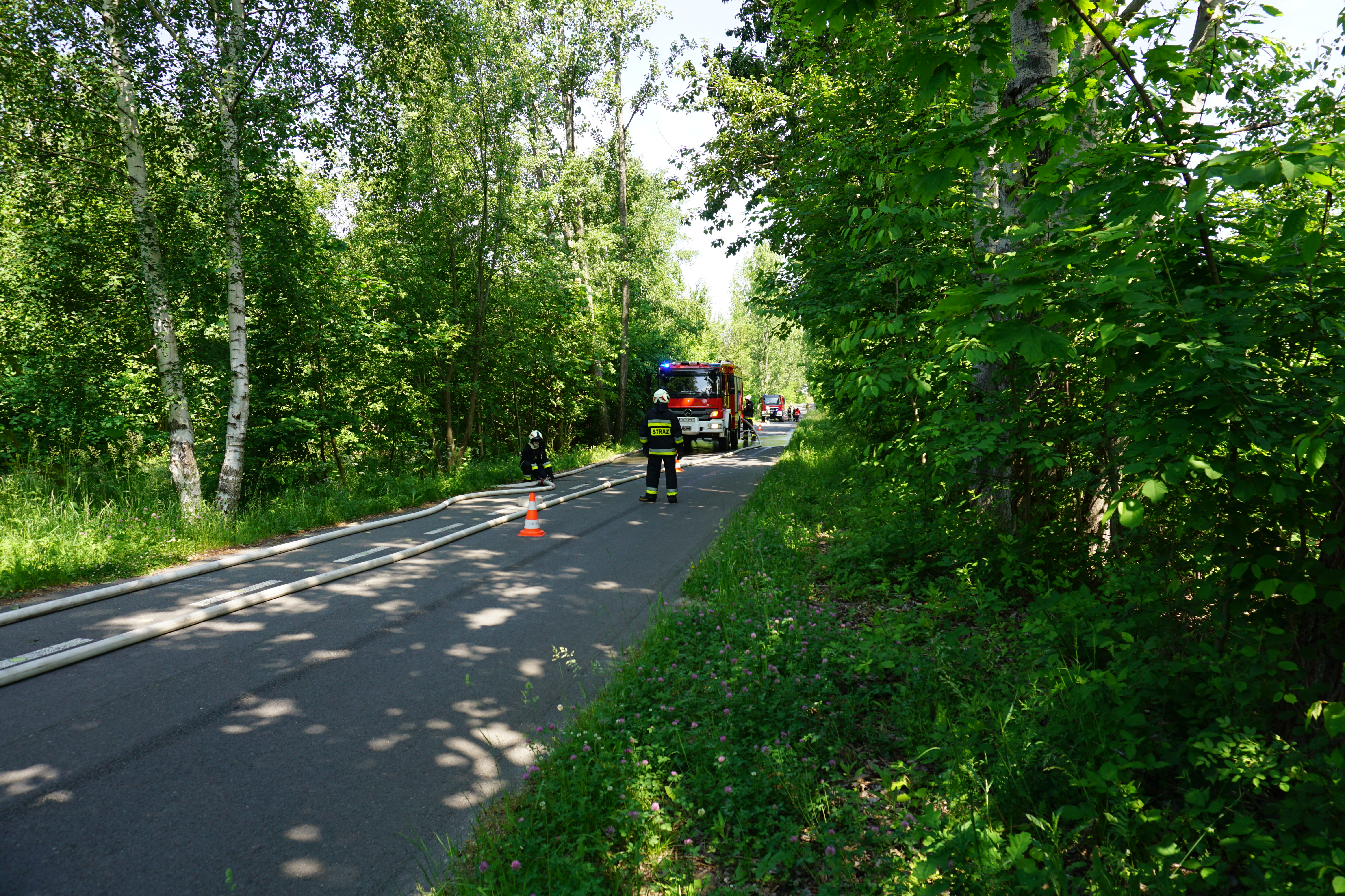 Prowadzenie działań gaśniczych w kompleksach leśnych każdorazowo niesie za sobą poważne wyzwanie. Największą trudnością z jaką zmagają się strażacy w sytuacji wystąpienia takich zdarzeń, jest zapewnienie odpowiedniej ilości środka gaśniczego do skutecznego przeprowadzenia akcji gaśniczej. Strażacy ćwiczyli praktyczną możliwość dostarczania wody metodą przetłaczania – podawanie wody z jednego samochodu gaśniczego do następnego, tworząc tym samym magistralę zasilającą. Metoda ta stosowana jest w przypadkach, gdzie prowadzenie akcji gaśniczej utrudniają uwarunkowania terenu takie jak: