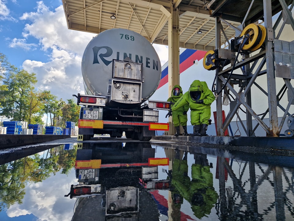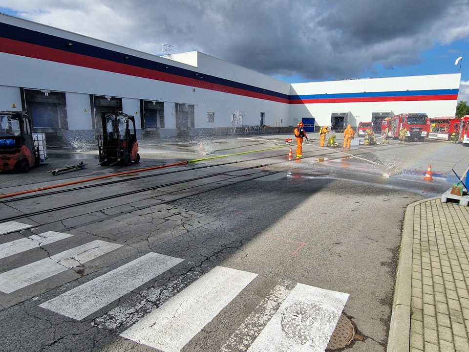 W dniach 03-05 października nasi strażacy zapoznają się ze specyfiką oraz infrastrukturą zakładu przemysłowego BRENNTAG Polska sp. z o. o. w Kędzierzynie-Koźlu w trakcie których ćwiczą scenariusz zdarzenia awaryjnego dotyczącego uwolnienia substancji niebezpiecznych. Dzisiejsze założenie dotyczyło pęknięcia węża na stacji rozładunkowej cystern samochodowych, wycieku i utworzenia rozlewiska substancji niebezpiecznej. Zanim jednak na miejsce dojadą służby ratownicze, działania prowadzone były przez specjalnie przeszkolonych ratowników przedsiębiorstwa. W działaniach brały udział jednostki JRG nr 1 i 2 w Kędzierzynie-Koźlu w tym także Specjalistyczna Grupa Ratownictwa Chemicznego i Ekologicznego „Kędzierzyn-Koźle” z JRG nr 1 Azotach. Ćwiczenia mają na celu sprawdzenie wewnętrznych procedur ratowniczych zakładu podczas likwidacji zagrożenia i doskonalenie współpracy z jednostkami ochrony przeciwpożarowej.