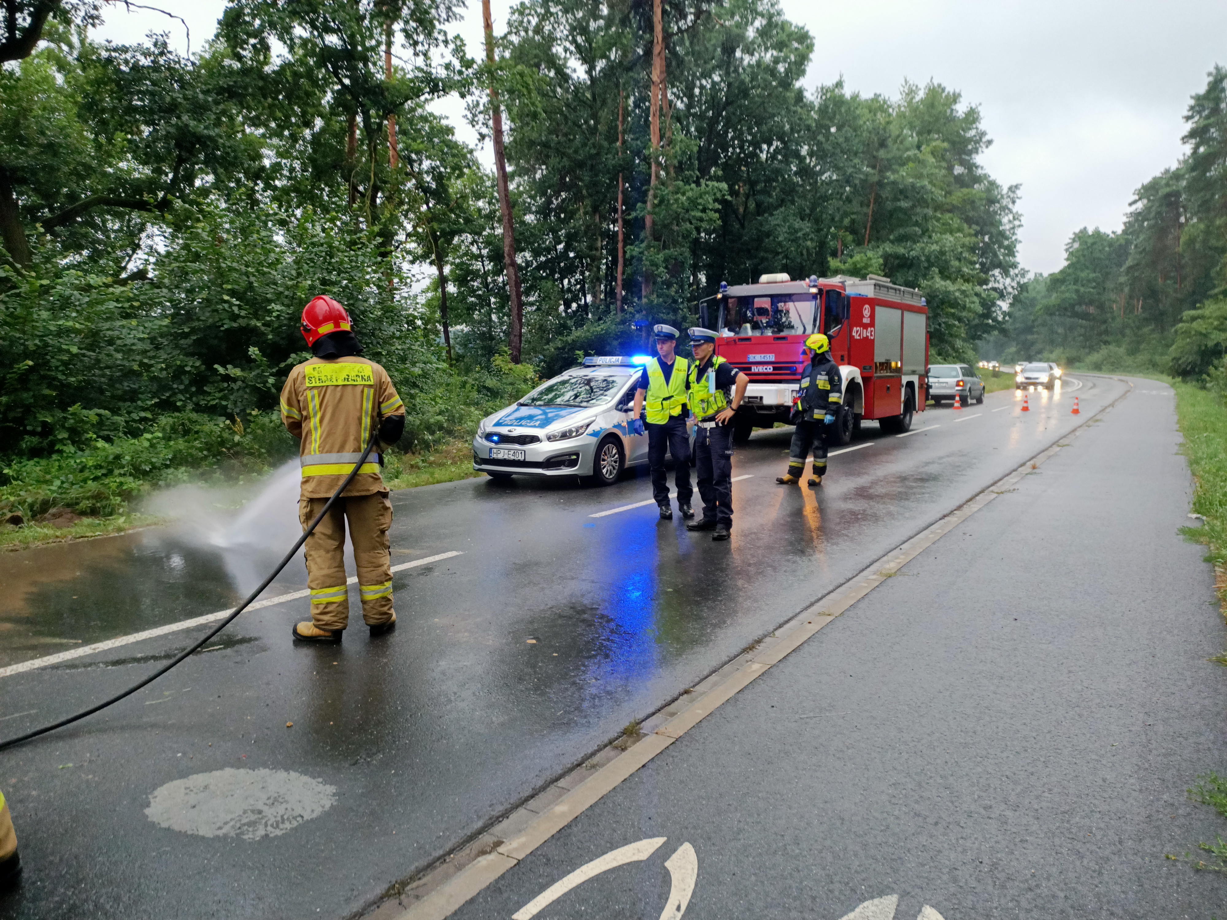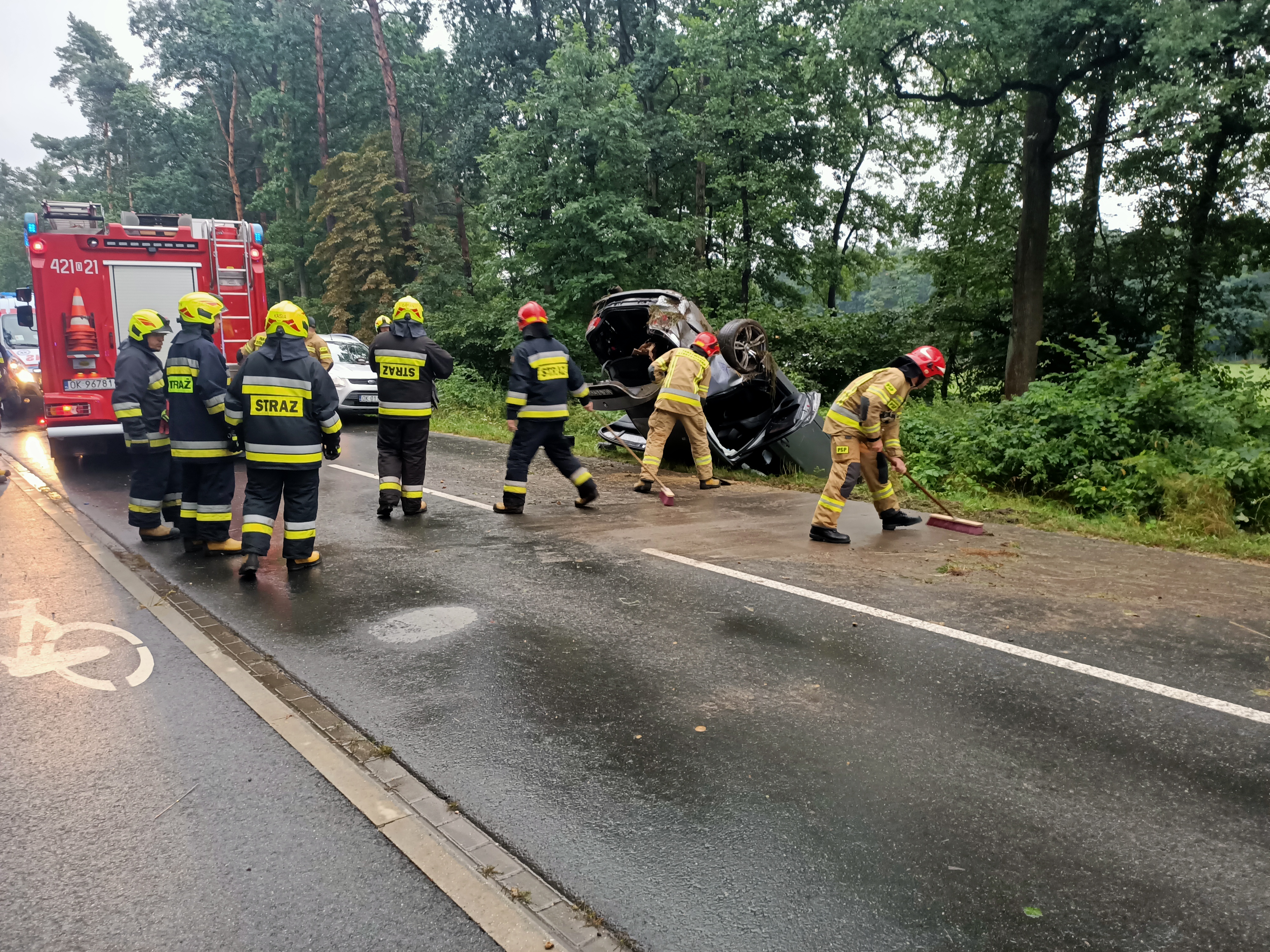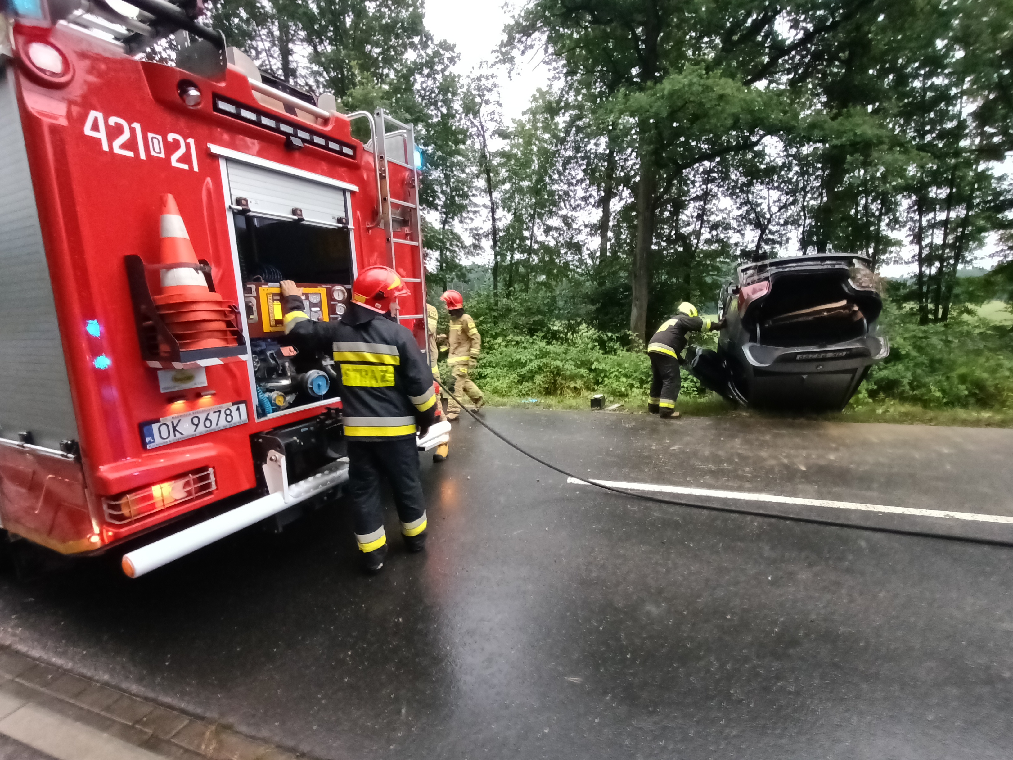 W dniu 01.08.2021 r. o godzinie 18:41 dyżurny stanowiska kierowania otrzymał zgłoszenie o wypadku (dachowaniu) samochodu osobowego w Kędzierzynie-Koźlu przy ul. Jana Brzechwy kierunkek Kędzierzyn-Koźle - Cisowa. Po dojeździe na miejsce zdarznia KDR potwierdził treść zgłoszenia. Działania strażaków polegały na zabezpieczeniu miejsca wypadku poprzez zamknięcie drogi, udzieleniu KPP osobom poszkodowanym, odłączeniu zasialania w pojeździe oraz uporzatnięciu rozbitych części amochodu. W wyniku tego zdarzenia poszkodowane zostały 3 osoby podróżujące samochodem. Osoby poszkodowane zostały przekazane przybyłemu na miejsce ZRM.