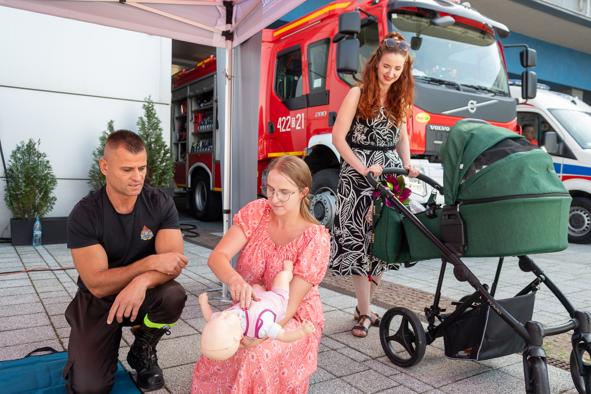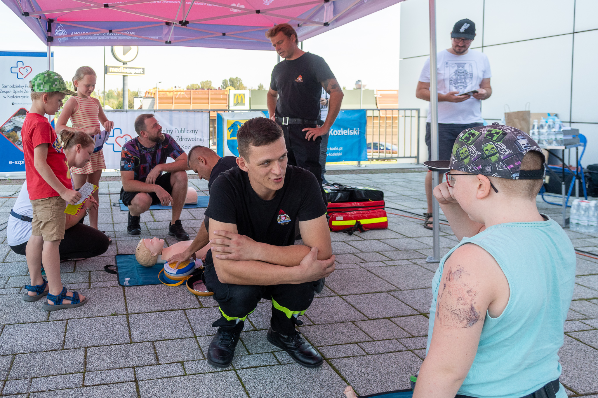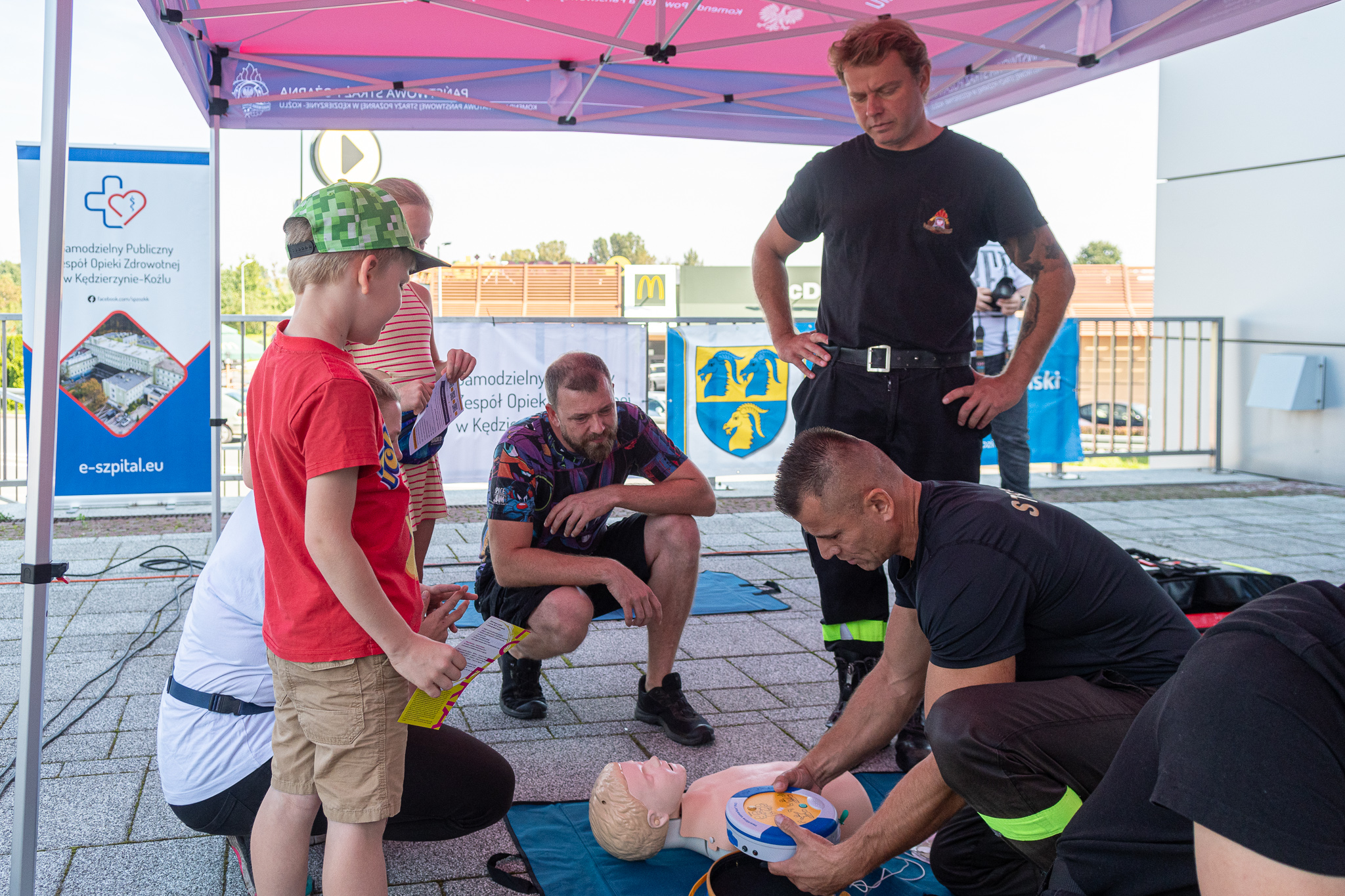 Mieszkańcy mieli możliwość zapoznania się z podstawowymi zasadami udzielania pierwszej pomocy. Strażacy KP PSP w Kędzierzynie-Koźlu prowadzili instruktaż z zakresu udzielania pierszej pomocy przy zatrzymaniu oddehu i krażenia u osób dorosłych, dzieci i niemowlaków. Było to też okazja do zapoznania się ze specyfiką pracy służb ratowniczych, które jako pierwsze docierają do poszkodowanych osób. Dodatkowo funkcjonariusze Policji instruowali mieszkańców, jak zachowywać się kiedy jesteśmy uczestnikami lub świadkami wypadków drogowych.