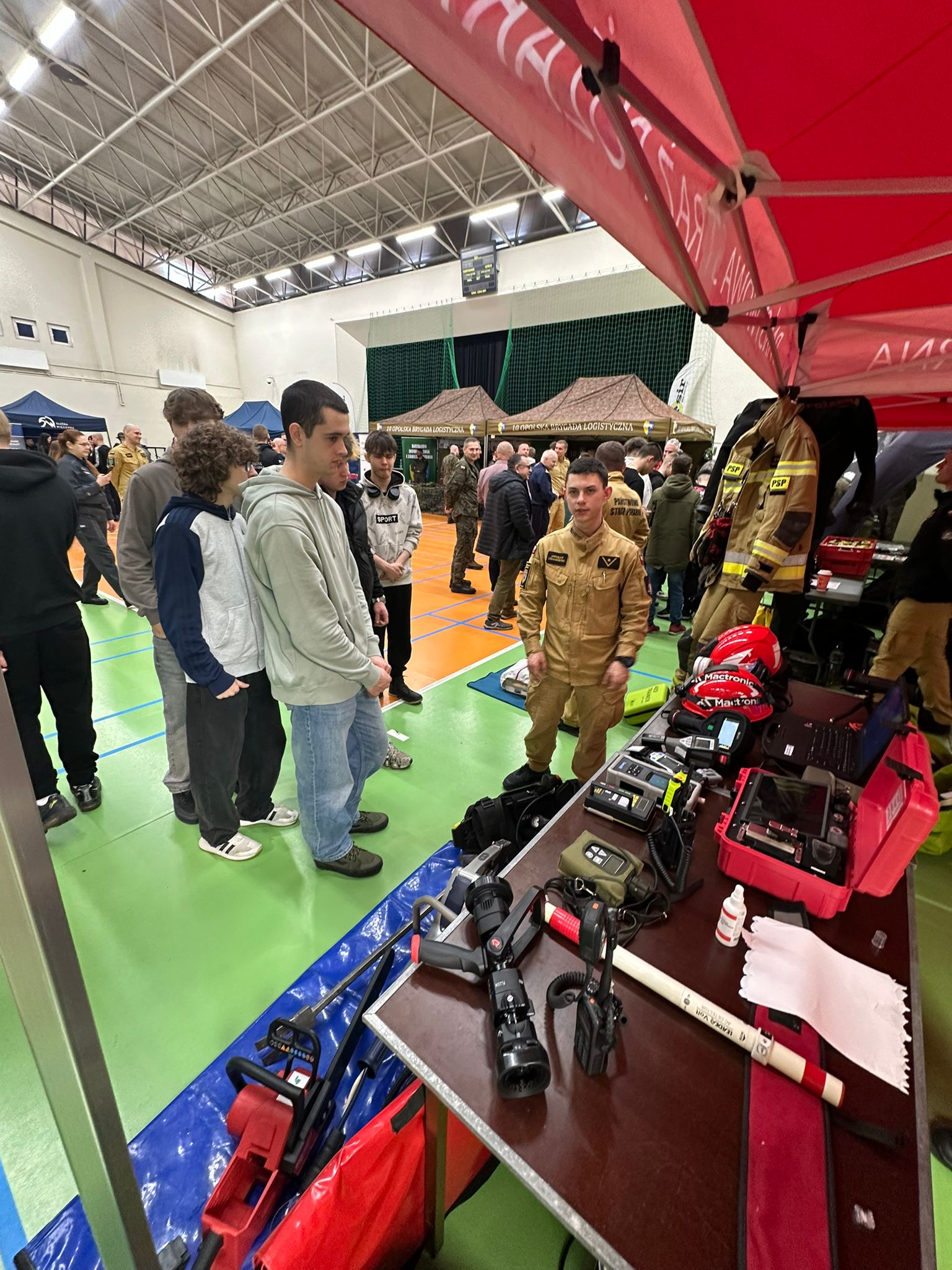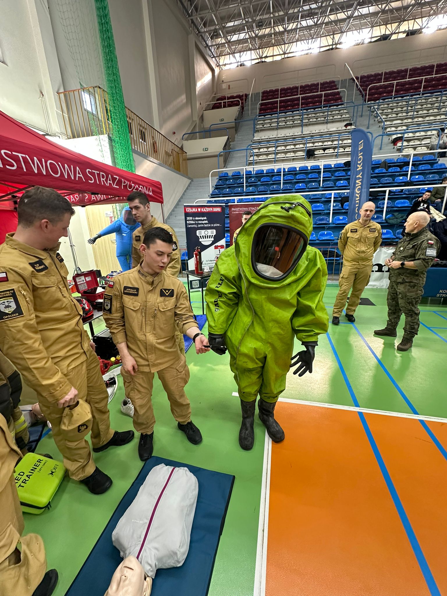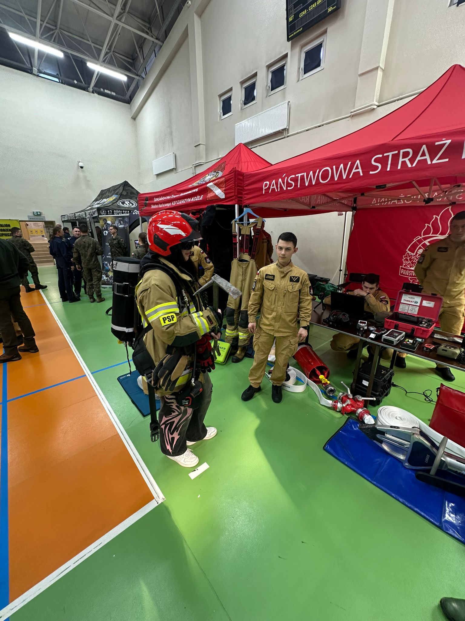 Ważnym elementem targów były prezentacje wyposażenia i specjalistycznego sprzętu. Państwowa Straż Pożarna zaprezentowała m.in. działalność specjalistycznych grup ratownictwa: chemiczno-ekologicznego oraz wodno-nurkowego. Na stoiskach prowadzono instruktaż pierwszej pomocy, a także działania profilaktyczne związane z zagrożeniami wynikającymi z tlenku węgla – odwiedzający mogli dowiedzieć się, jak prawidłowo montować czujniki czadu i dymu oraz dlaczego warto je mieć w domu. Strażacy przekazywali również informacje o możliwościach wstąpienia do służby – zarówno poprzez nabór bezpośredni, jak i szkoły pożarnicze w Polsce.