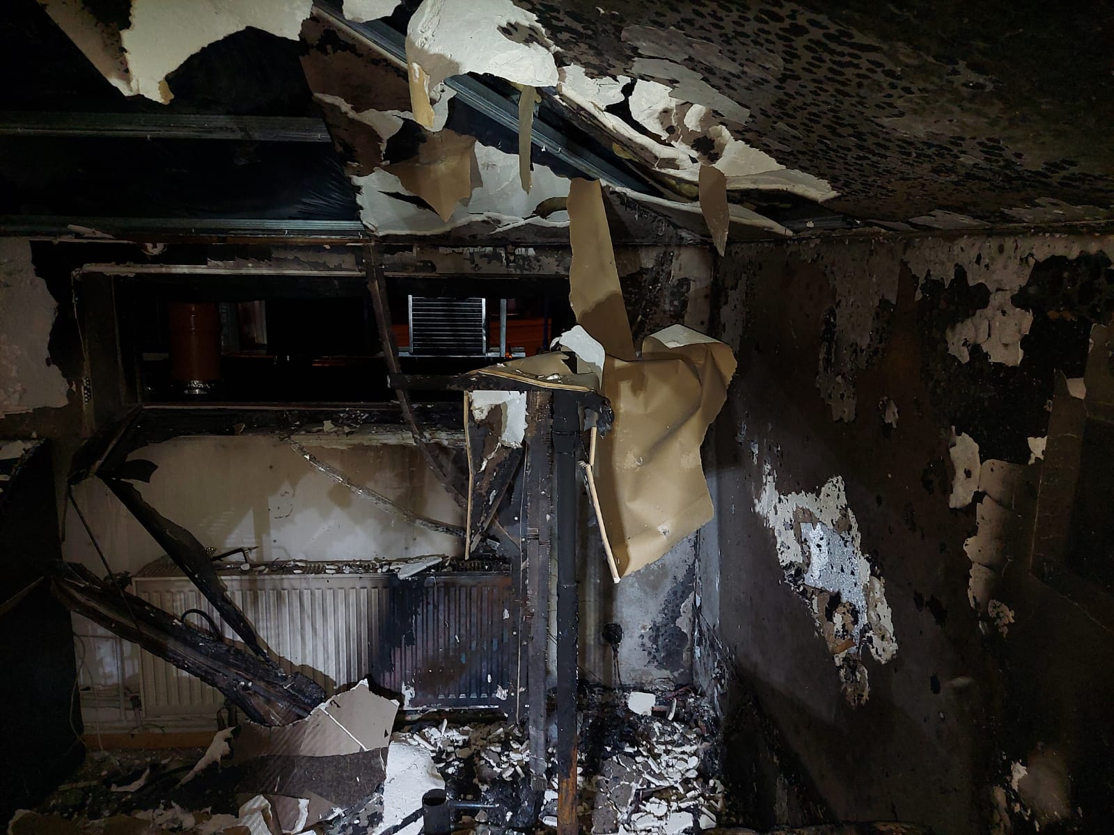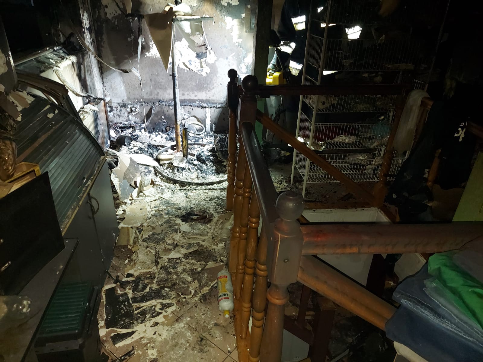 Przy użyciu drabiny przystawnej strażacy dostali się przez okno do obiektu, usuwając wcześniej zasłaniające je kraty. Podczas przeszukiwania budynku i prowadzenia działań gaśniczych, strażacy odnaleźli wewnątrz poparzonego mężczyznę. Poszkodowany został ewakuowany z obiektu.