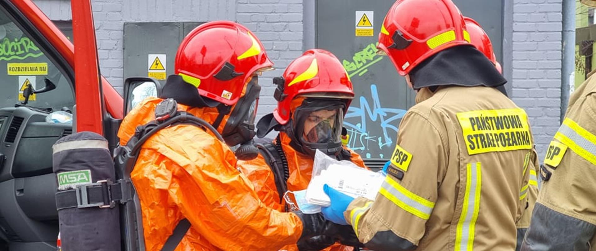 - wprowadzeniu do miejsca działań ratowników zabezpieczonych w ubrania chemiczne oraz sprzęt ochrony dróg oddechowych wyposażonych w sprzęt wykrywczo-pomiarowy,