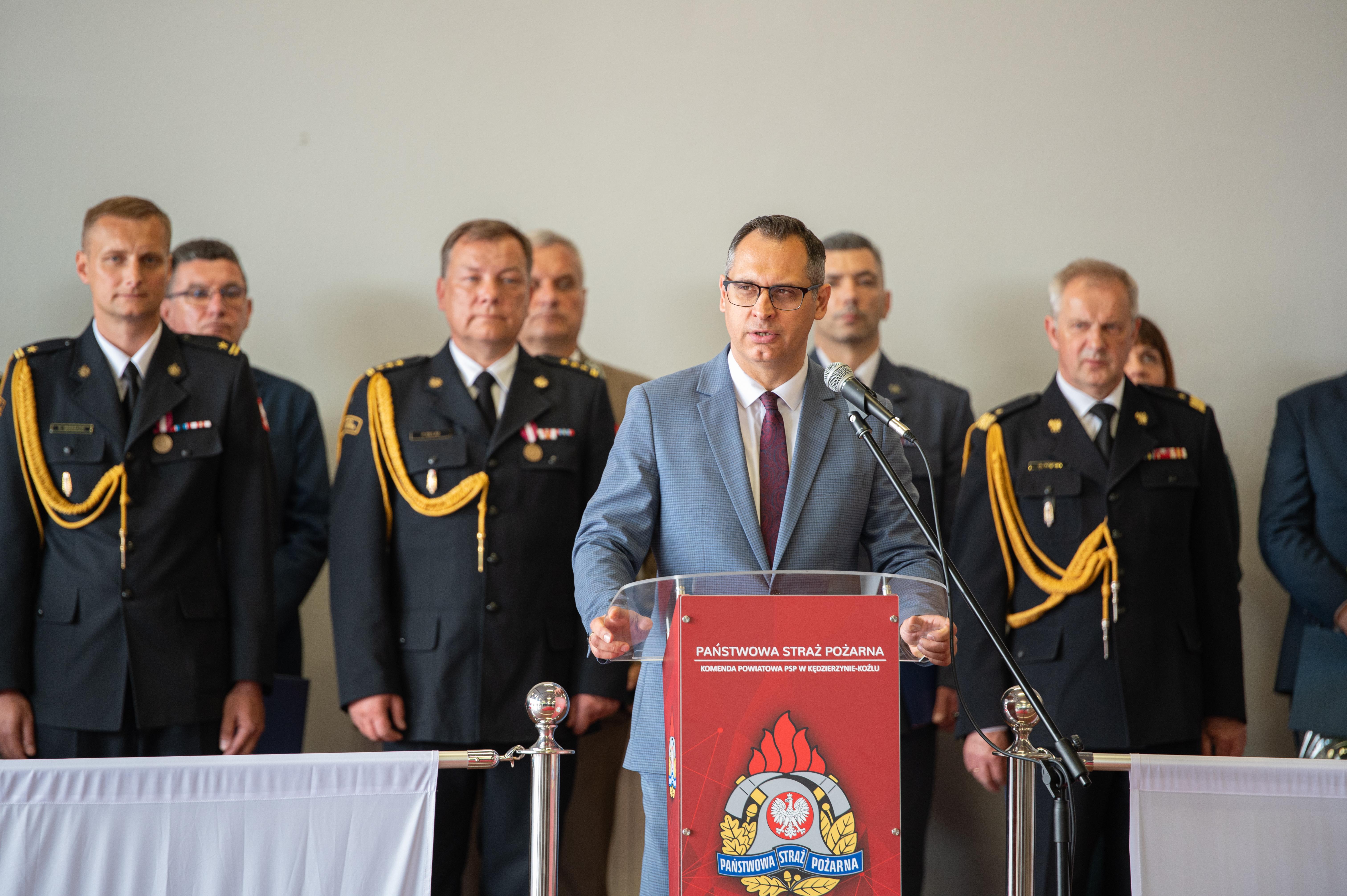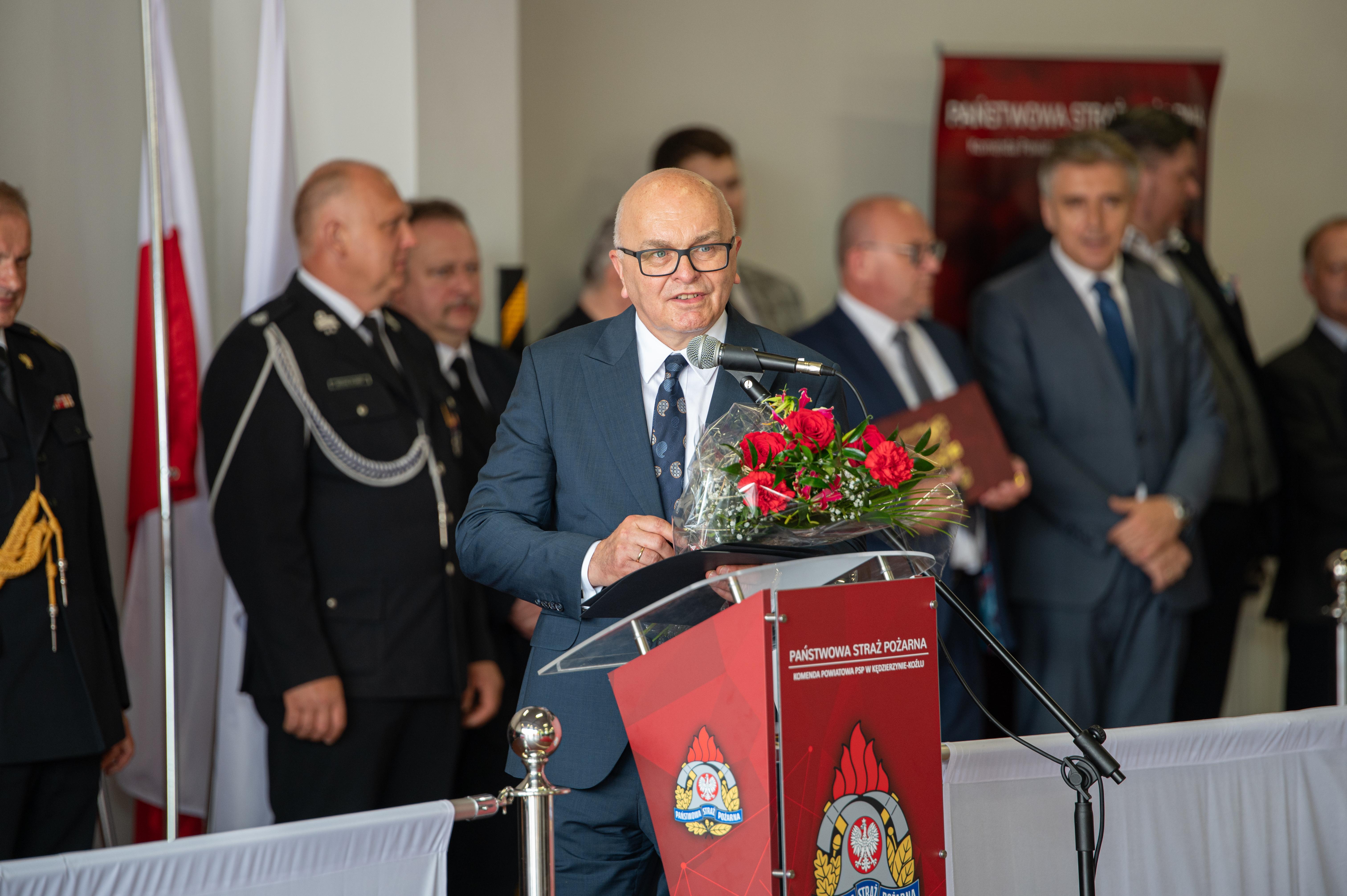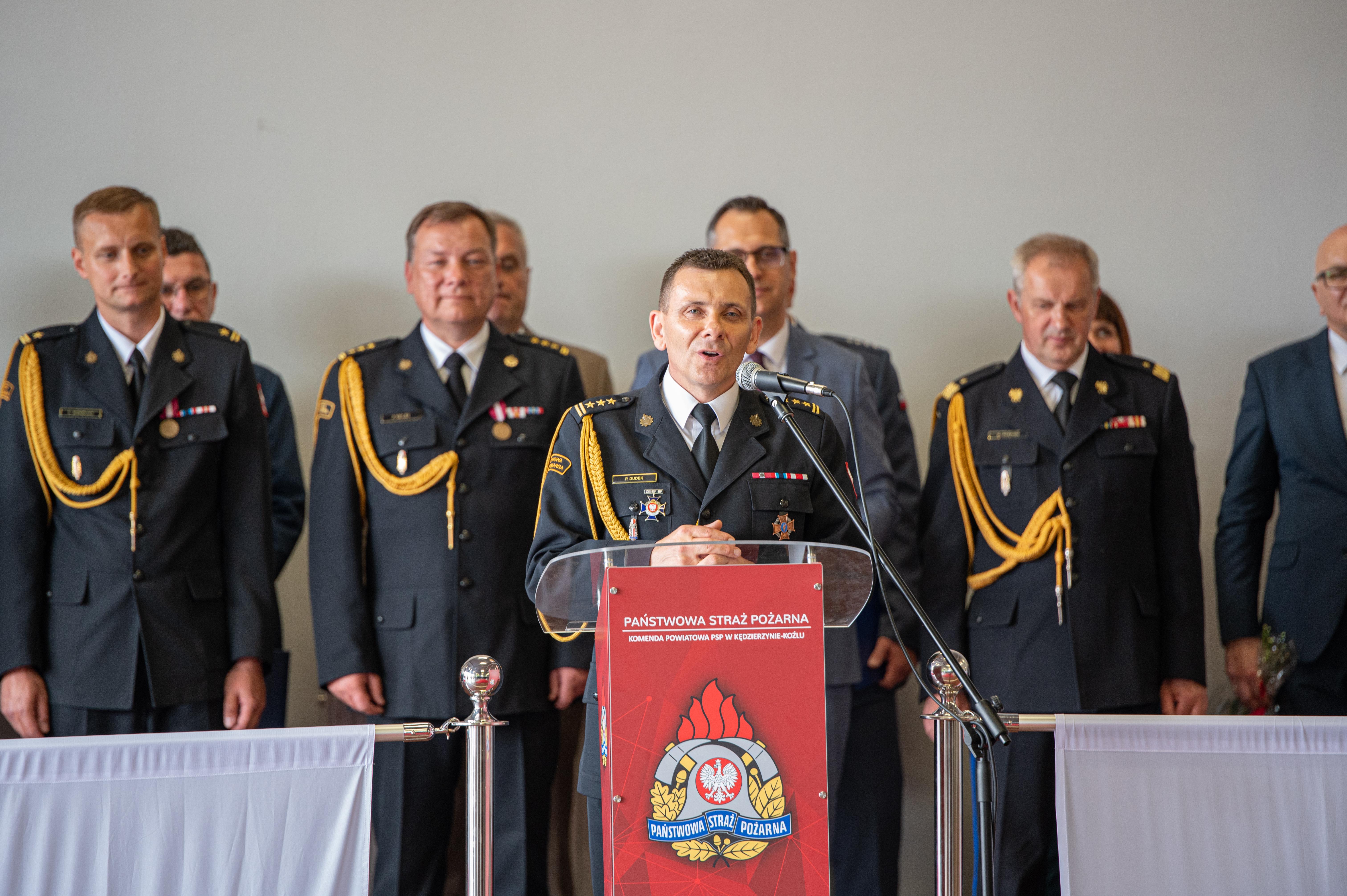 Komendant Powiatowy PSP w Kędzierzynie-Koźlu mł. bryg. Szymon Jędrzejas przywitał licznie przybyłych gości oraz funkcjonariuszy i pracowników komendy. Wśród zaproszonych byli między innymi: