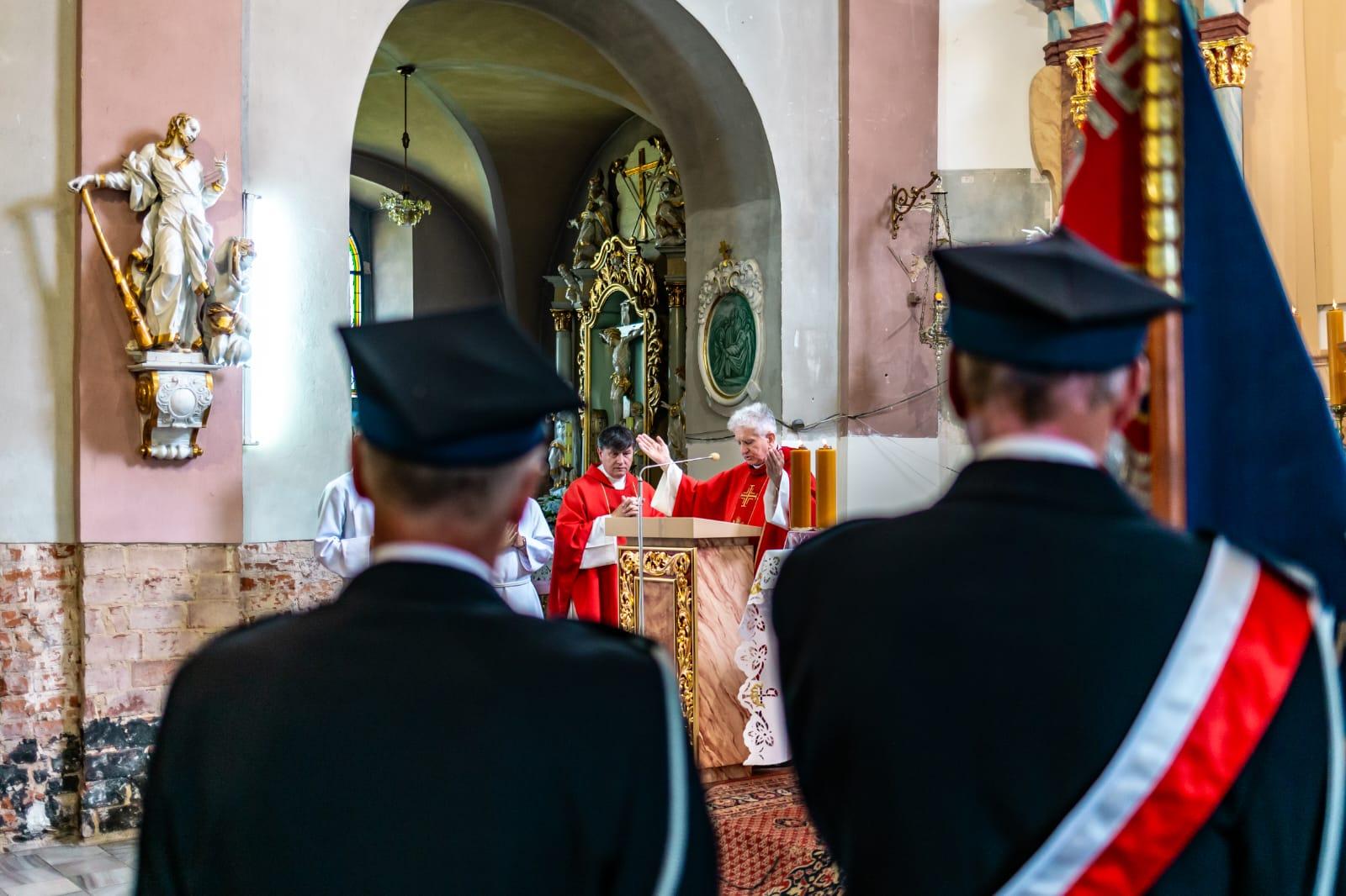 Uroczyste obchody rozpoczęły się od mszy świętej w kościele parafialnym pw. Wniebowzięcia NMP w Gościęcinie odprawionej w intencji strażaków jednostki OSP Gościęcin. Mszy świętej przewodniczył Powiatowy Kapelan Strażaków, który przytoczył zarys historyczny jednostki OSP w Gościęcinie, proces dążenia społeczności strażackiej zmierzającej do włączenia w struktury krajowego systemu ratowniczo-gaśniczego oraz zobowiązania i odpowiedzialność, jaka ciąży na druhach OSP.