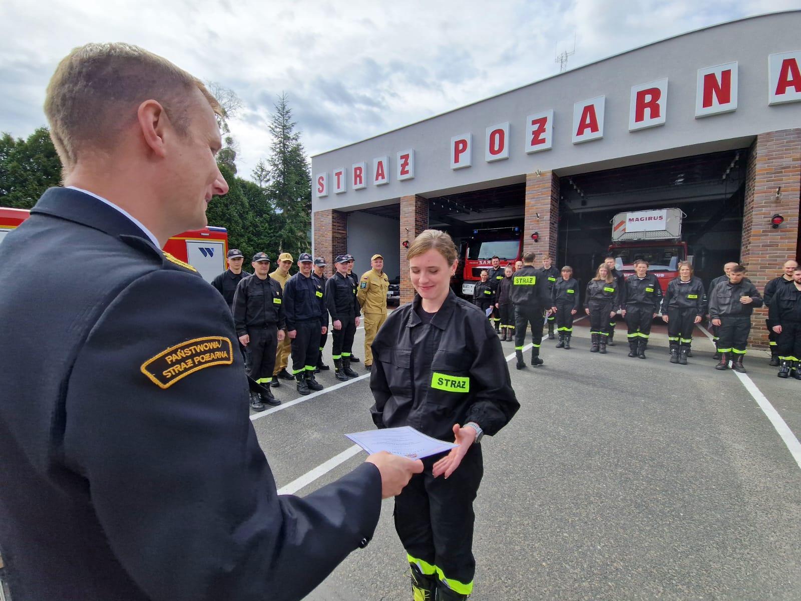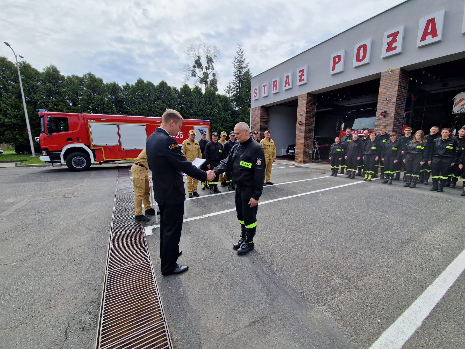 W podsumowaniu udział wziął pełniący obowiązki Komendanta Powiatowego PSP w Kędzierzynie-Koźlu – mł. bryg. Szymon Jędrzejas, który przekazał gratulacje i podziękowania za chęć niesienia bezinteresownej pomocy innym. Noszenie munduru strażaka jest nie tylko przywilejem, ale także zobowiązuje do godnego reprezentowania postawy obywatelskiej i społecznej! Komendant w swoim przemówieniu życzył dalszego zapału w podnoszeniu kwalifikacji pożarniczych.