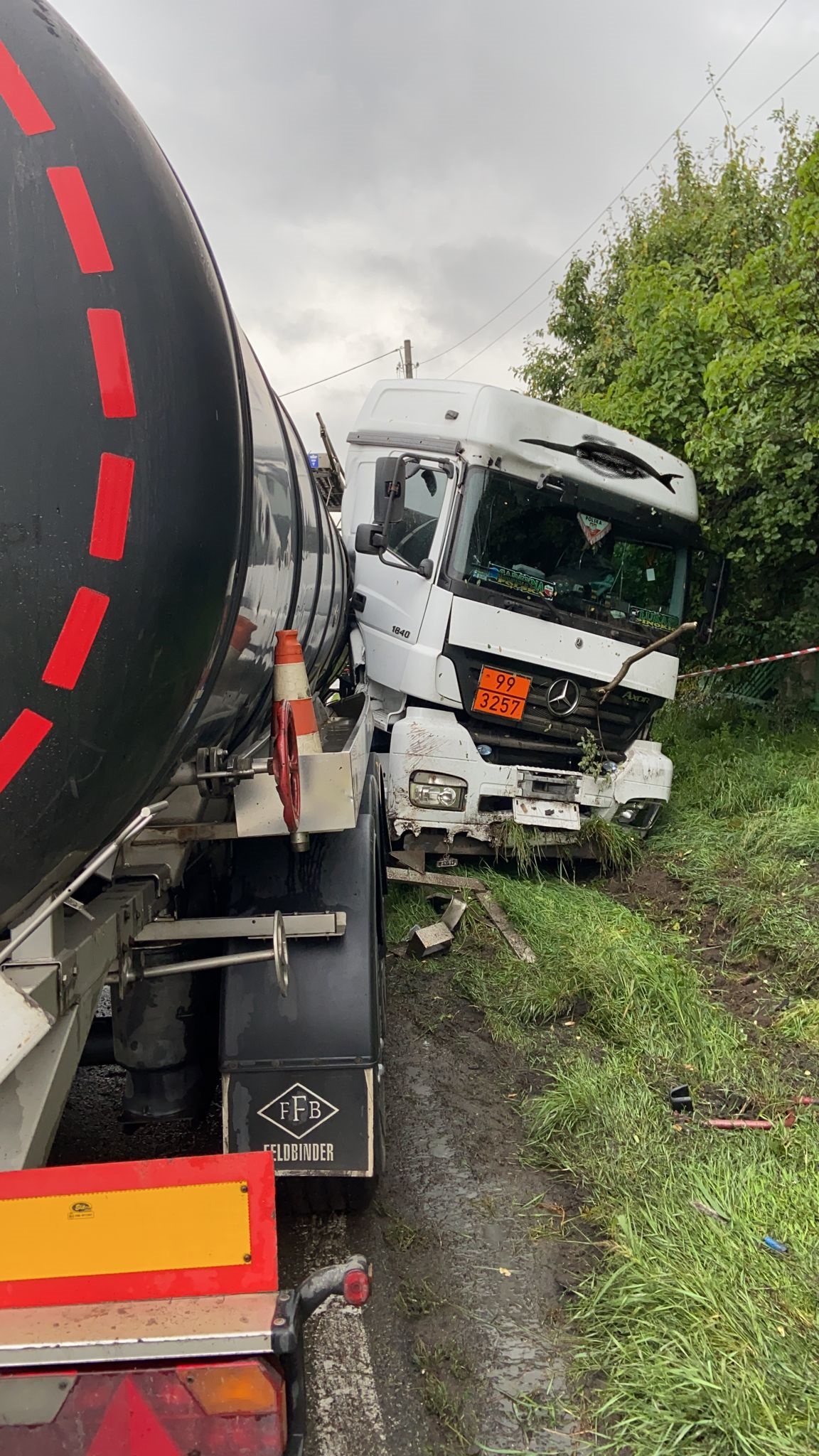 W dniu 24.08.2021 r. o godzinie 13:55 dyżurny Stanowiska Kierowania Komendanta Powiatowego PSP w Kędzierzynie-Koźlu otrzymał zgłoszenie o wypadku drogowym samochodu ciężarowego w miejscowości Ciężkowice na drodze krajowej nr 45. Do tego zdarzenia zadysponował zastępy z JRG 2 oraz OSP Polska Cerekiew. Po dojeździe na miejsce Kierujący działaniami ratowniczymi ustalił, że: samochód ciężarowy Mercedes z cysterną (brak ładunku) uderzył w słup średniego napięcia i znajduje się poza jezdnią, linia energetyczna zerwana, ruch odbywa się wahadłowo, jedna osoba - kierowca pojazdu poza samochodem bez obrażeń, wyciek ad-blue. Działania ratowników polegały na: zabezpieczeniu miejsca zdarzenia, odłączeniu akumulatora w pojeździe, wprowadzenie ruchu wahadłowego, sprawdzenie linii energetycznej detektorem prądu hot-stick (linia znajdowała się pod napięciem), wyznaczenie strefy bezpiecznej za pomocą taśmy ostrzegawczej, zadysponowanie na miejsce zakładu energetycznego, usunięcie skutków wypadku - płynów eksploatacyjnych oraz pozostałości karoserii po samochodach biorących udział w zdarzeniu, podanie prądu wody na nawierzchnię drogi w celu usunięcia zanieczyszczeń. Działania zakończono o godzinie 16:02.