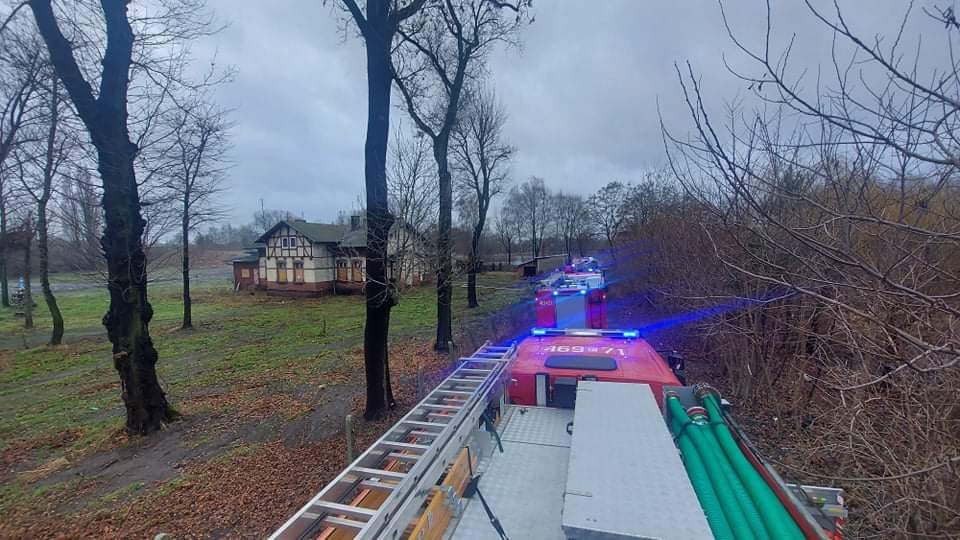 Po dotarciu na miejsce zdarzenia stwierdzono pożar w nieużytkowanym budynku mieszkalnym.