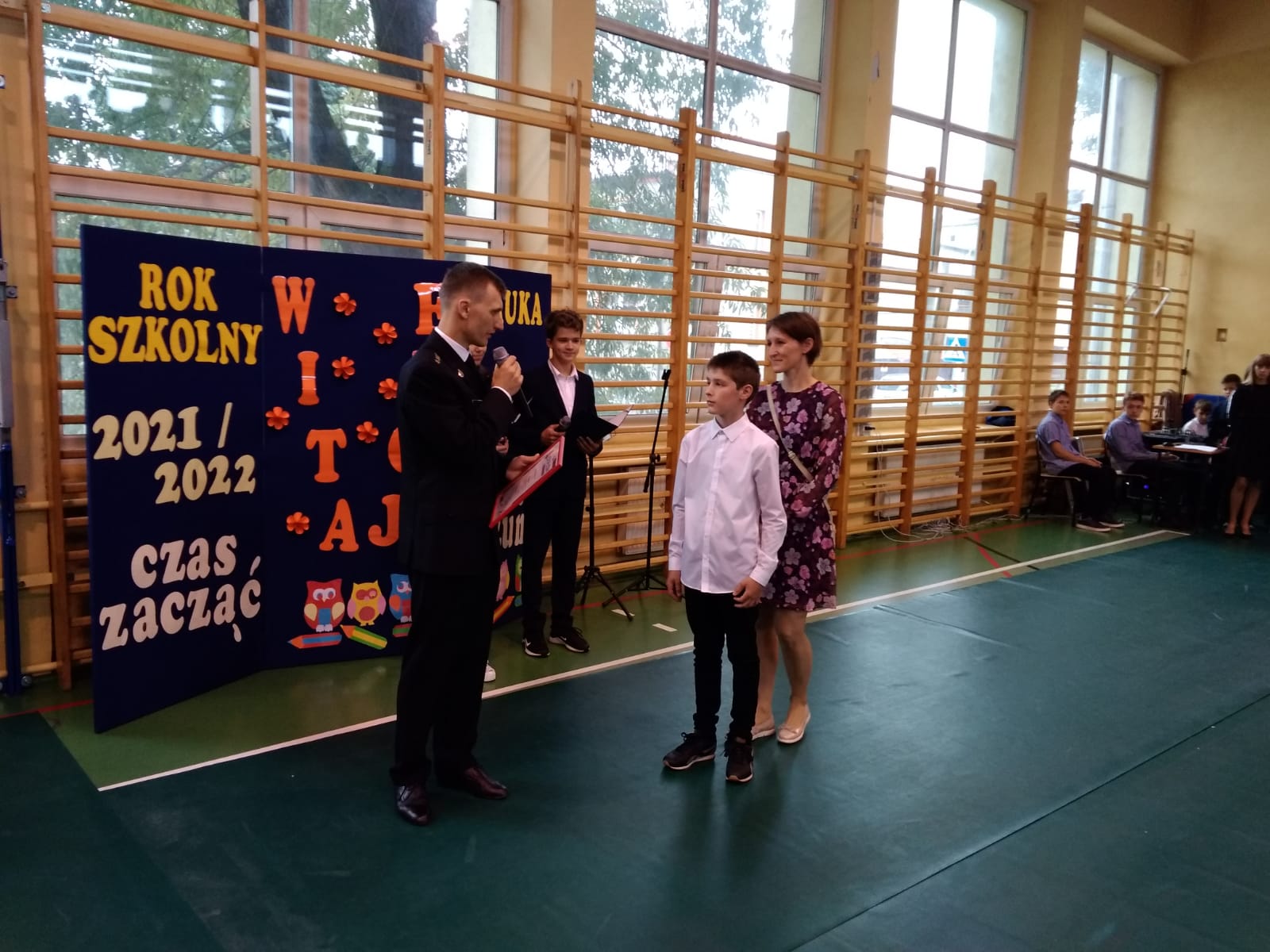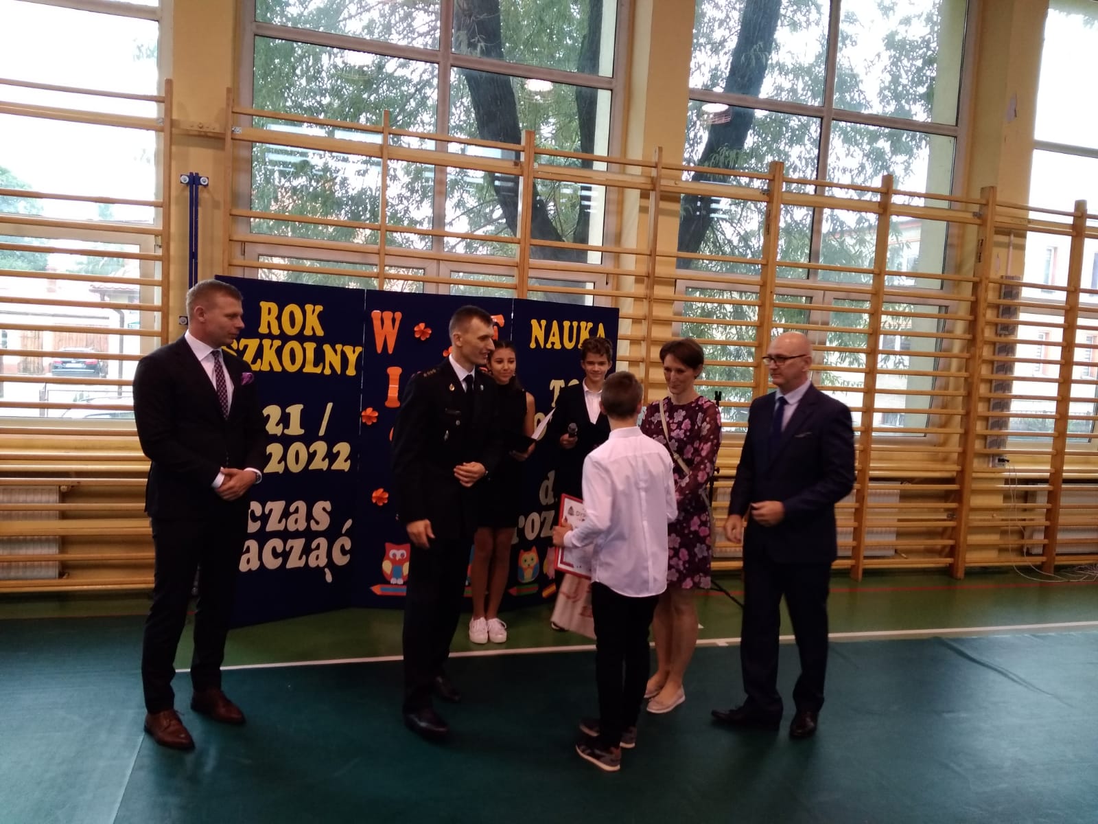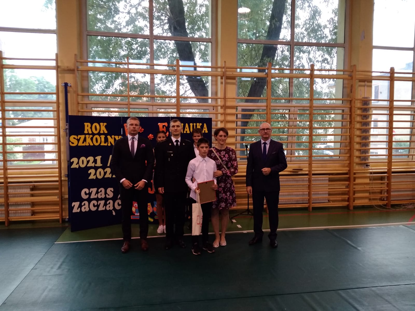 Podczas rozpoczęcia roku szkolnego wyróżniony otrzymał Dyplom Komendanta Głównego Państwowej Straży Pożarnej oraz nagrodę rzeczową którą wręczył Zastępca Komendanta Powiatowego Państwowej Straży Pożarnej w Kępnie st. kpt. Jarosław Kucharzak.