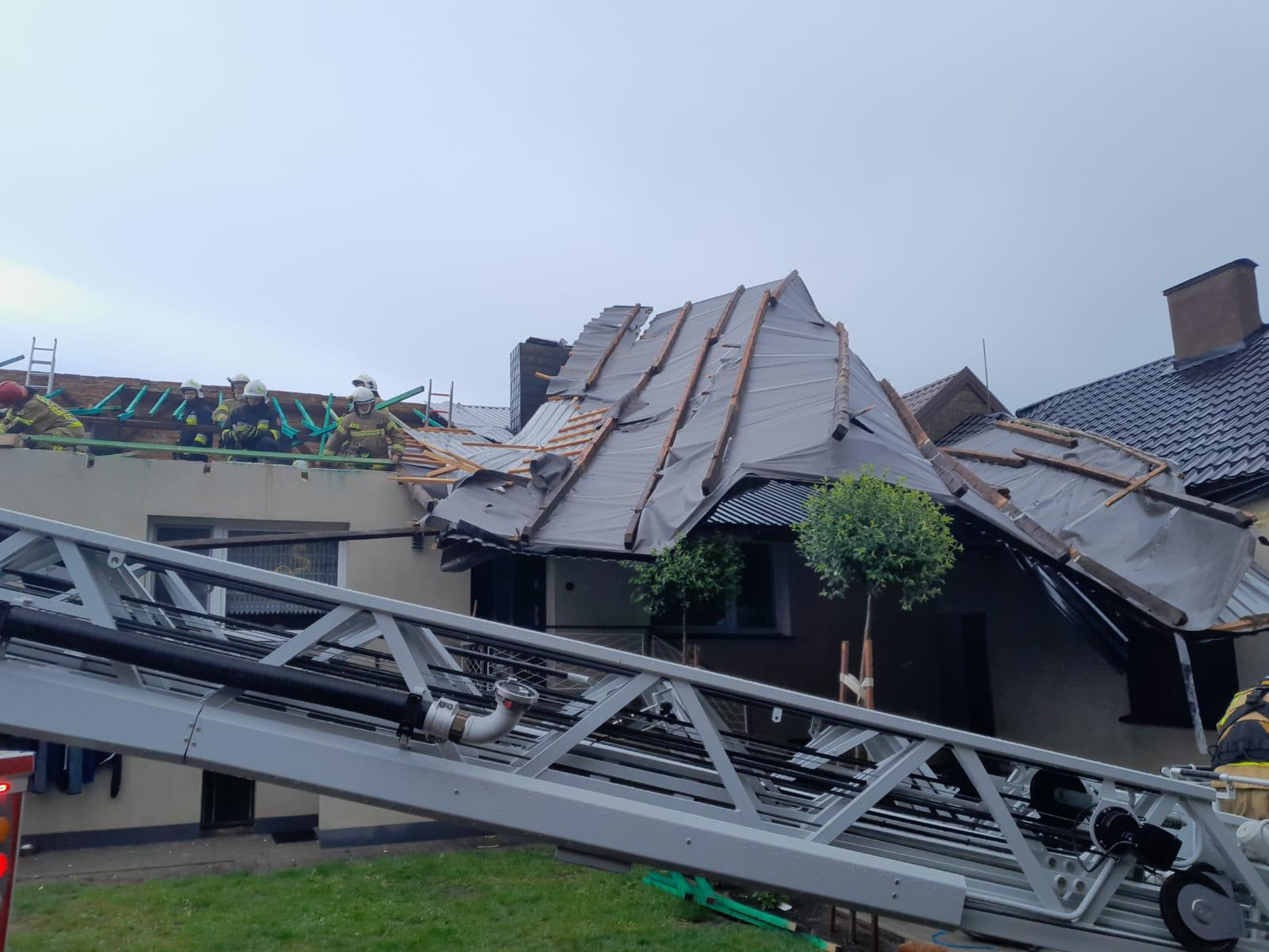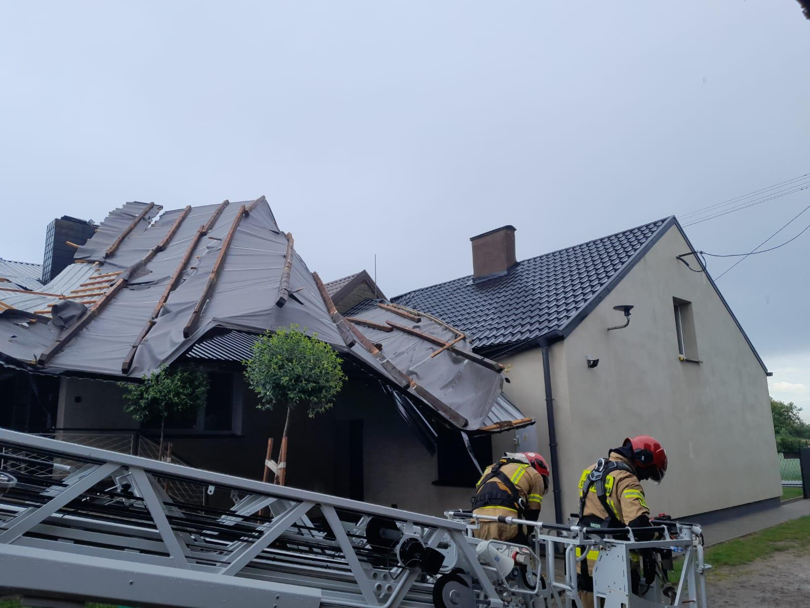 Po dotarciu na miejsce zdarzenia stwierdzono, że w wyniku silnego porywu wiatru doszło do zerwania połaci dachu z budynku mieszkalnego i gospodarczego.