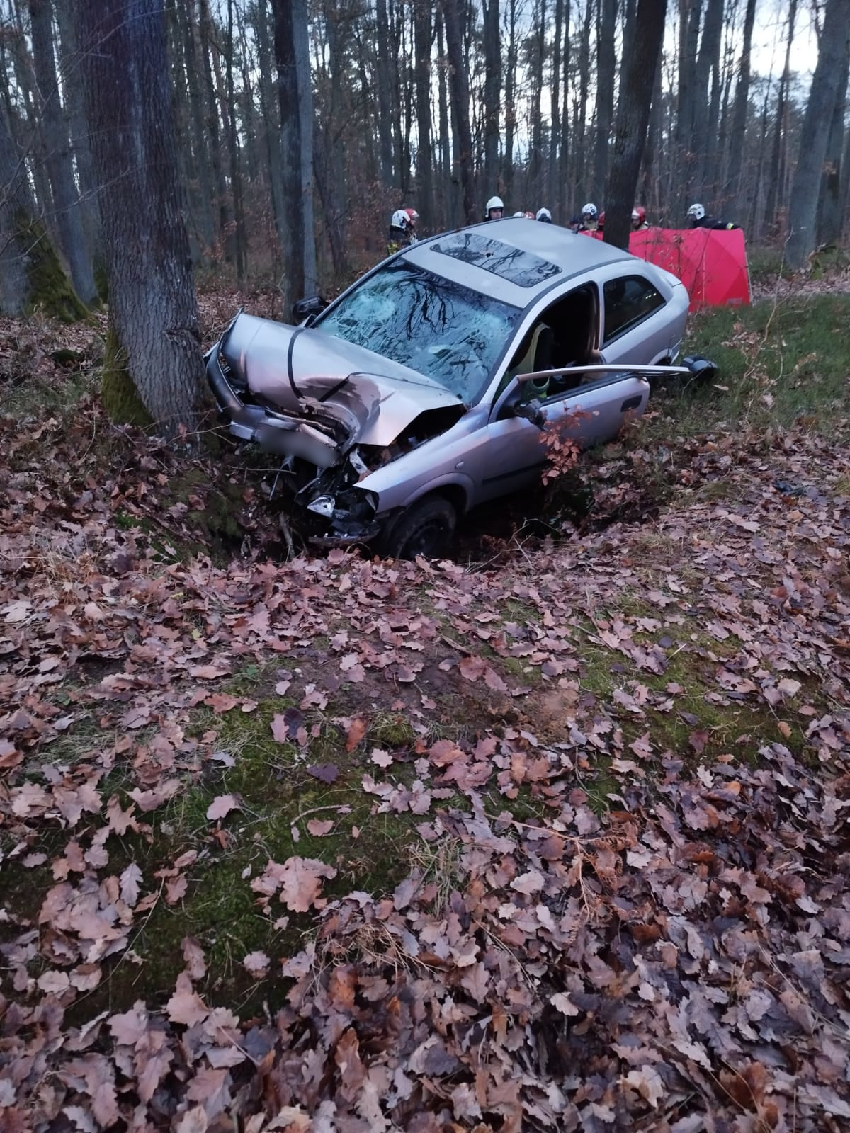 Po dotarciu na miejsce zdarzenia pierwszych zastępów stwierdzono, że samochód osobowy którym podróżowały 3 osoby ( 2 dzieci w wieku 7 i 13 lat oraz jedna osoba dorosła) wypadł z jezdni i uderzył w przydrożne drzewo. Kierujący pojazdem był nieprzytomny i pozostawał uwięziony w pojeździe. Na potrzeby działań zablokowano ruch w obu kierunkach.