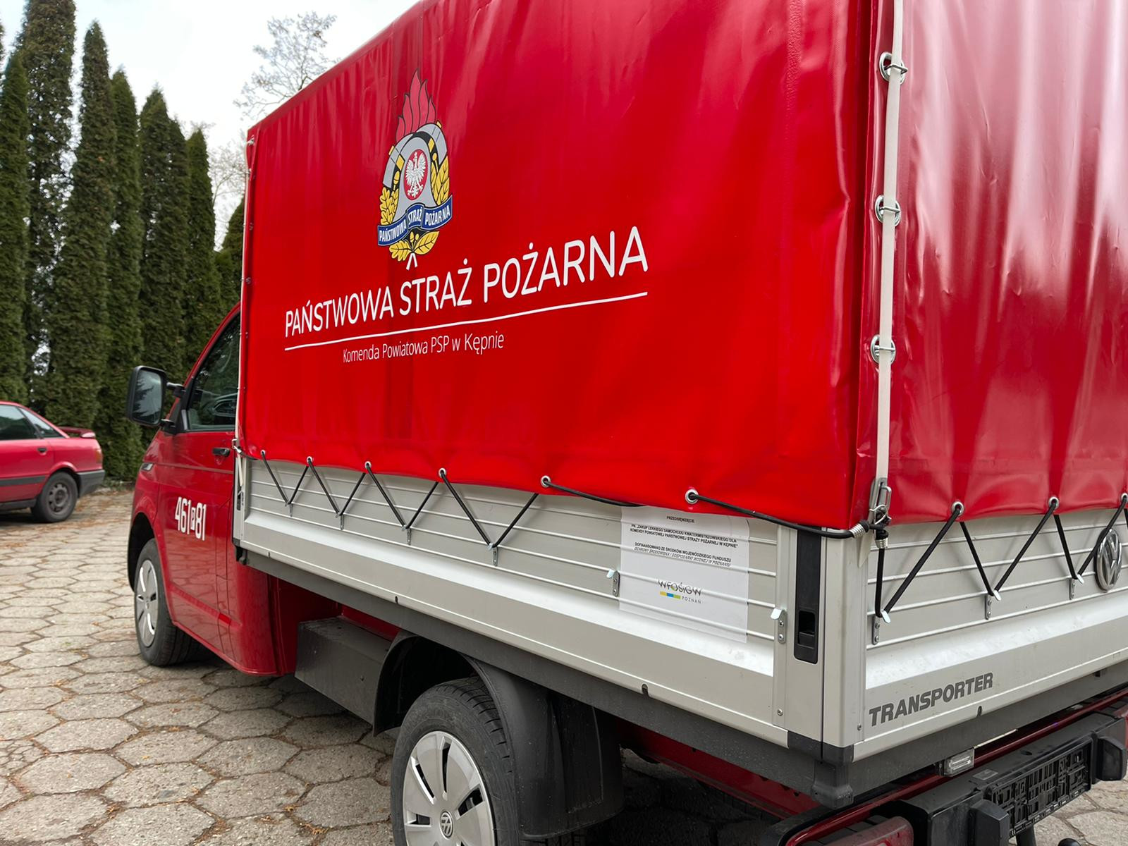 Komenda Powiatowa Państwowej Straży Pożarnej w Kępnie pozyskała nowy lekki samochód kwatermistrzowski w ramach przedsięwzięcia pn. "Zakup lekkiego samochodu kwatermistrzowskiego dla Komendy Powiatowej Państwowej Straży Pożarnej w Kępnie".