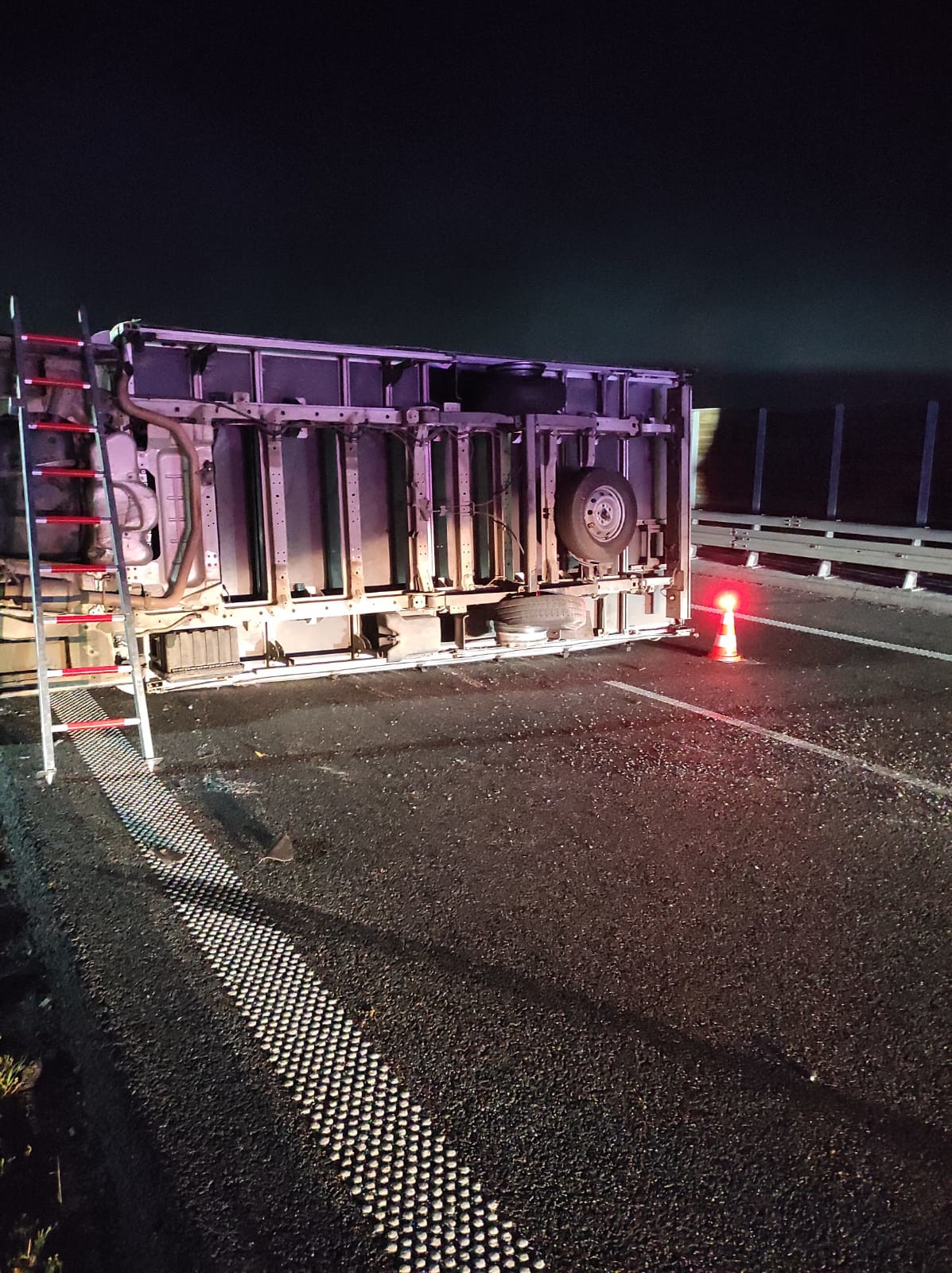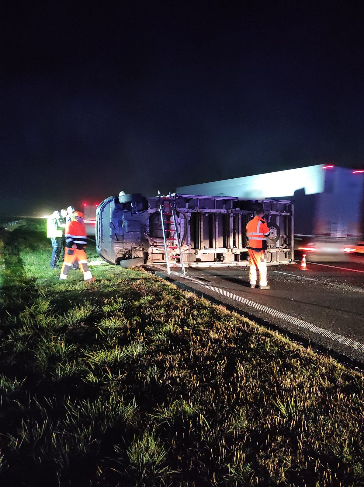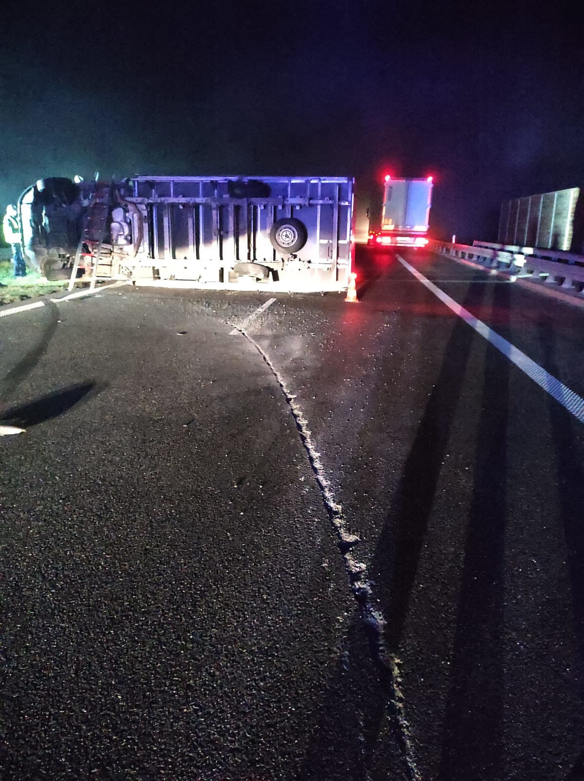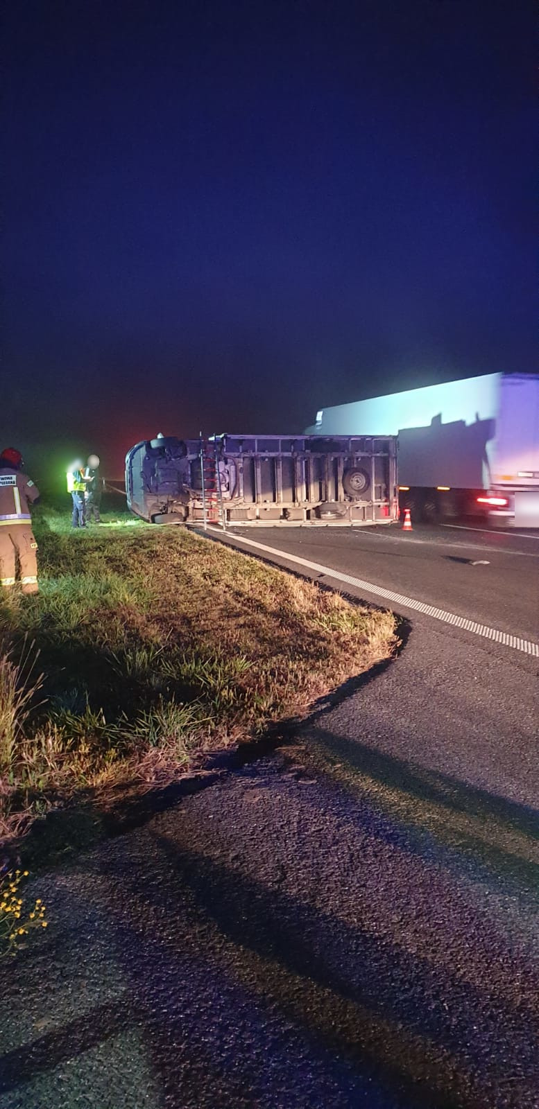Po dotarciu na miejsce zdarzenia stwierdzono, że pojazd typu bus przewrócił się na bok i blokuje dwa pasy ruchu na trasie, ruch pojazdów odbywał się pasem awaryjnym. Kierowca pojazdu znajdował się na zewnątrz i nie wymagał pomocy medycznej.