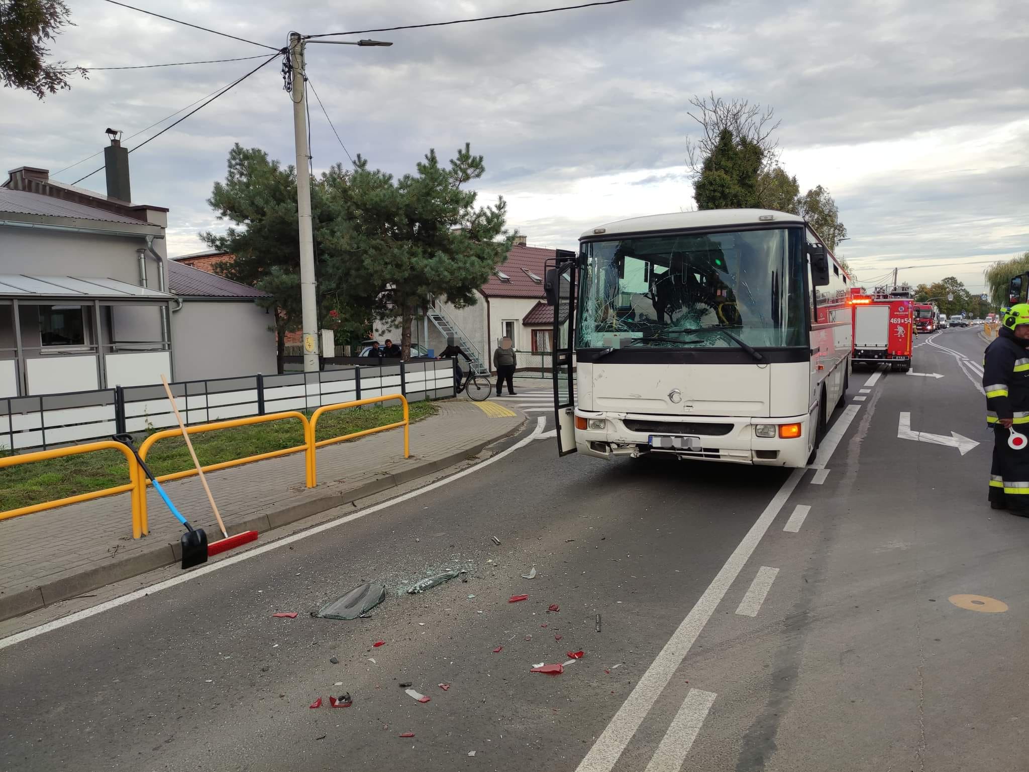 Po dotarciu na miejsce zdarzenia stwierdzono, że doszło do kolizji z udziałem trzech pojazdów ( autobus oraz dwa samochodu osobowe). W wyniku kolizji jedna osoba wymagała pomocy medycznej.