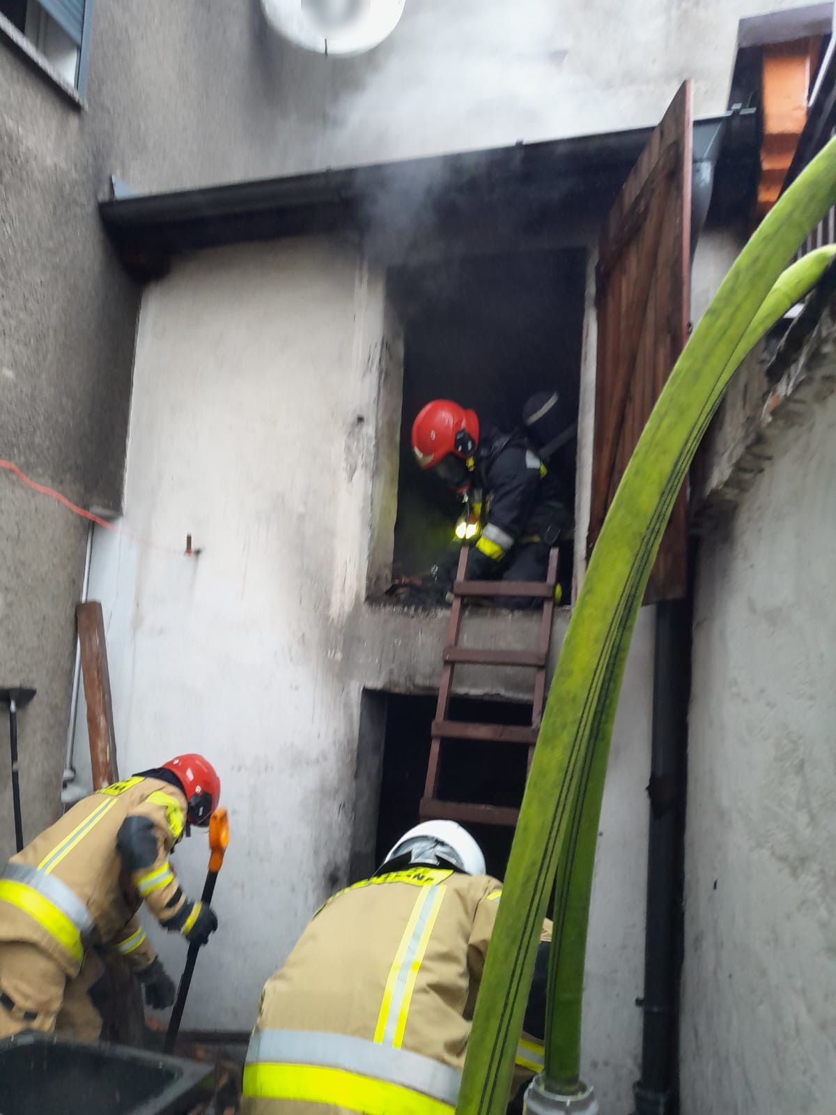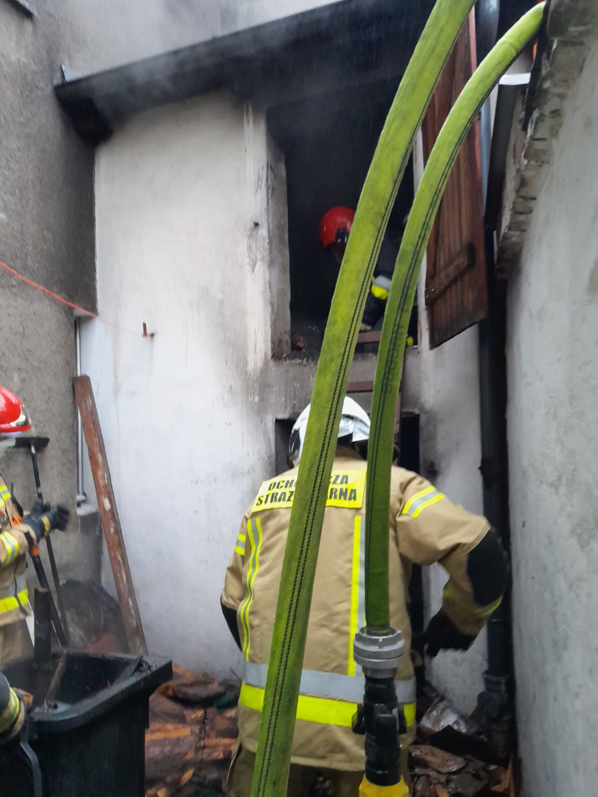 Działania strażaków po przybyciu na miejsc zdarzenia polegały na zabezpieczeniu miejsca zdarzenia oraz podaniu jednego prądu gaśniczego w natarciu oraz drugiego w obronie zabudowań sąsiadujących. Działania te doprowadził do lokalizacji a następnie ugaszenia pożaru. W celu potwierdzenia usunięcia zagrożenia obiekt sprawdzono za pomocą kamery termowizyjnej.