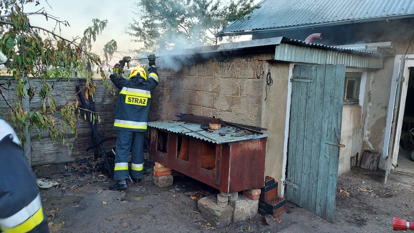 Po dotarciu na miejsce zdarzenia stwierdzono, że pali się konstrukcja dachu budynku gospodarczego.
