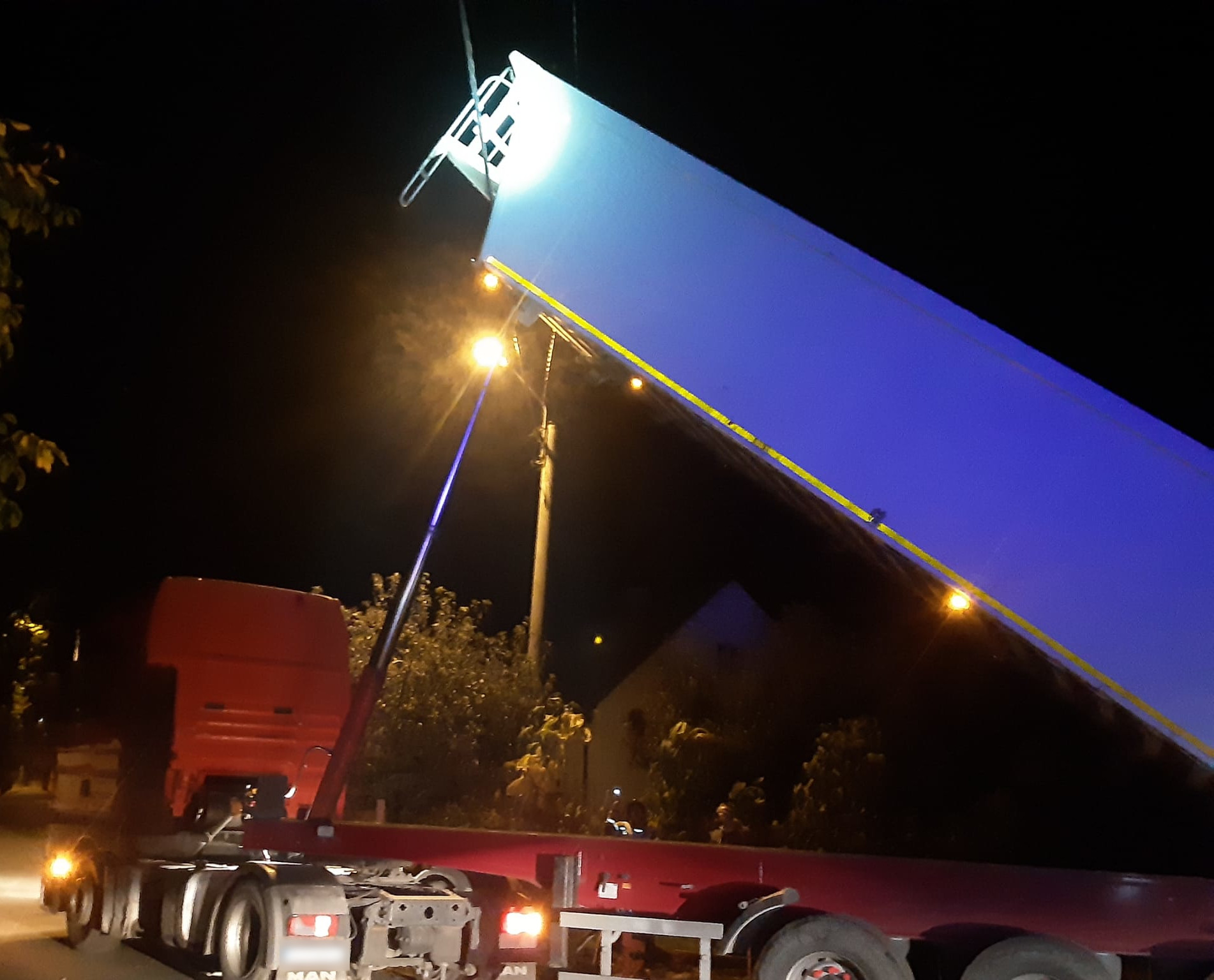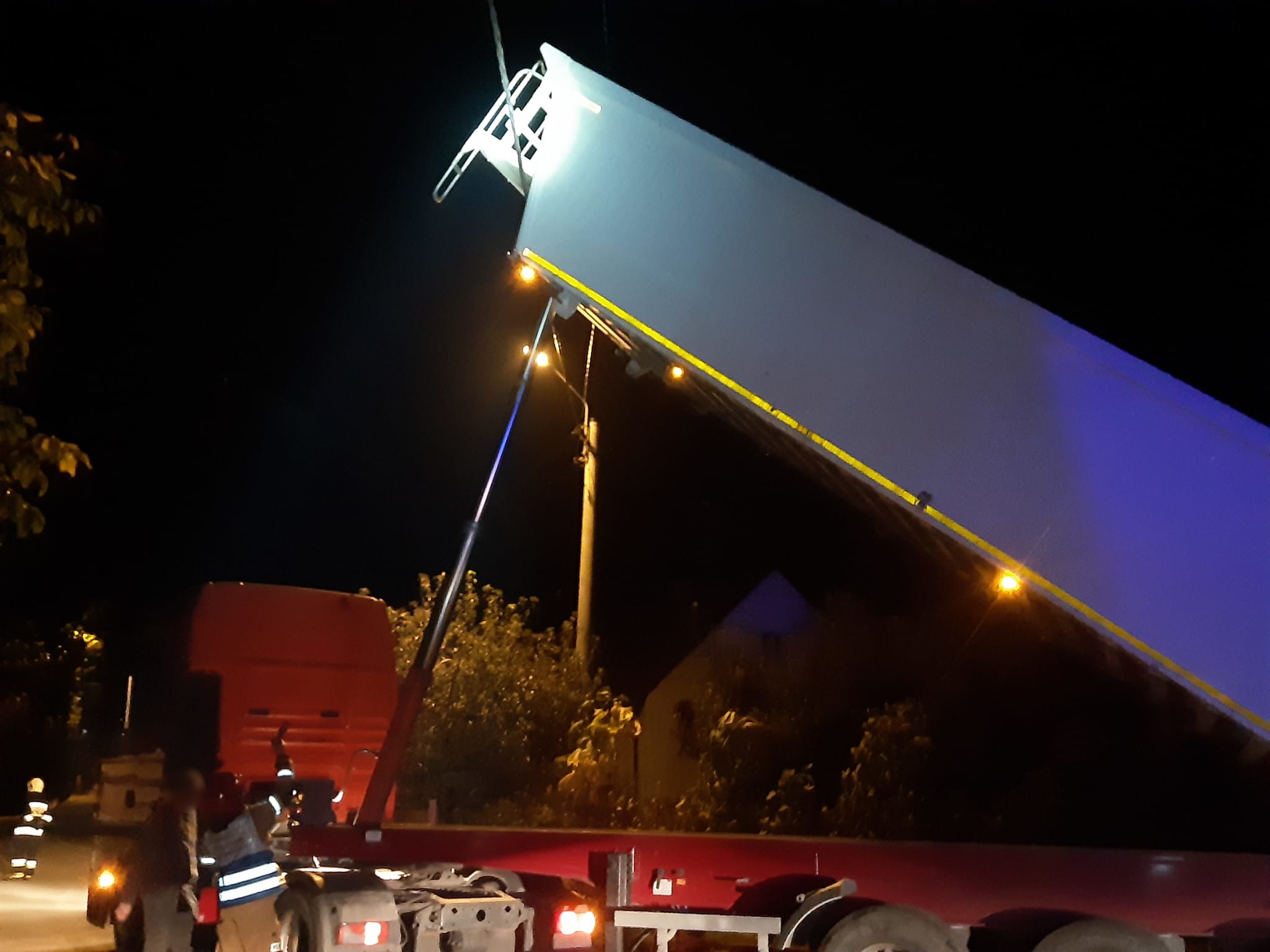 W piątek 08.10.2021 około godziny 20:17 dyżurny SKKP w Kępnie otrzymał zgłoszenie o zdarzeniu z udziałem ciągnika siodłowego, który podczas wysypywania ładunku zahaczył o linię energetyczną.