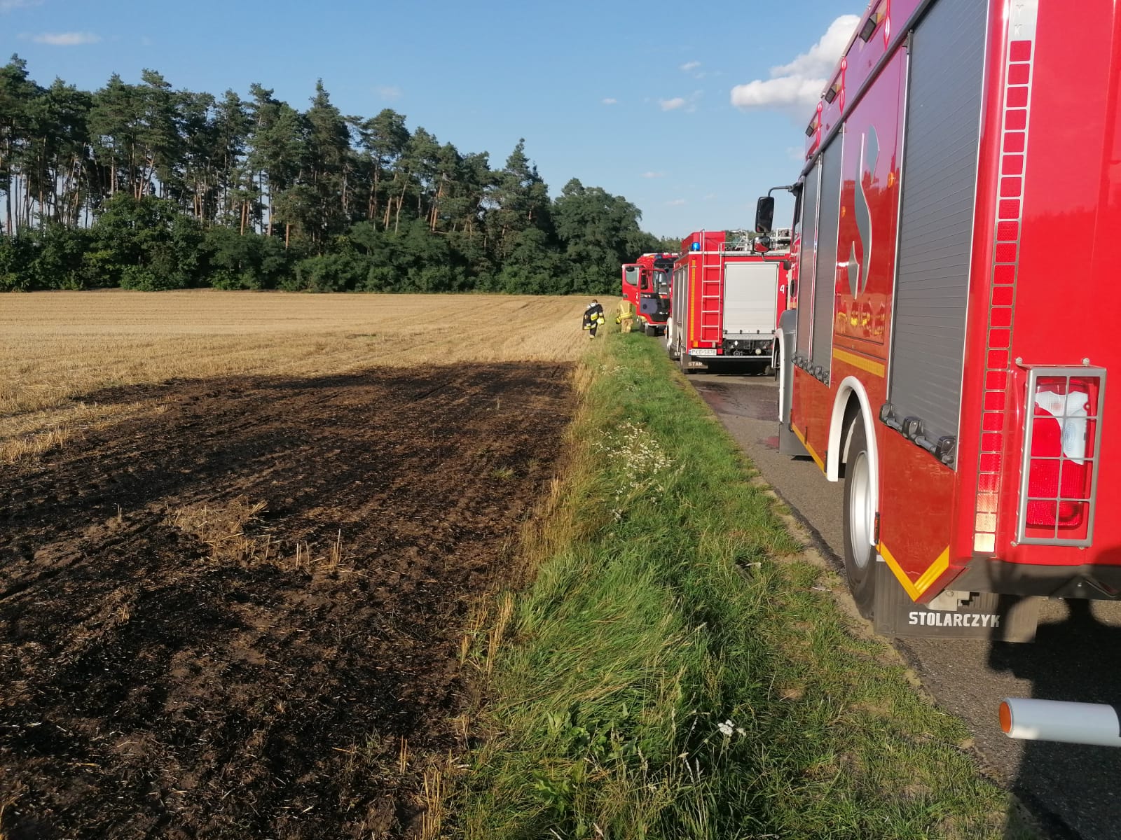 Po dotarciu na miejsce zdarzenia stwierdzono pożar ścierniska o powierszchni 100 m2.