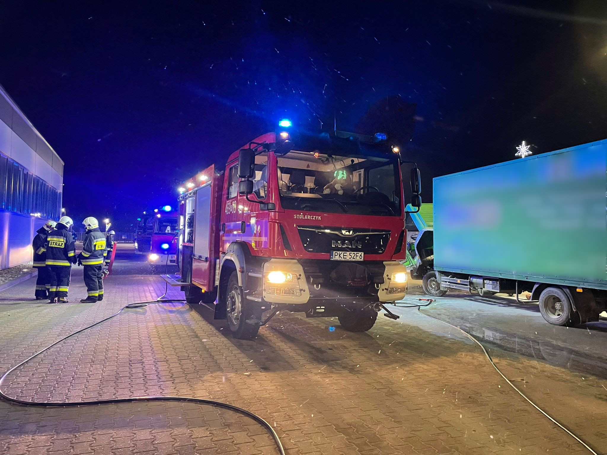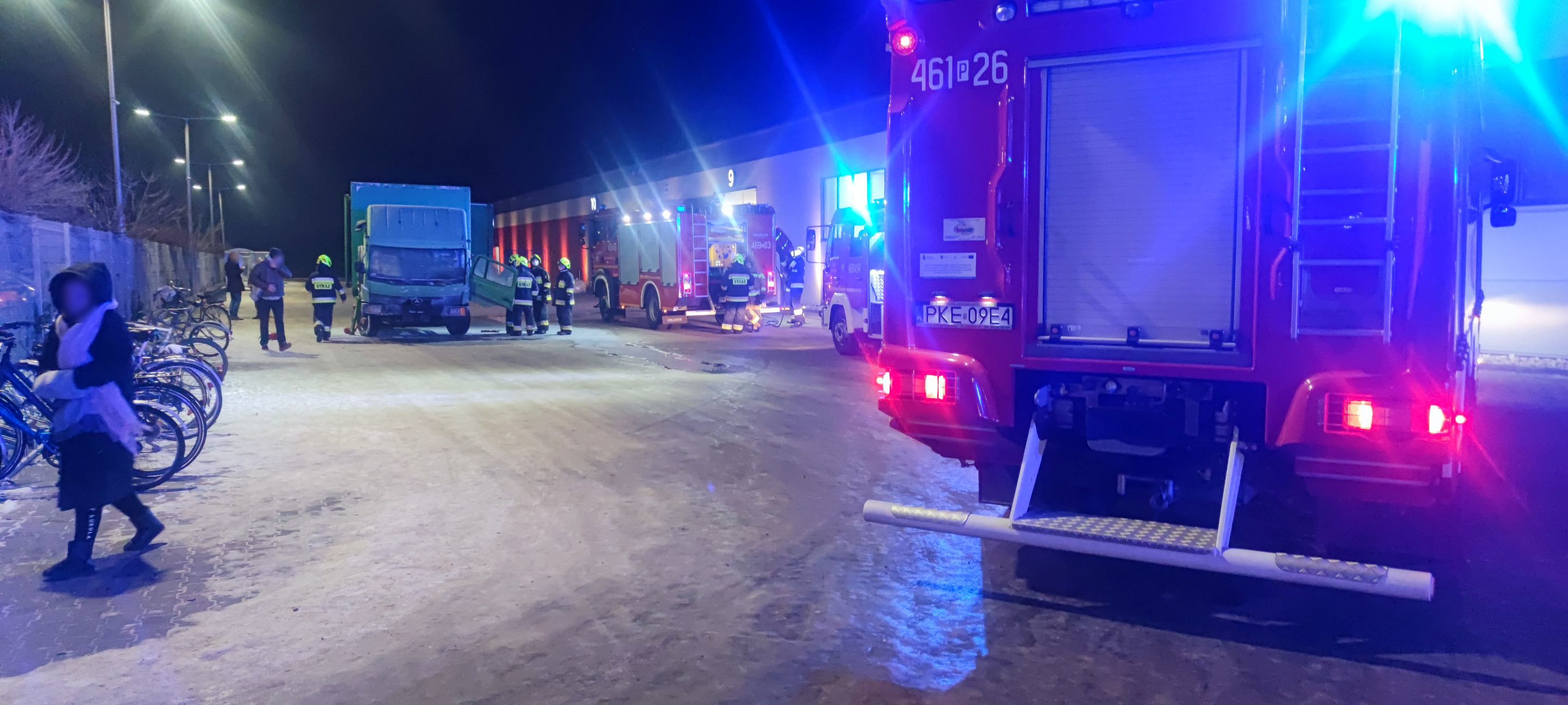 Po dotarciu na miejsce zdarzenia stwierdzono, że na terenie zakładu produkcyjnego doszło do pożaru instalacji elektrycznej samochodu ciężarowego. Pracownicy zakładu przy pomocy podręcznego sprzętu gaśniczego przystąpili do gaszenia pożaru, przed przybyciem służb. Jedna osoba biorąca udział w zdarzeniu uskarżała się na duszności.