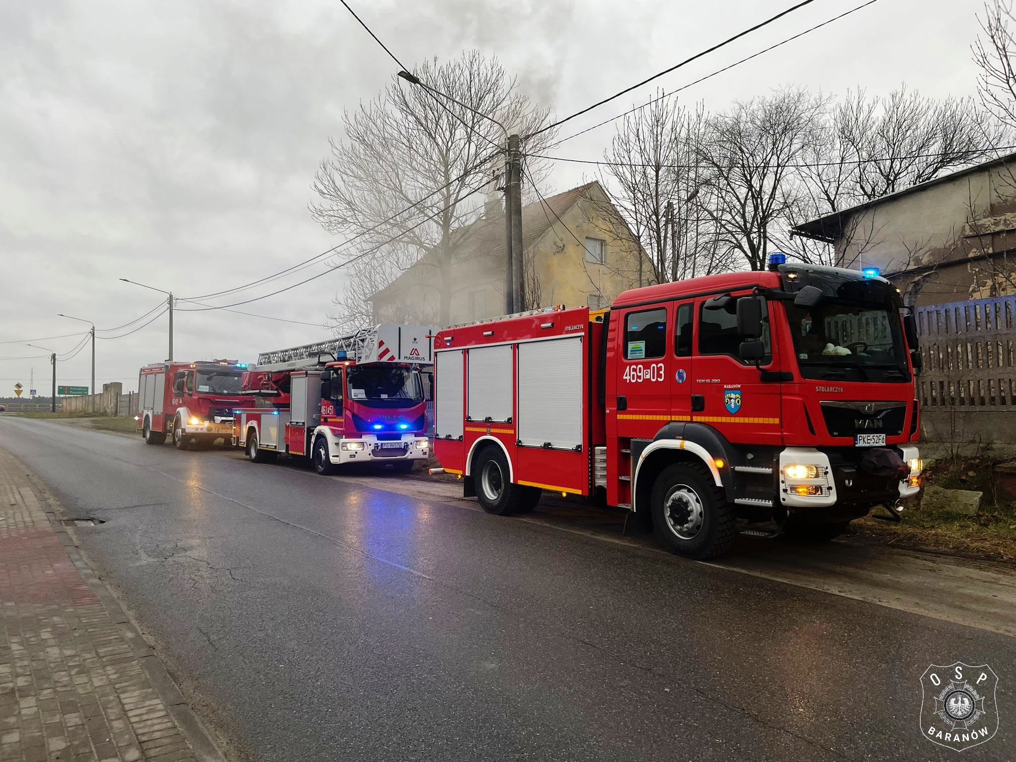 Po dotarciu na miejsce zdarzenia pierwszych zastępów potwierdzono, że doszło do zapalenia się nagromadzonej sadzy w przewodzie kominowych. Nie stwierdzono osób wymagających pomocy medycznej.