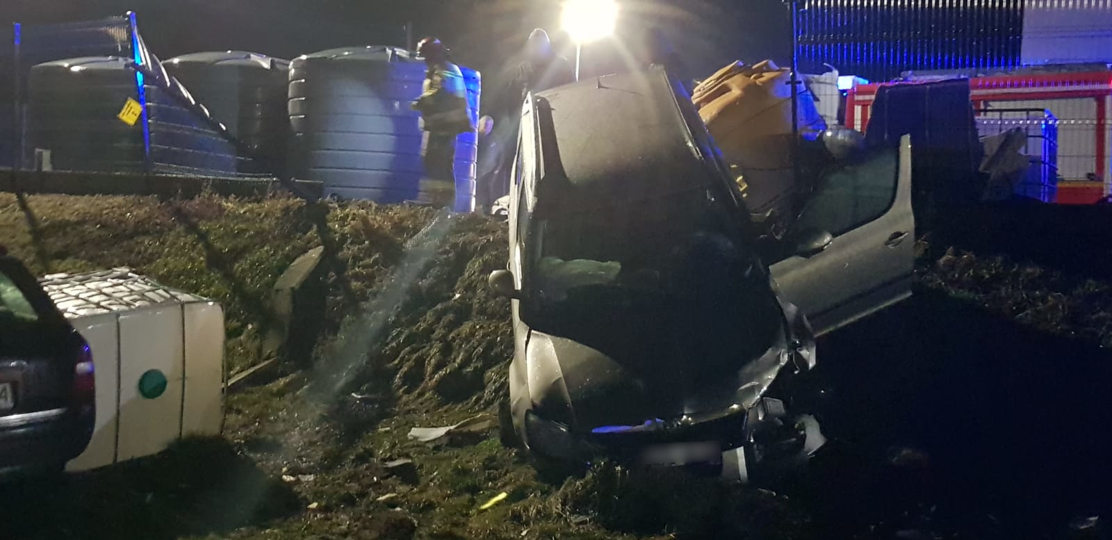 14.03.2021 - SAMOCHÓD OSOBOWY WJECHAŁ W ZBIORNIK