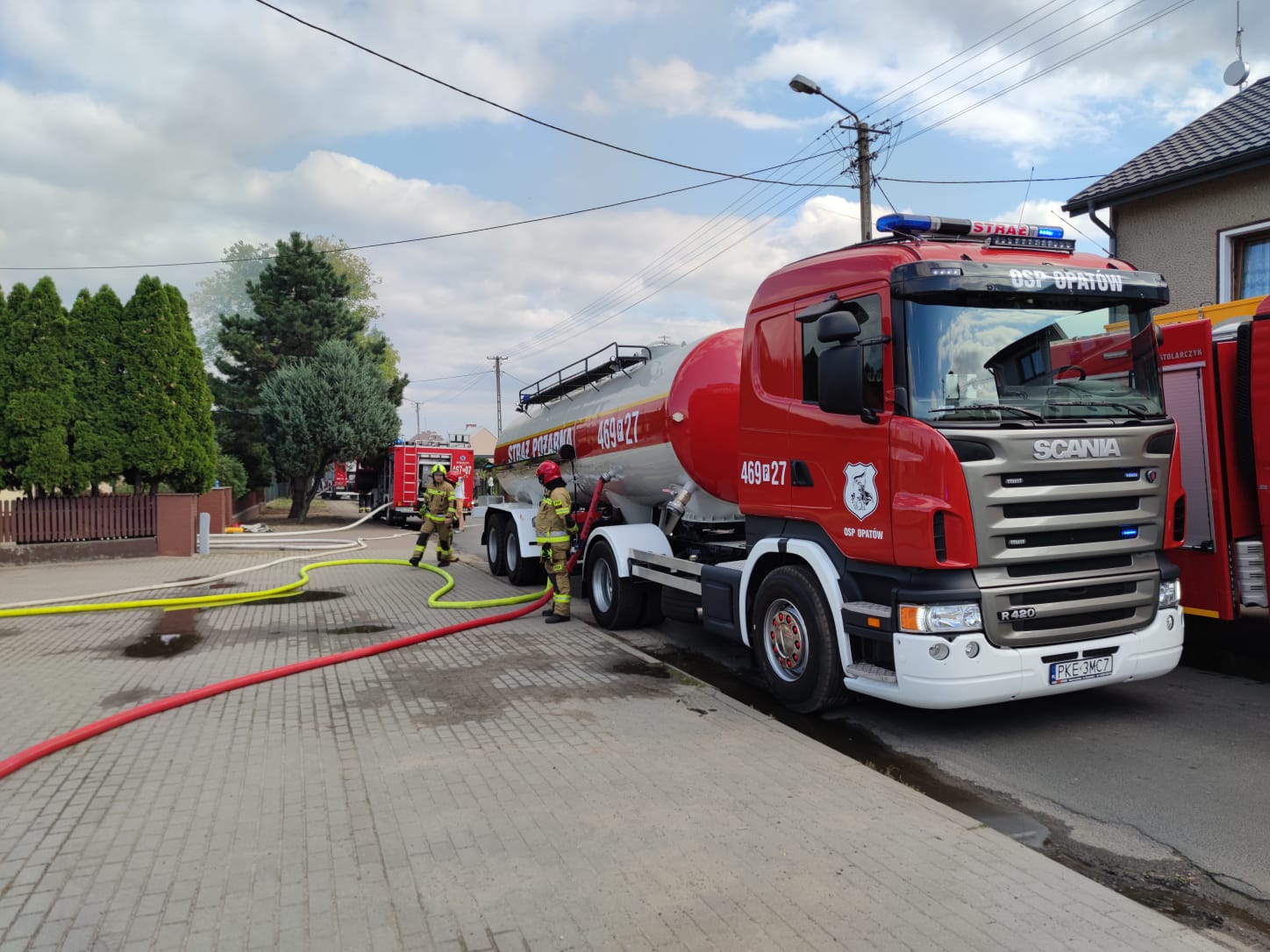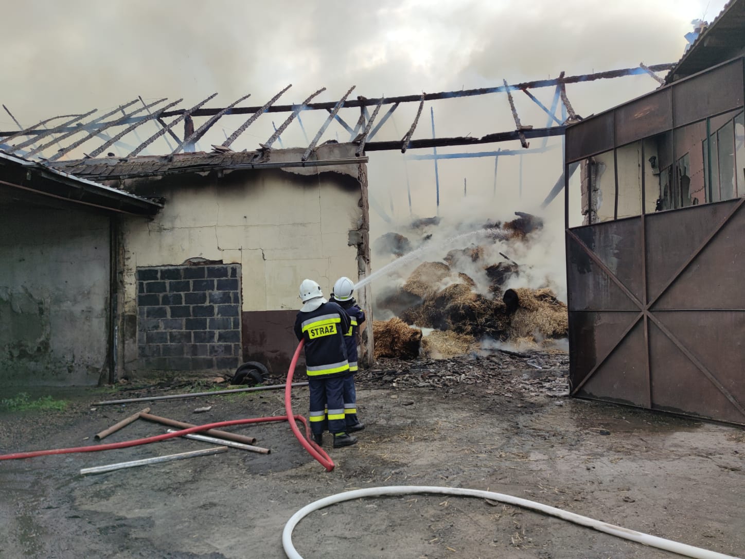 Po dotarciu na miejsce zdarzenia pierwszych zastępów, stwierdzono, że pożarem objęty jest budynek w którym magazynowane są płody rolne. Pożarem zagrożone były sąsiednie budynki w zwartej zabudowie.