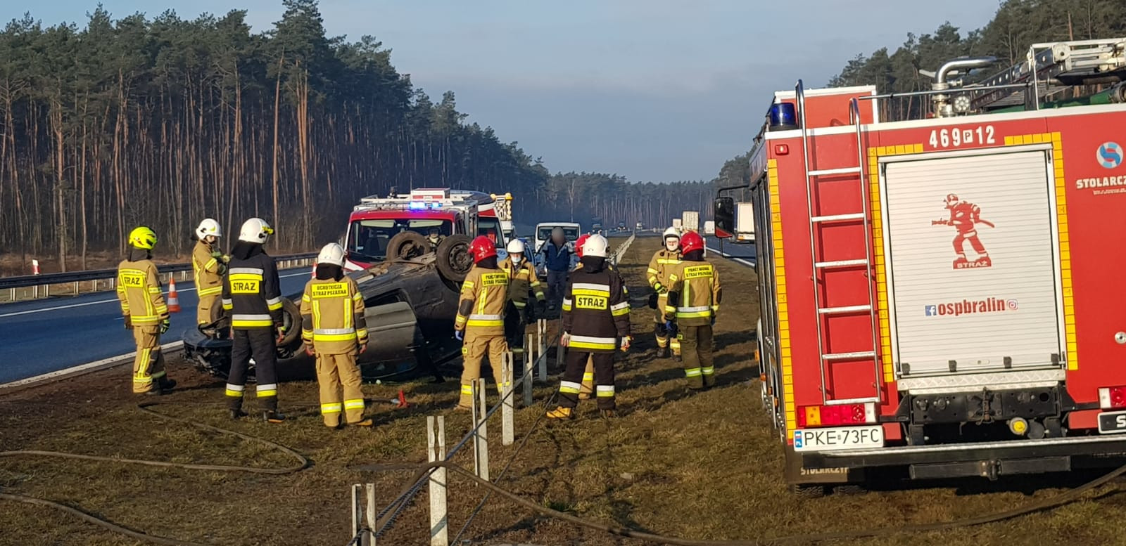 W poniedziałek 15.03.2021 około godziny 06:53 Dyżurny SKKP w Kępnie otrzymał zgłoszenie o zdarzeniu drogowym na 88 km trasy S8 w kierunku na Warszawę (Gola). Do zdarzenia zadysponowano zastępy z OSP Perzów, OSP Bralin oraz JRG Kępno.
