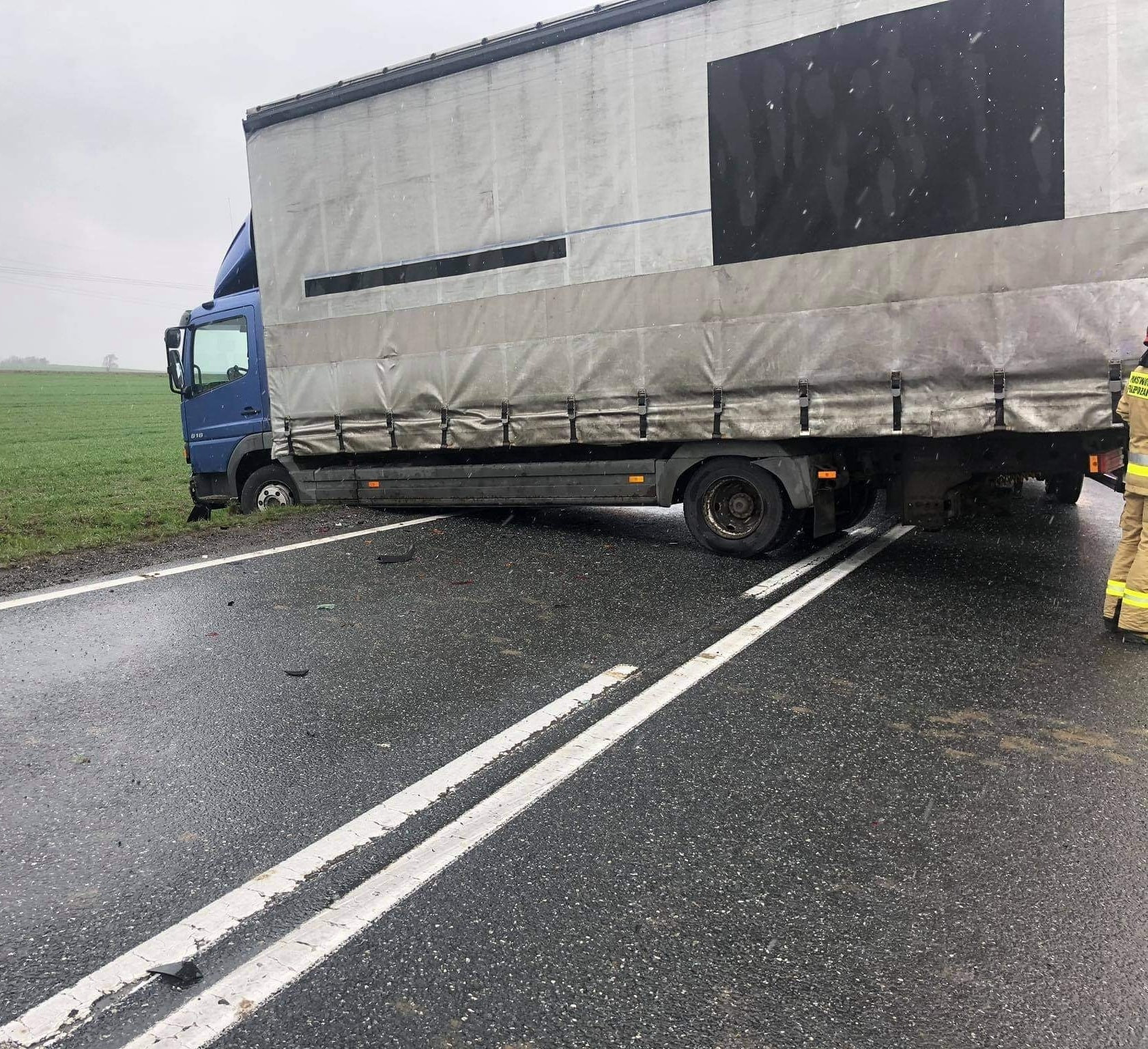 15.04.2021 - KOLIZJA SAMOCHODU CIĘŻAROWEGO Z OSOBOWYM