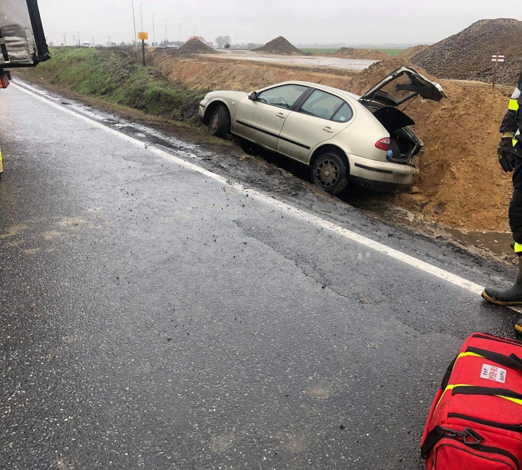 Po dotarciu na miejsce zdarzenia stwierdzono, że samochód ciężarowy uderzył w tył samochodu osobowego. Samochód osobowy znajdował się poza jezdnią w przydrożnym rowie. Na potrzeby działań zablokowano ruch na drodze w obu kierunkach.