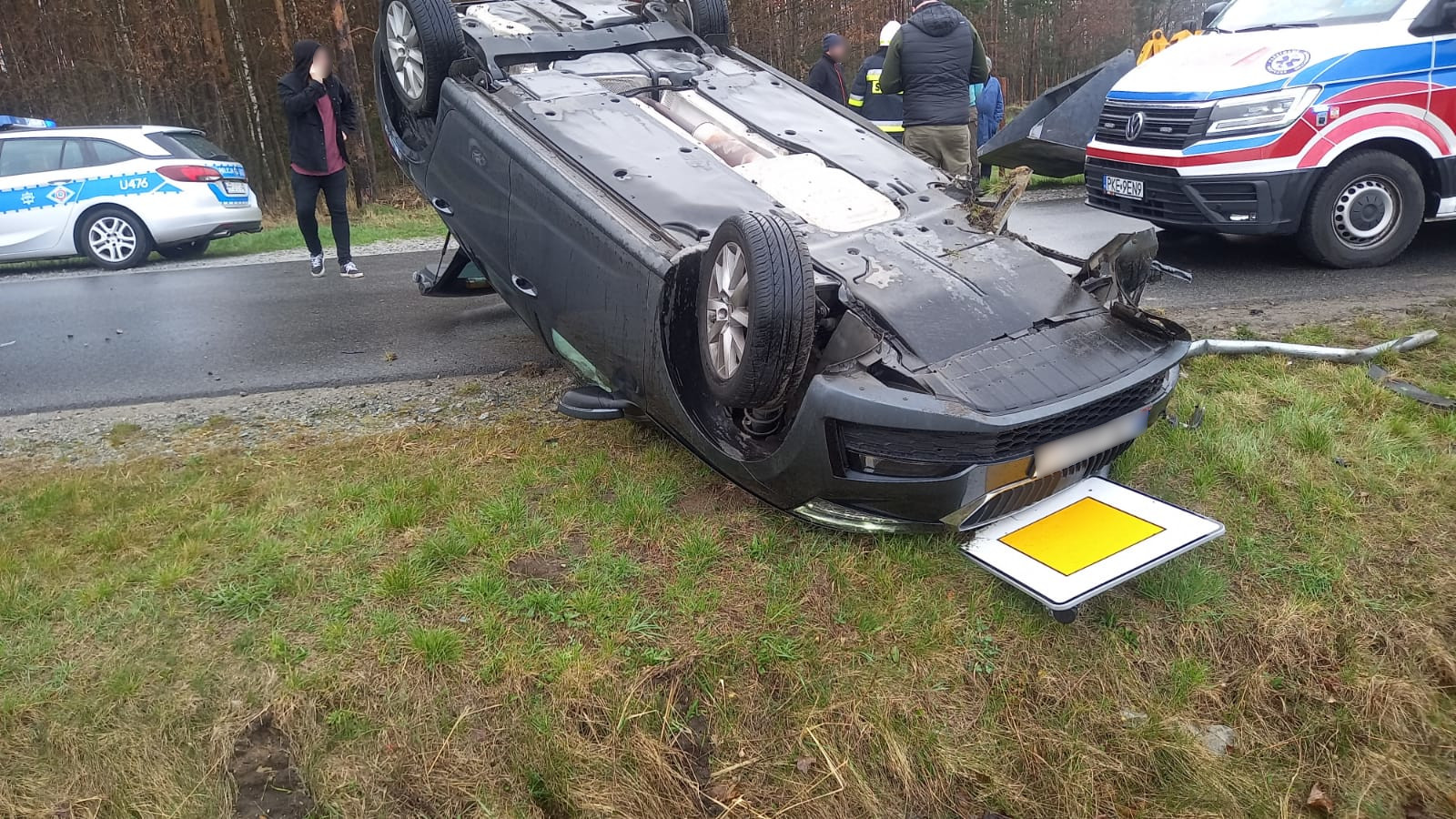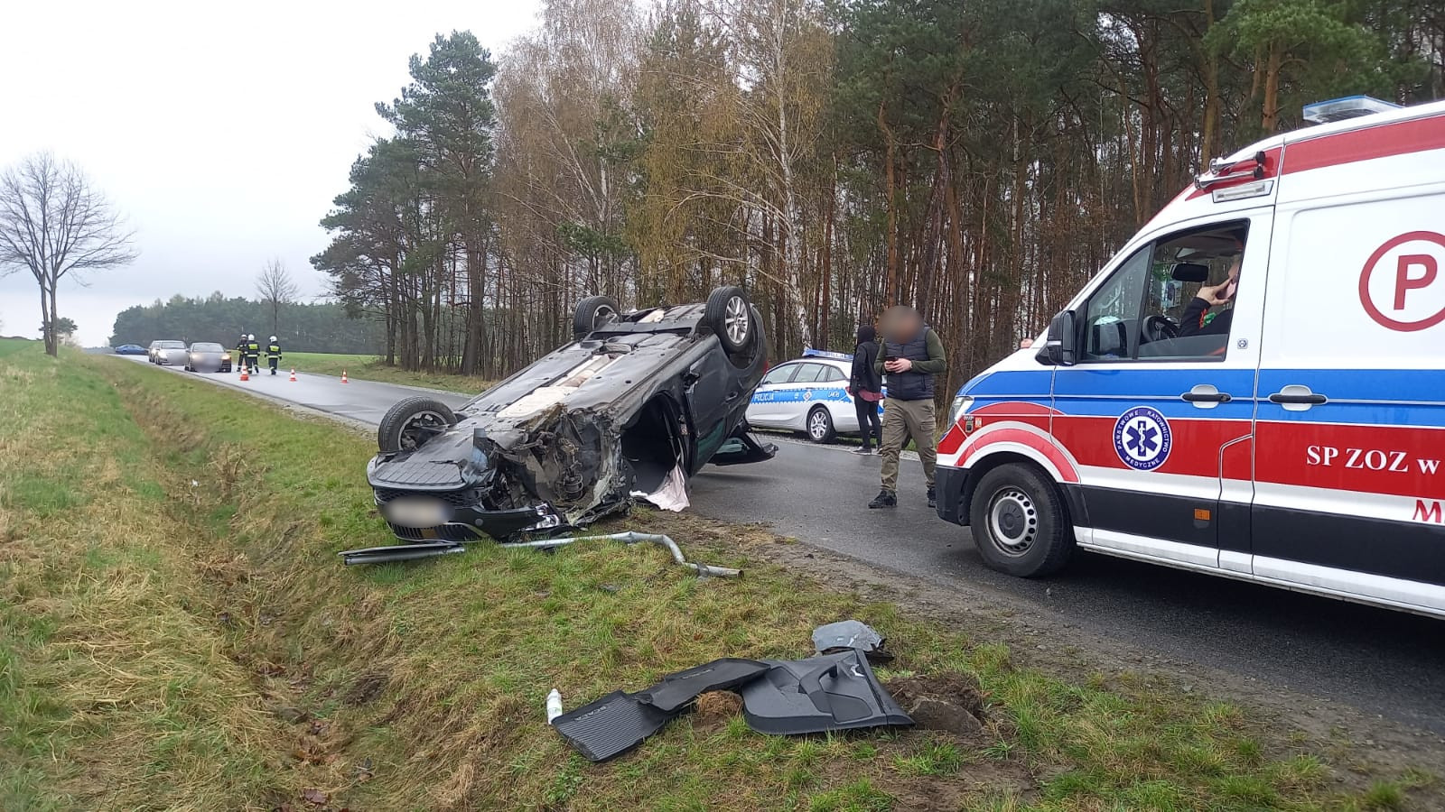 Po dotarciu na miejsce zdarzenia stwierdzono, że doszło do dachowania samochodu osobowego, którym podróżowały 4 osoby 2 z nich wymagały pomocy medycznej i były pod opieką przybyłego na miejsc ZRM.