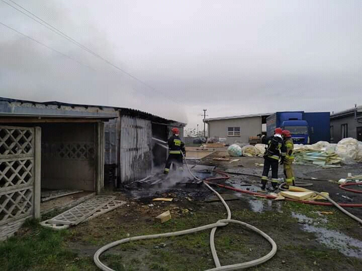 Po przybyciu na miejsce pierwszych zastępów i wykonaniu rozpoznania stwierdzono rozwinięty pożar magazynu pianki tapicerskiej o wymiarach 9x8 m.