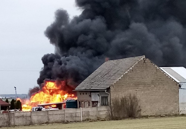 16.11.2020 - Pożar magazynu pianki tapicerskiej w miejscowości Joanka