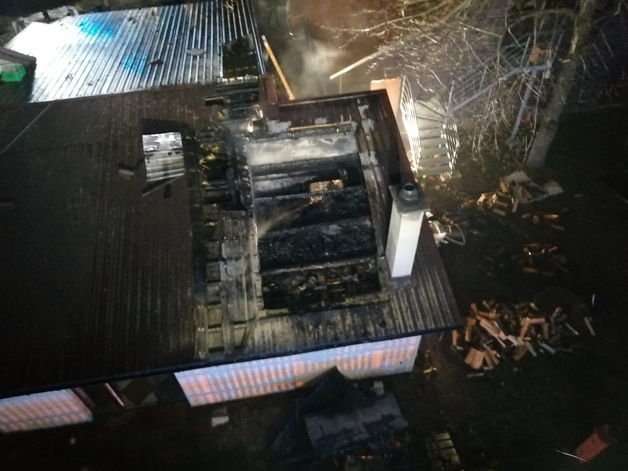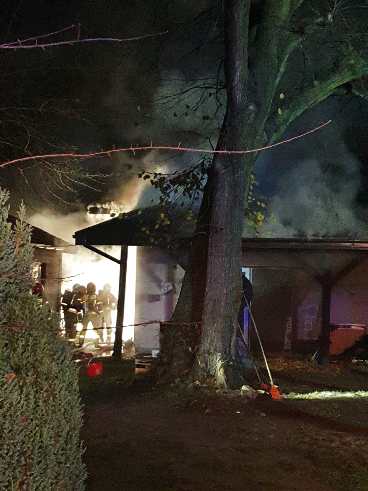 Działania strażaków polegały na zabezpieczeniu i oświetleniu miejsca zdarzenia, następnie ewakuowano trzy osoby przebywające w budynku i podano jeden prąd wody w natarciu na pożar. Po sprawieniu drabiny mechanicznej podano kolejny prąd wody na płonącą konstrukcję dachu pomieszczenia kotłowni. Działania te doprowadziły do ugaszenia pożaru. W celu dogaszenia konstrukcji dachu rozebrano pokrycie w postaci blachy. Cały budynek przewietrzono i sprawdzono przy pomocy kamery termowizyjnej oraz czujnika wielogazowego, nie stwierdzając zagrożenia.