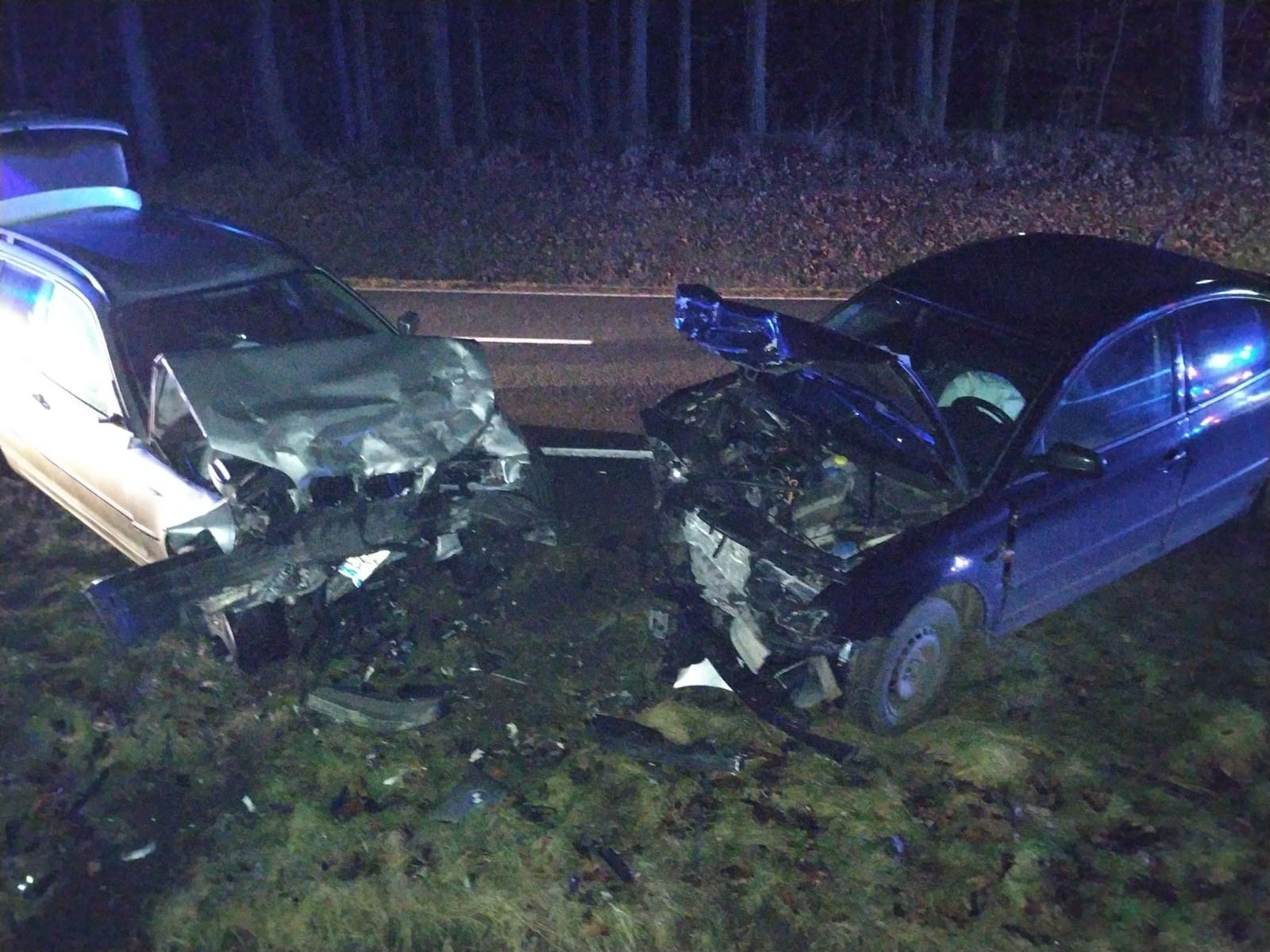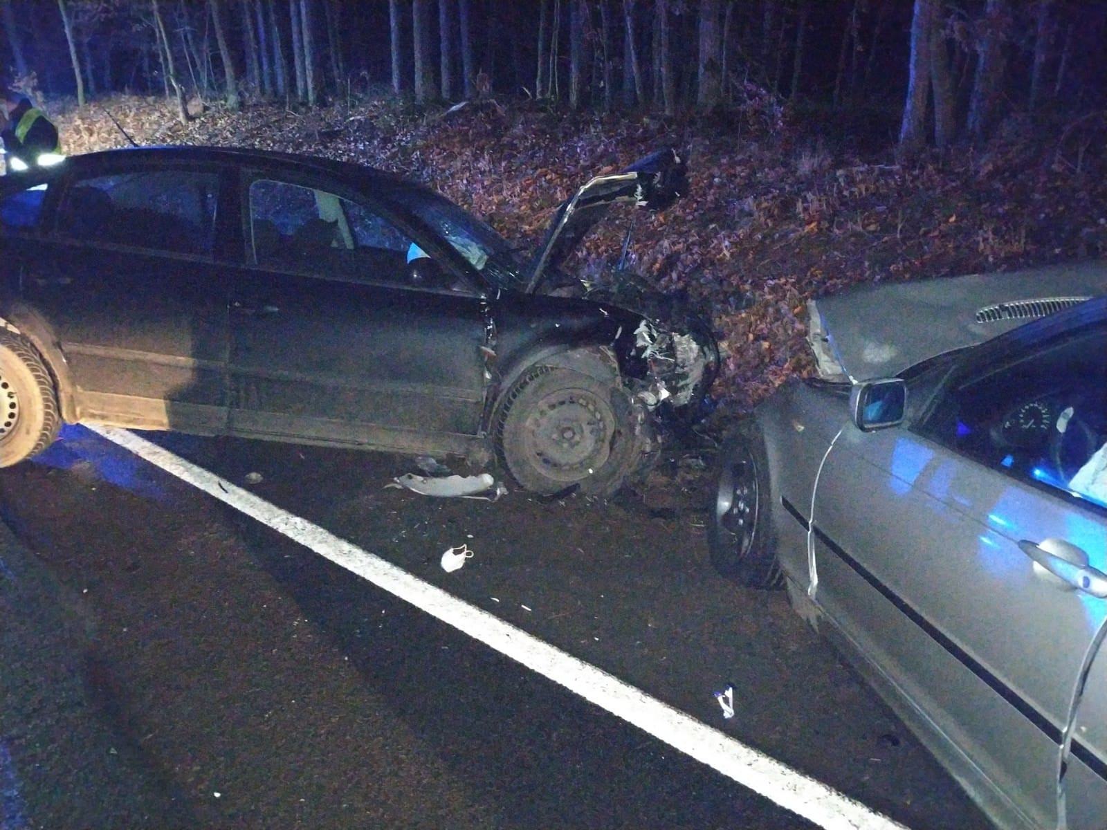 Po dotarciu na miejsce zdarzenia stwierdzono, że czołowemu zderzeniu uległy dwa samochody osobowe. Wszyscy uczestnicy zdarzenia znajdowali się poza pojazdami i nie wymagali pomocy medycznej. Na potrzeby działań zablokowano ruch na drodze.