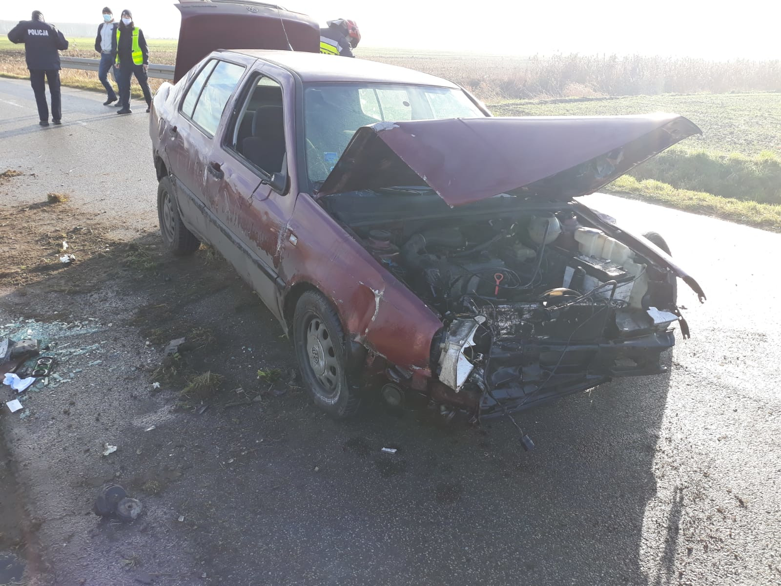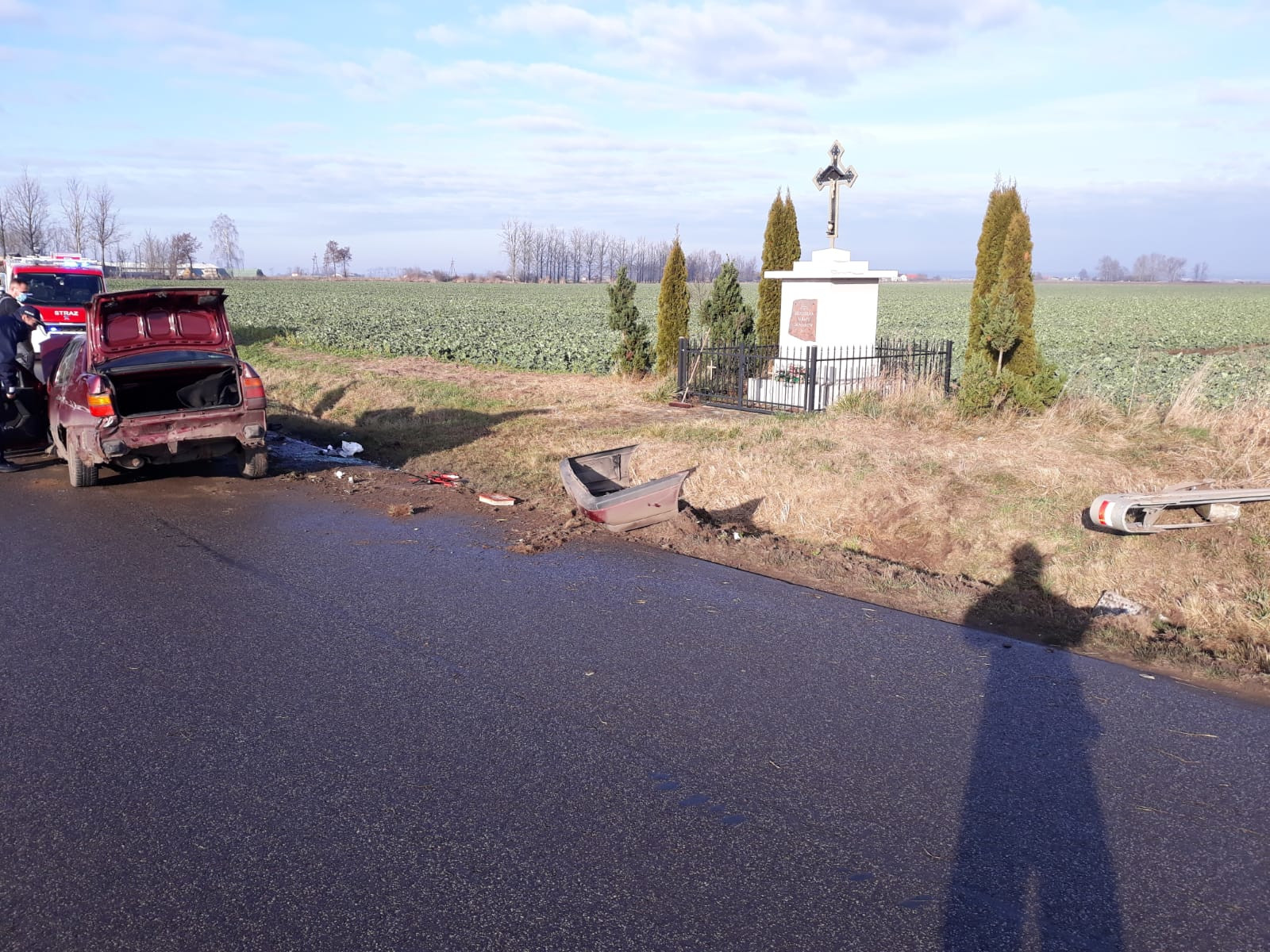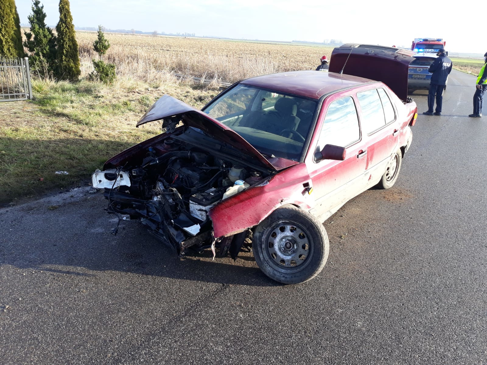 W piątek 18.12.2020 około godziny 10:45 Dyżurny SKKP w Kępnie otrzymał zgłoszenie o dachowaniu samochodu osobowego w miejscowości Domasłów Szczęście. Do zdarzenia zadysponowano zastępy z OSP Perzów oraz JRG Kepno.