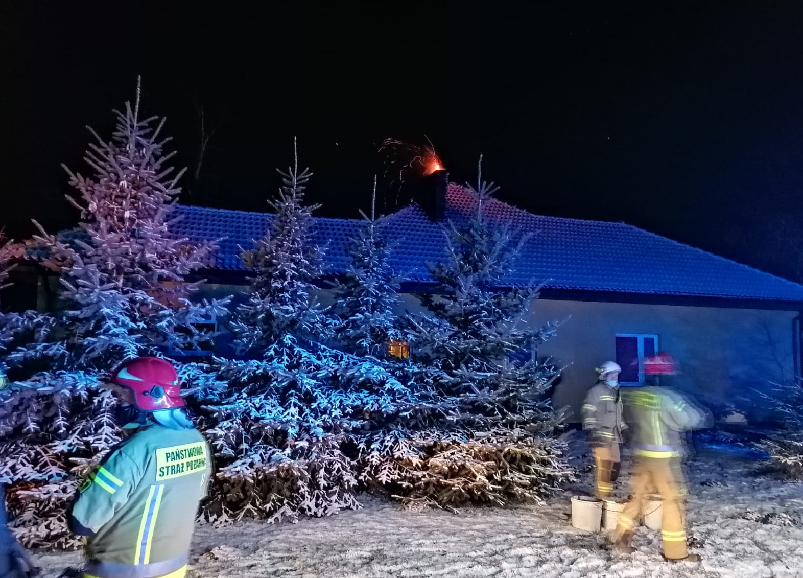 Po przybyciu na miejsce zdarzenia potwierdzono, że doszło do zapalenia się sadzy w przewodzie kominowym budynku jednorodzinnego.