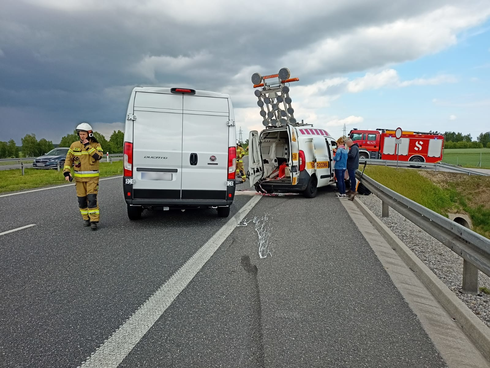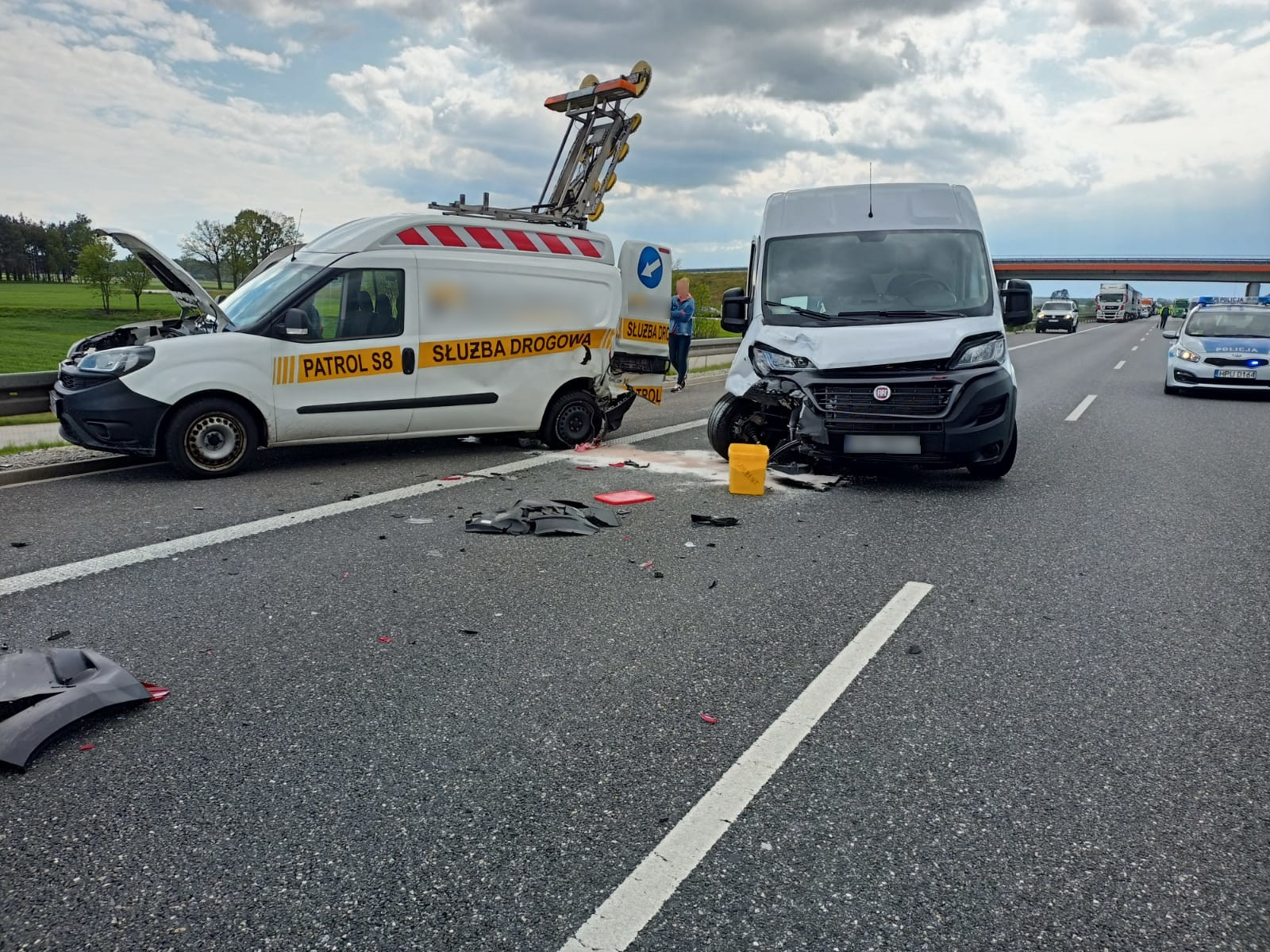 Po dotarciu na miejsce stwierdzono, że w zdarzeniu brały udział 2 pojazdy (samochód dostawczy oraz pojazd patrolu S8). Przed przybyciem JOP pracownik patrolu S8 został zabrany przez zespół PRM do szpitala. Na potrzeby działań zablokowano oba pasy ruchu w kierunku Warszawy.