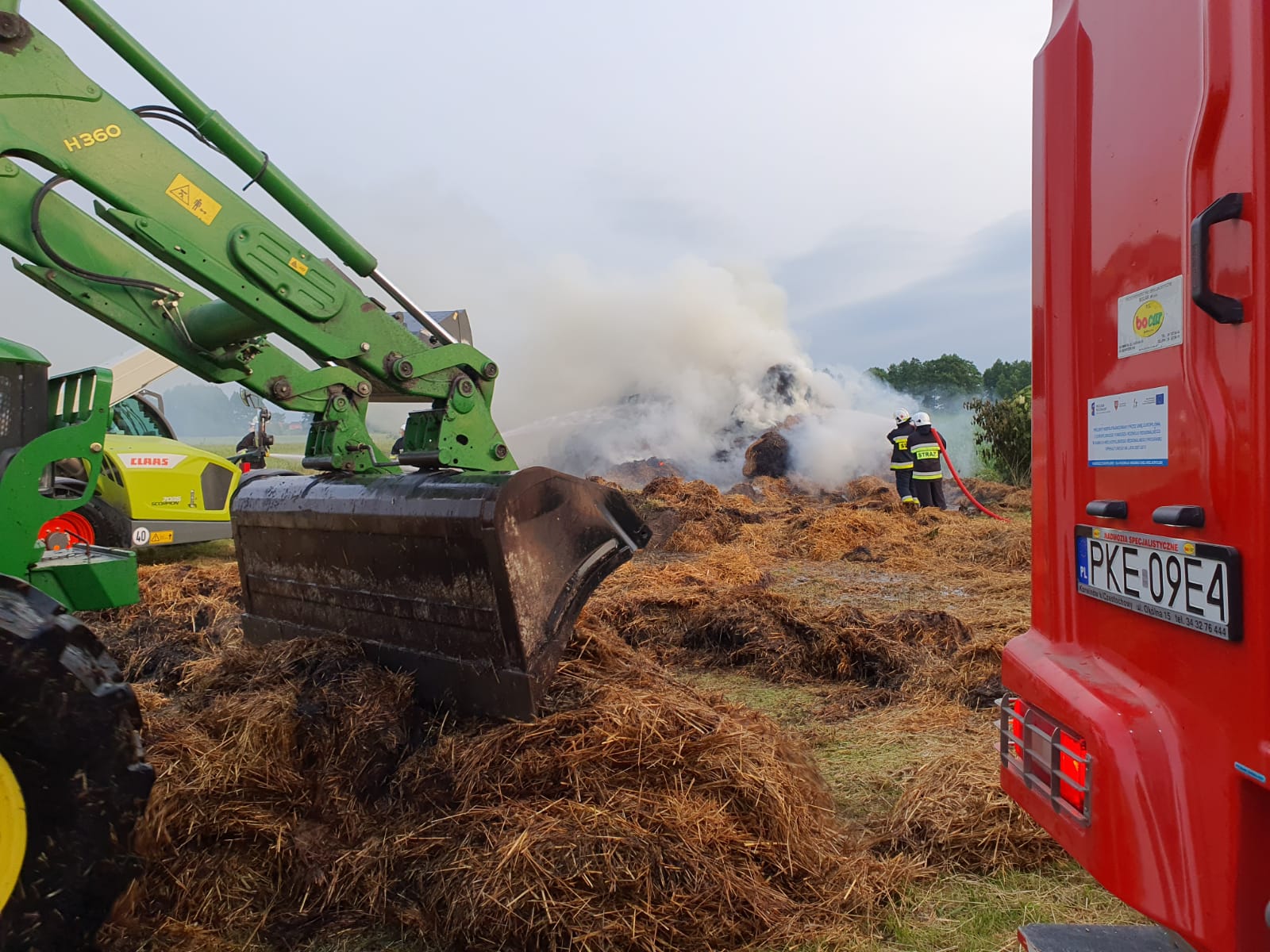 Działania straży polegały na zabezpieczeniu miejsca zdarzenia oraz podaniu 4 prądy wody w natarciu na pożar co doprowadziło do jego lokalizacji. Następnie przy wykorzystaniu maszyn rolniczych rozgarnięto stóg i dokładnie przelano wodą. Ze względu na charakter i rozmiar pożaru działania trwały 6 godzin.