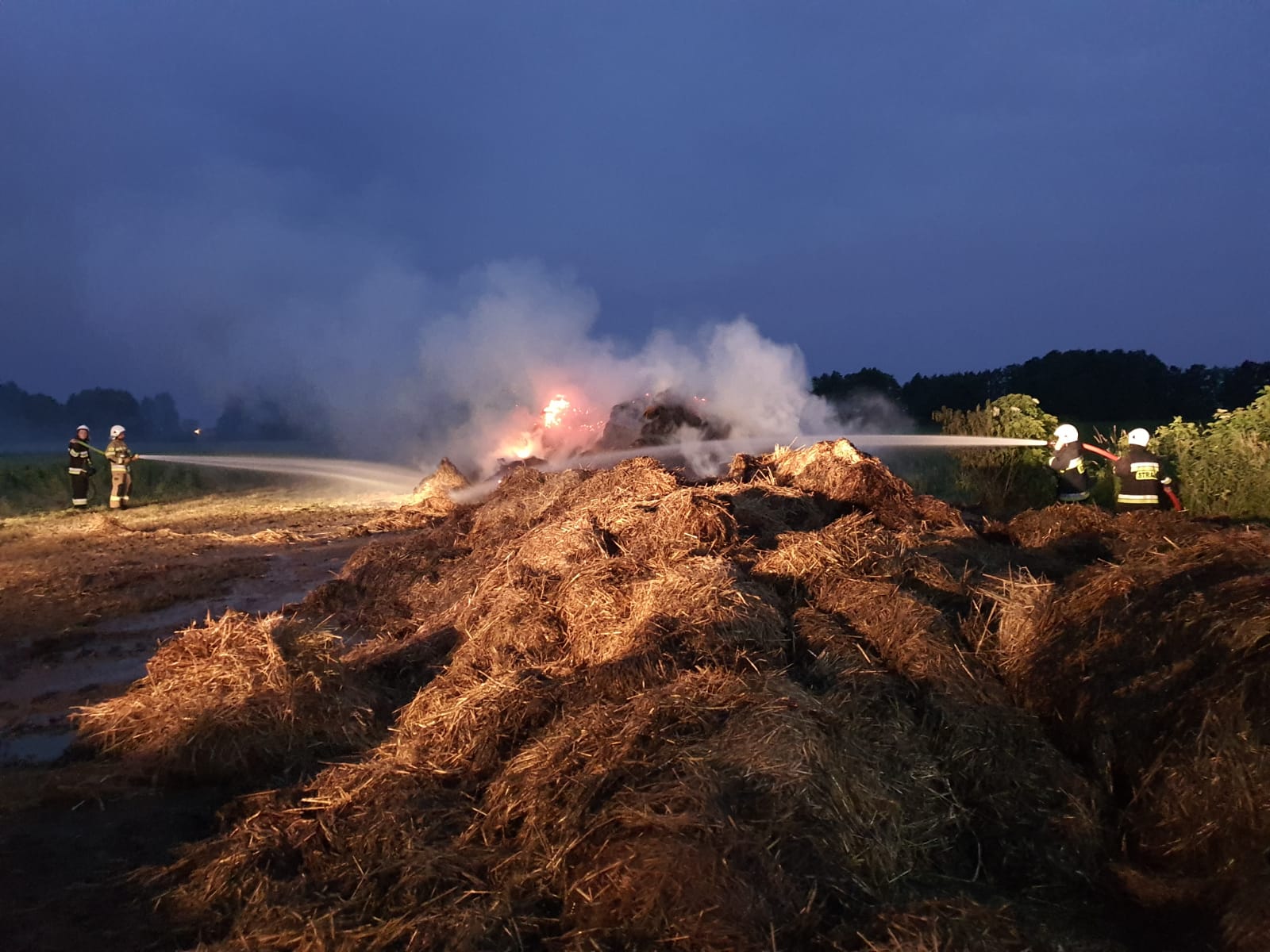 Po dotarciu na miejsce zdarzenia stwierdzono pożar stogu siana o wymiarach 15 m x 6 m x 4 m.