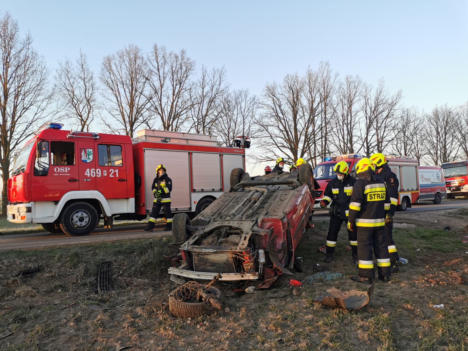 Po dotarciu na miejsce zdarzenia stwierdzono, że samochód osobowy uderzył w opłotowanie posesji i leży na dachu. Kierowca pojazdu opuścił go o własnych siłach, przed przybyciem służb.