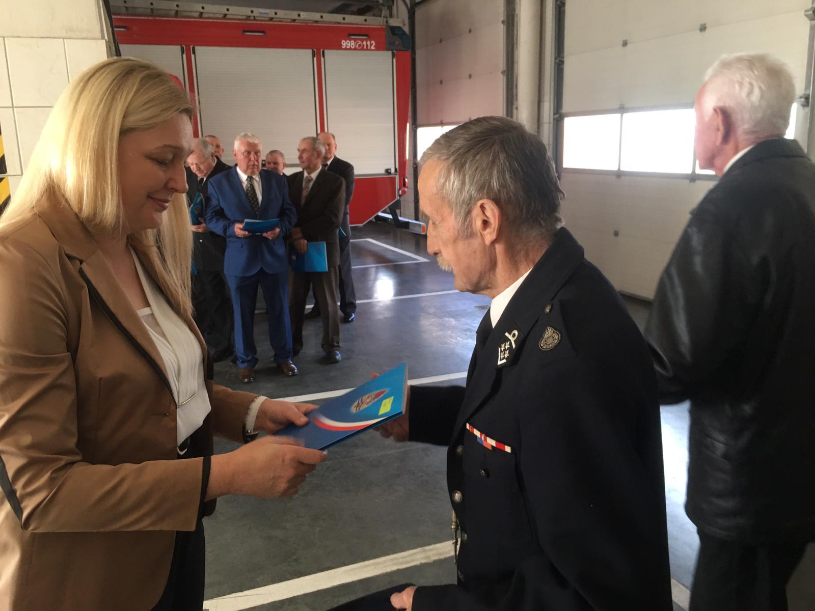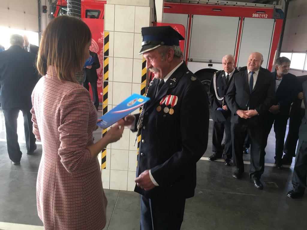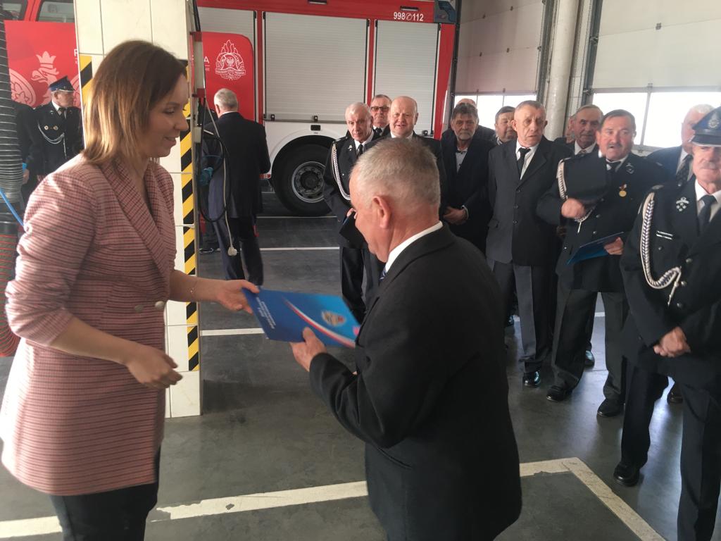 Wręczenia decyzji Komendanta Powiatowego Państwowej Straży Pożarnejw Kępnie przyznających świadczenia ratownicze druhom z terenu poiwatu kępińskiego dokonały Pani Anna Lis przedstawiciel Poseł do Europarlamentu Andżeliki Możczanowskiej oraz Pani Paulina Parzybok przedstawiciel Poseł Katarzyny Sójki.
