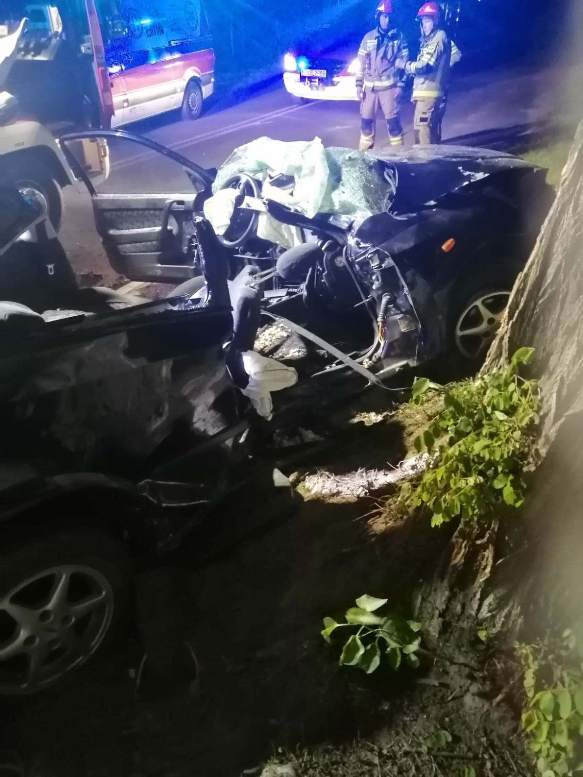 Po dotarciu na miejsce zdarzenia stwierdzono, że samochód osobowy uderzył w przydrożne drzewo. W samochodzie znajdowało się było trzech mężczyzn.