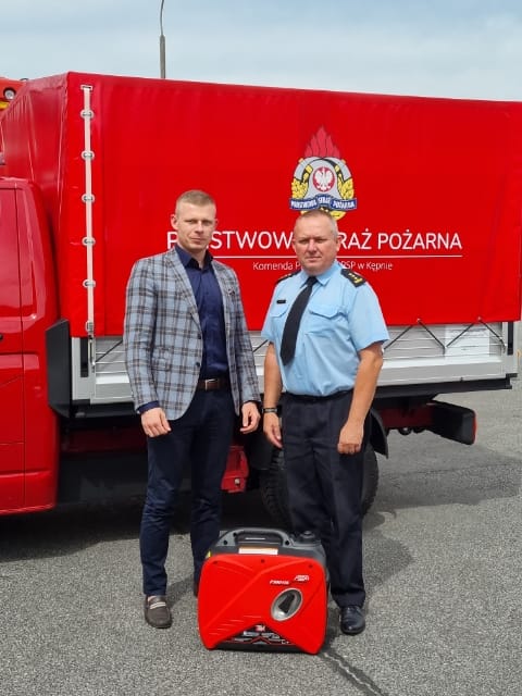 W czasie uroczystości Pan Krzysztof Godek, Zastępca Burmistrza Miasta i Gminy Kępno, podsumował tegoroczne przedsięwzięcia realizowane we współpracy z KP PSP Kępno, m.in. instalacja fotowoltaiczna na potrzeby funkcjonowania Komendy, oraz przekazał do użytkowania w JRG Kępno nowy inwertorowy agregat prądotwórczy FOGO.