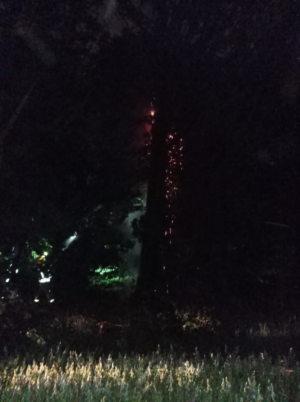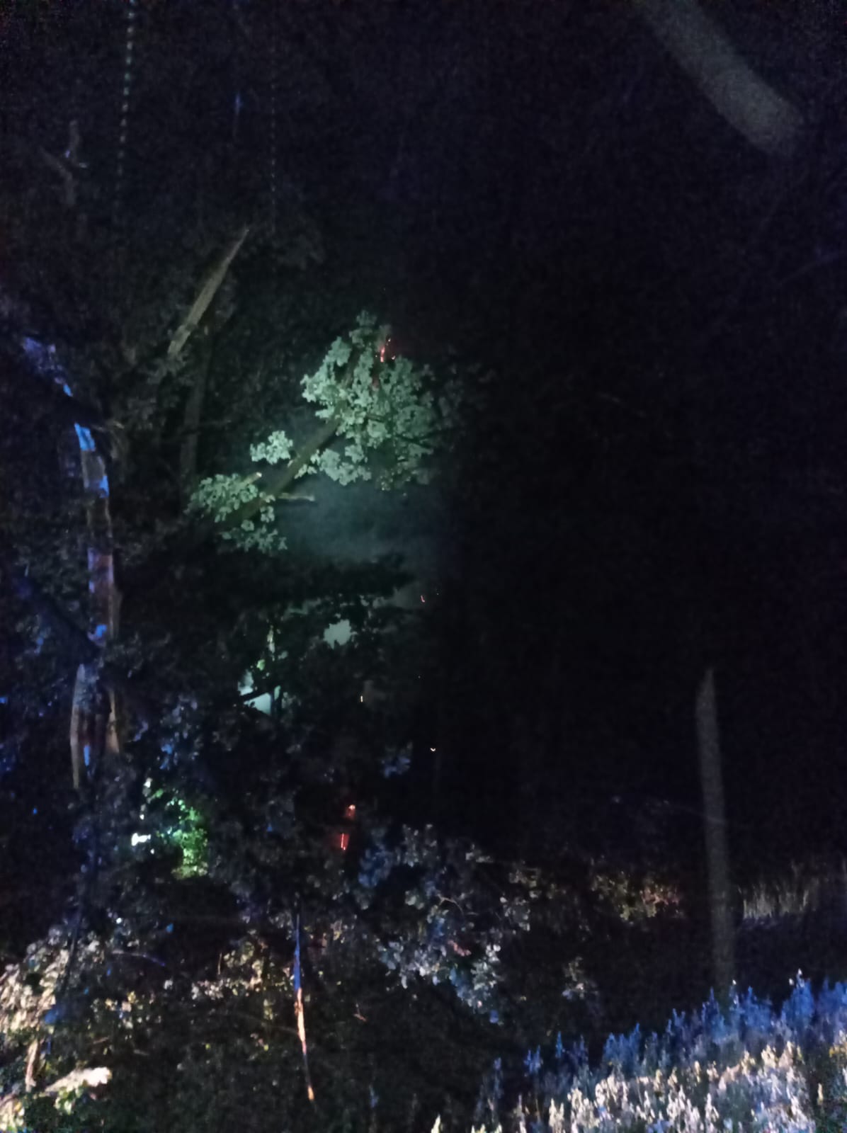 Po dotarciu na miejsce zdarzenia pierwszych zastępów stwierdzono, że ma miejsce pożar jednego drzewa najprawdopodobniej spowodowany wyładowaniem atmosferycznym.